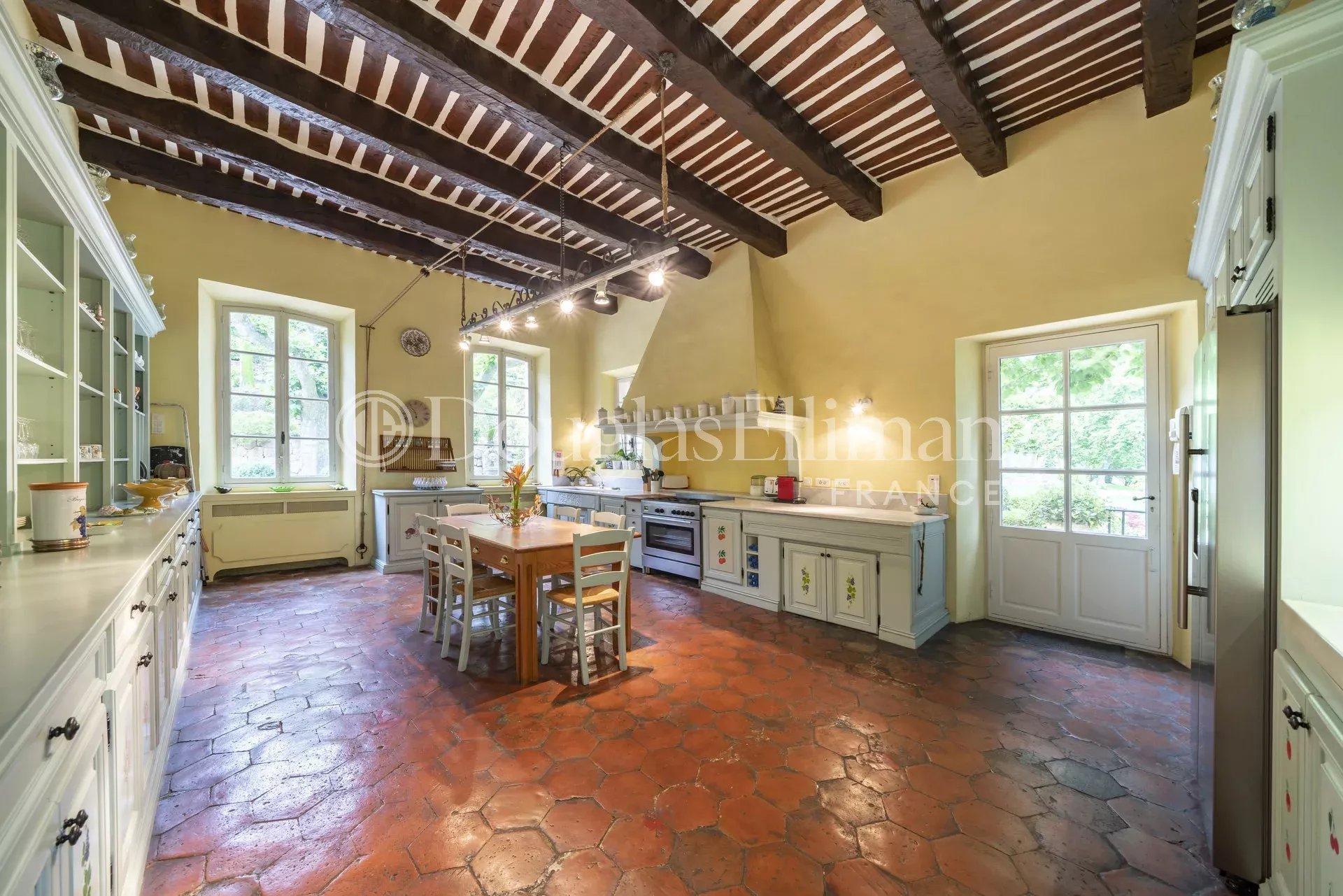 Proudly nestled within a magnificent mature parkland within some 15 miles of Cannes, this secluded grand Manor house which dates back to the 17th century has been the subject of significant on-going improvement by the present owner and offers exceptional accommodation and absolute privacy. Without a doubt one of the finest estates in the area this "secret" Domaine exudes an atmosphere of calm rarely found in the wider Cote d’Azur. The main house comprises of an entrance hall, drawing room, dining room, library/study, kitchen, 5 bedrooms all with en suite dressing room and bath or shower rooms. There are also utility rooms, extensive cellars, an oil fired central heating system, separate staff cottage and guest cottage. The beautiful extensive grounds feature a 15m swimming pool, fine mature trees, natural springs and an irrigation system. Adding to the charm of the property, a trout stream runs through the meadows.