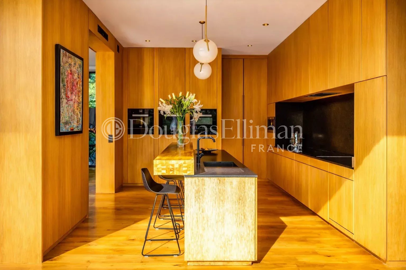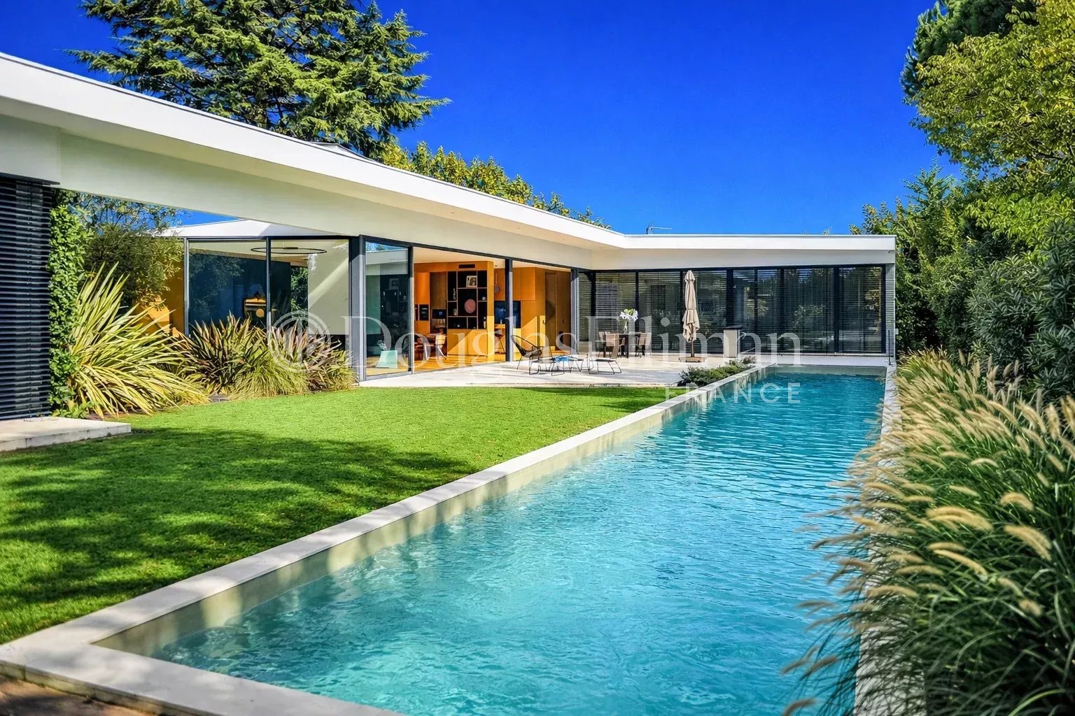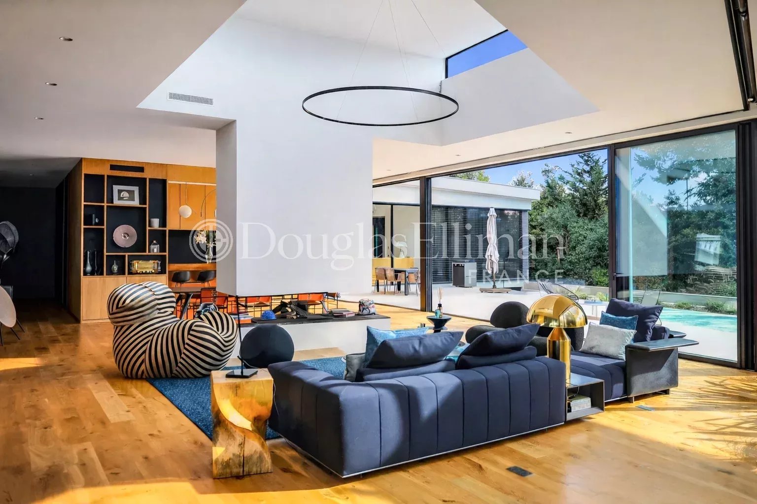 This luxury villa is very bright, and its Californian-style design means that the rooms are as open to the outside as possible. It breaks with traditional housing codes to revisit new perspectives and investments in space. The central part of the house faces outwards, allowing you to enjoy a totally open-plan living space on sunny days, with a direct view of the south-facing terrace and the majestic 23-meter swimming pool. The 137m2 living room and open-plan kitchen are cleverly separated from the main living area, allowing for easy circulation.