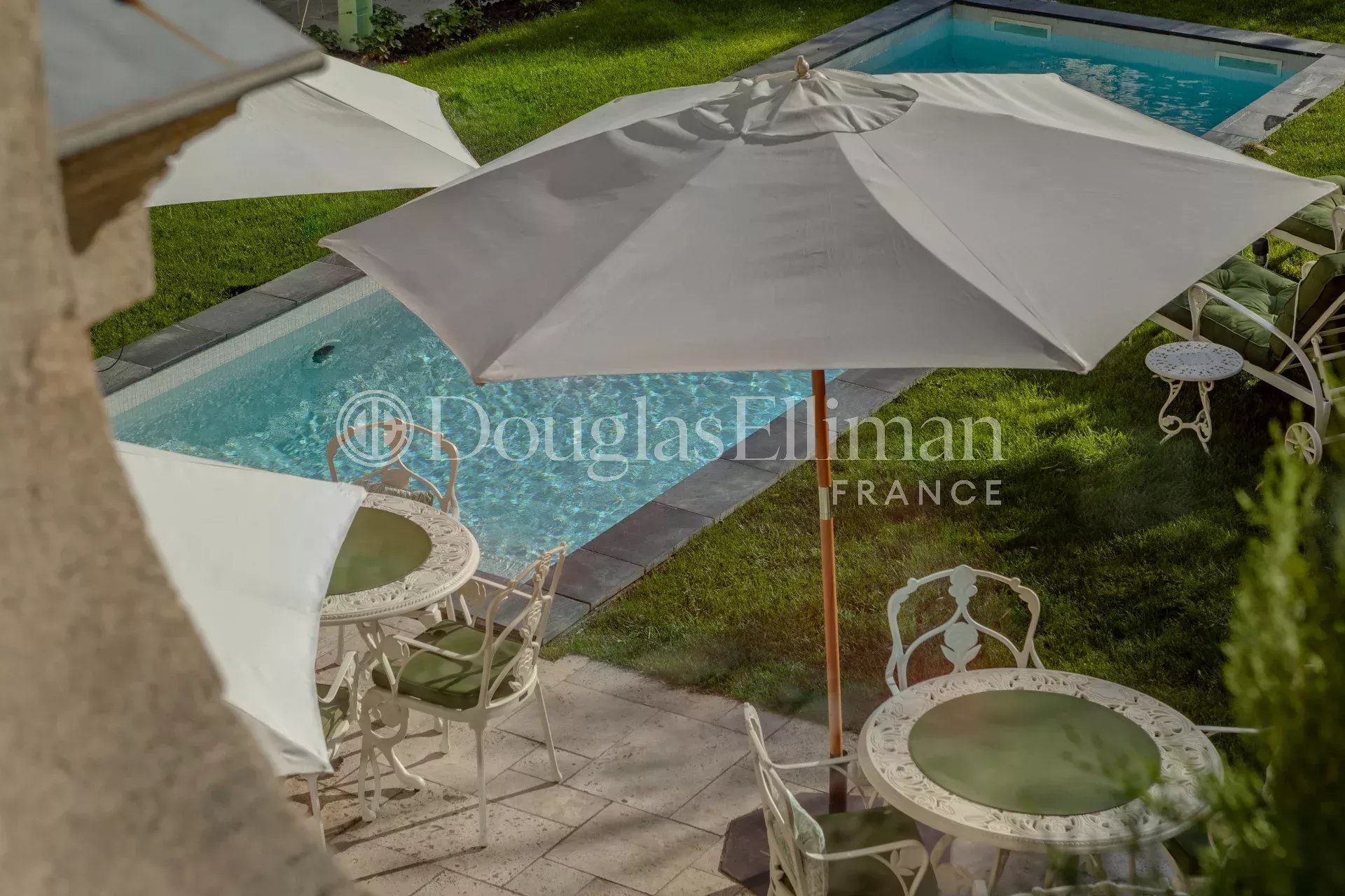 The landscaped garden is a true haven of peace, designed for relaxation: a sunny terrace, a heated pool, and a spa create an atmosphere of pure serenity. A discreet parking area, equipped with electric vehicle charging stations, seamlessly complements the outdoor arrangements.