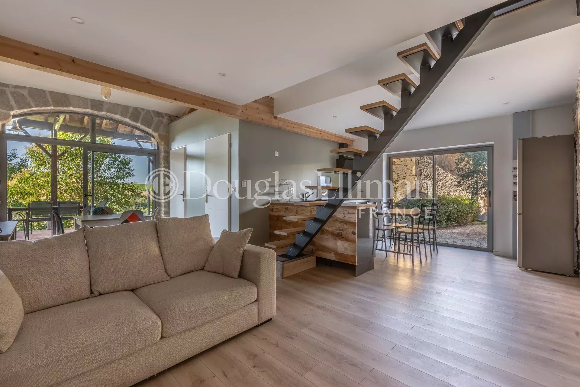 The respectful transformation of this building has given rise to a main residence with generous volumes. The first floor features a vast entrance lounge, billiard room, kitchen and dining room.