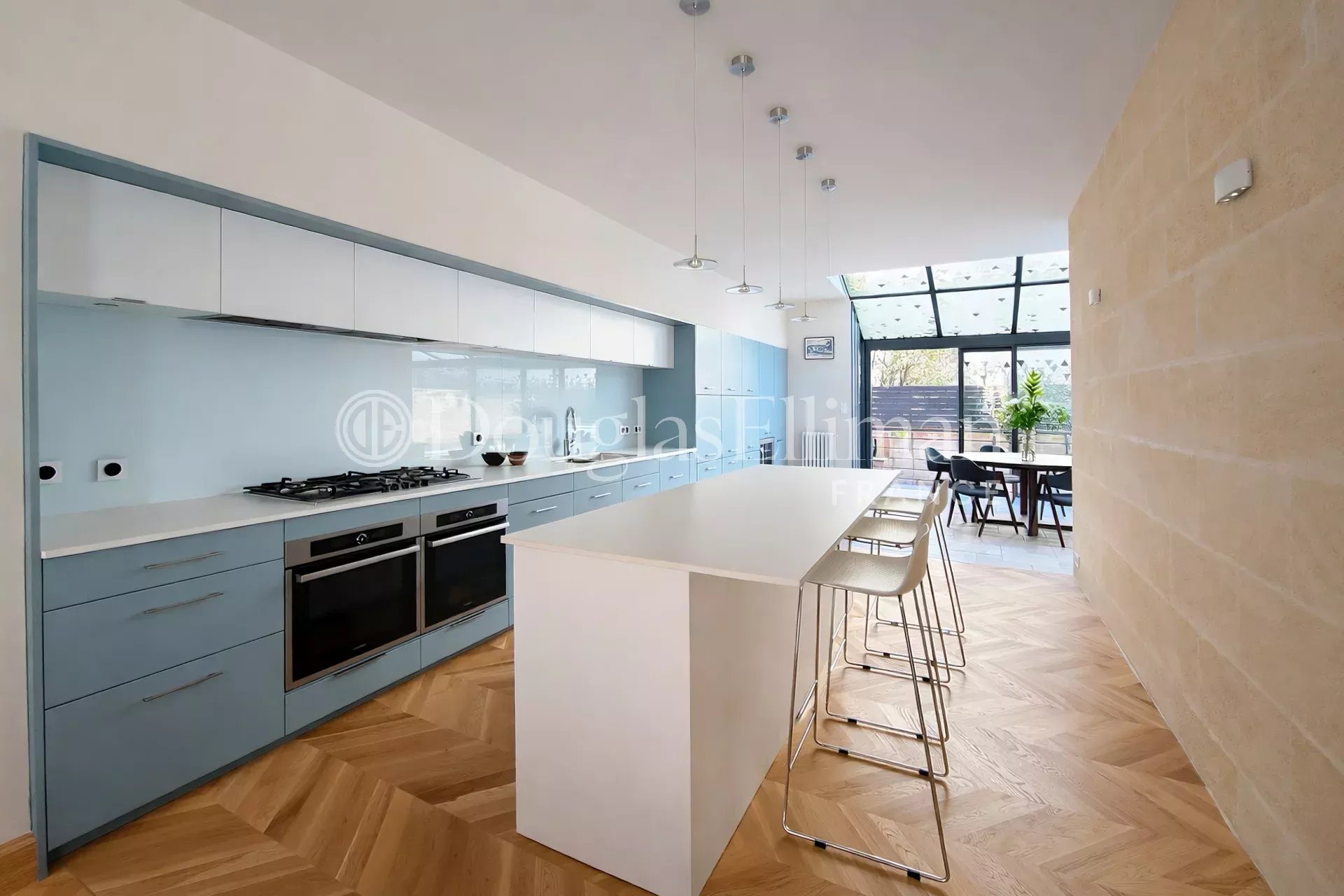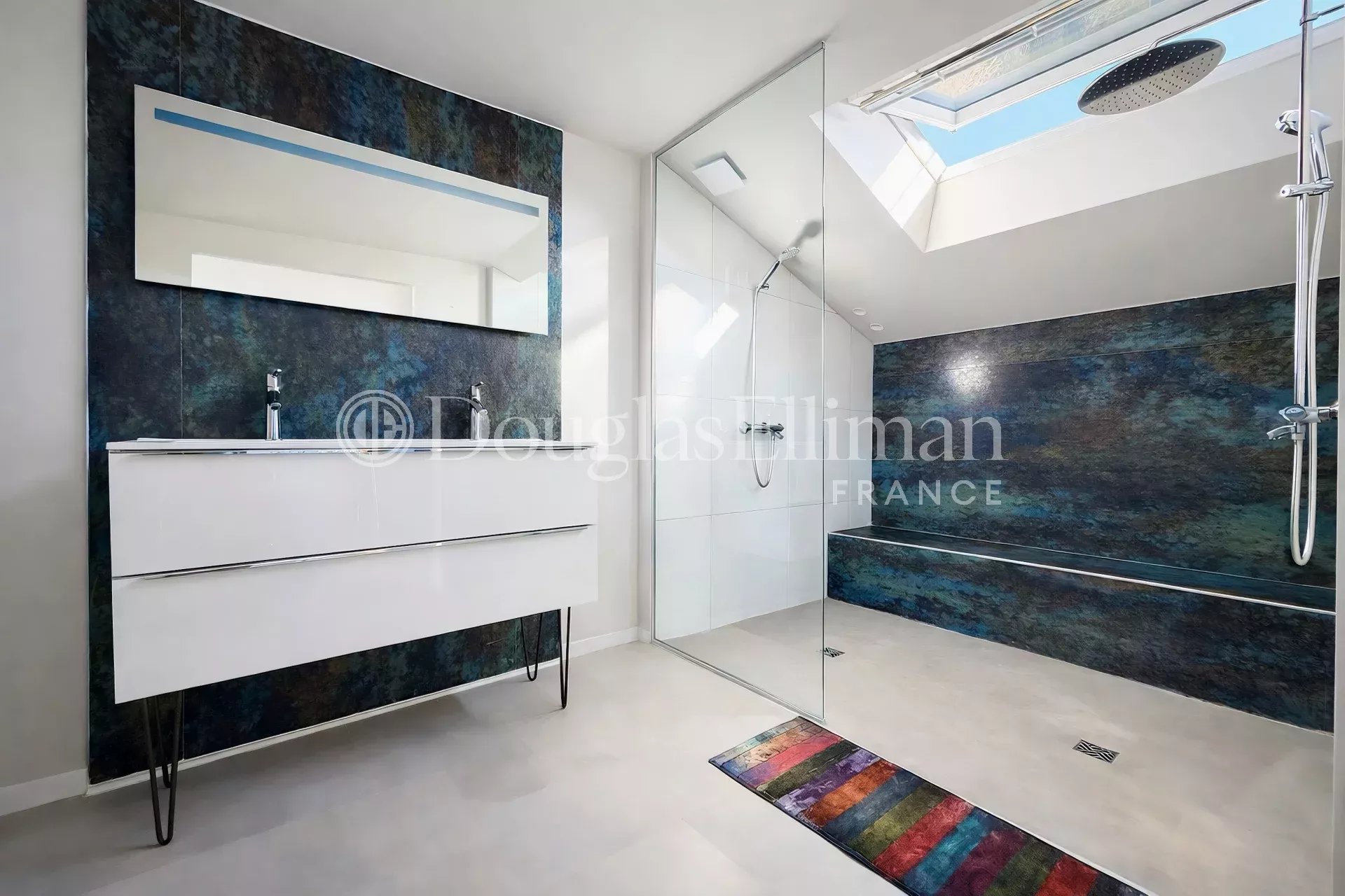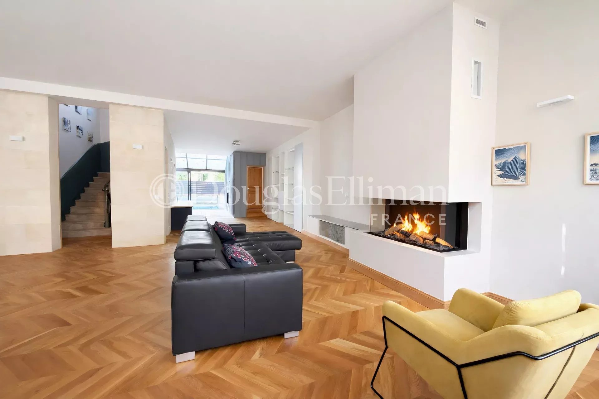 Offering around 330 m² of living space, the property features vast reception rooms, five spacious bedrooms, each with its own bathroom, including a master suite with dressing room, double shower and private terrace. A landscaped garden with swimming pool creates a haven of peace in the heart of the city.