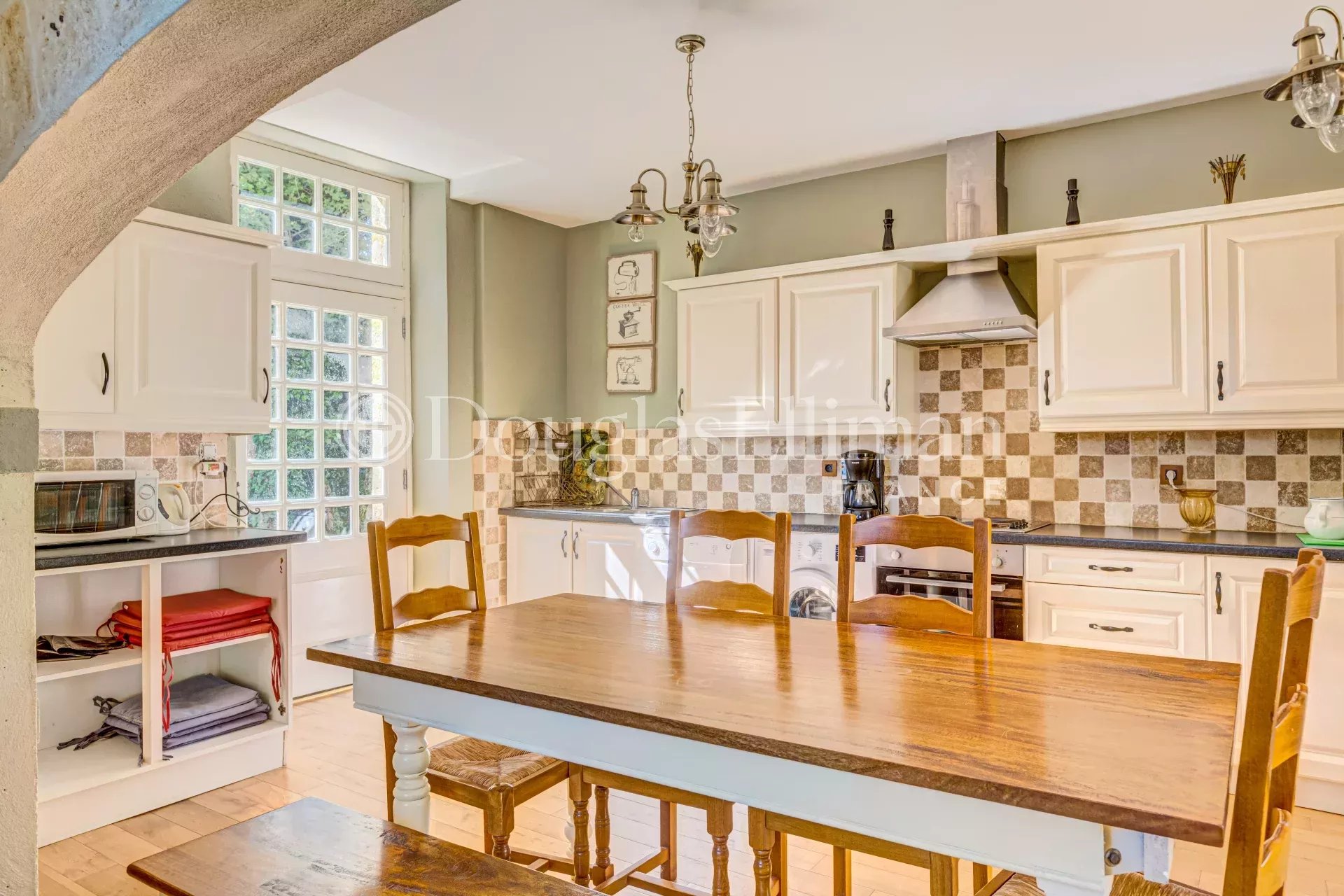 The château, a majestic stone building dating back to the 12th century, stands as a testament to a rich history. With nearly 1,000 m² of living space, it is surrounded by charming outbuildings, including an 18th-century orangery, welcoming cottages, and historic wine cellars. Fully renovated with meticulous care, the property has preserved its authenticity and historic character.