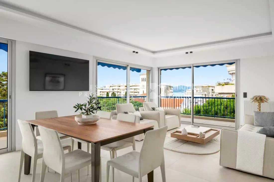 Cannes Basse Californie, close to all amenities, the city center of Cannes and the Croisette, in a high-end residence, very beautiful 4-room apartment of 91 m2 on a high floor with a spacious terrace of more than 30 m2 offering a beautiful view of the sea.