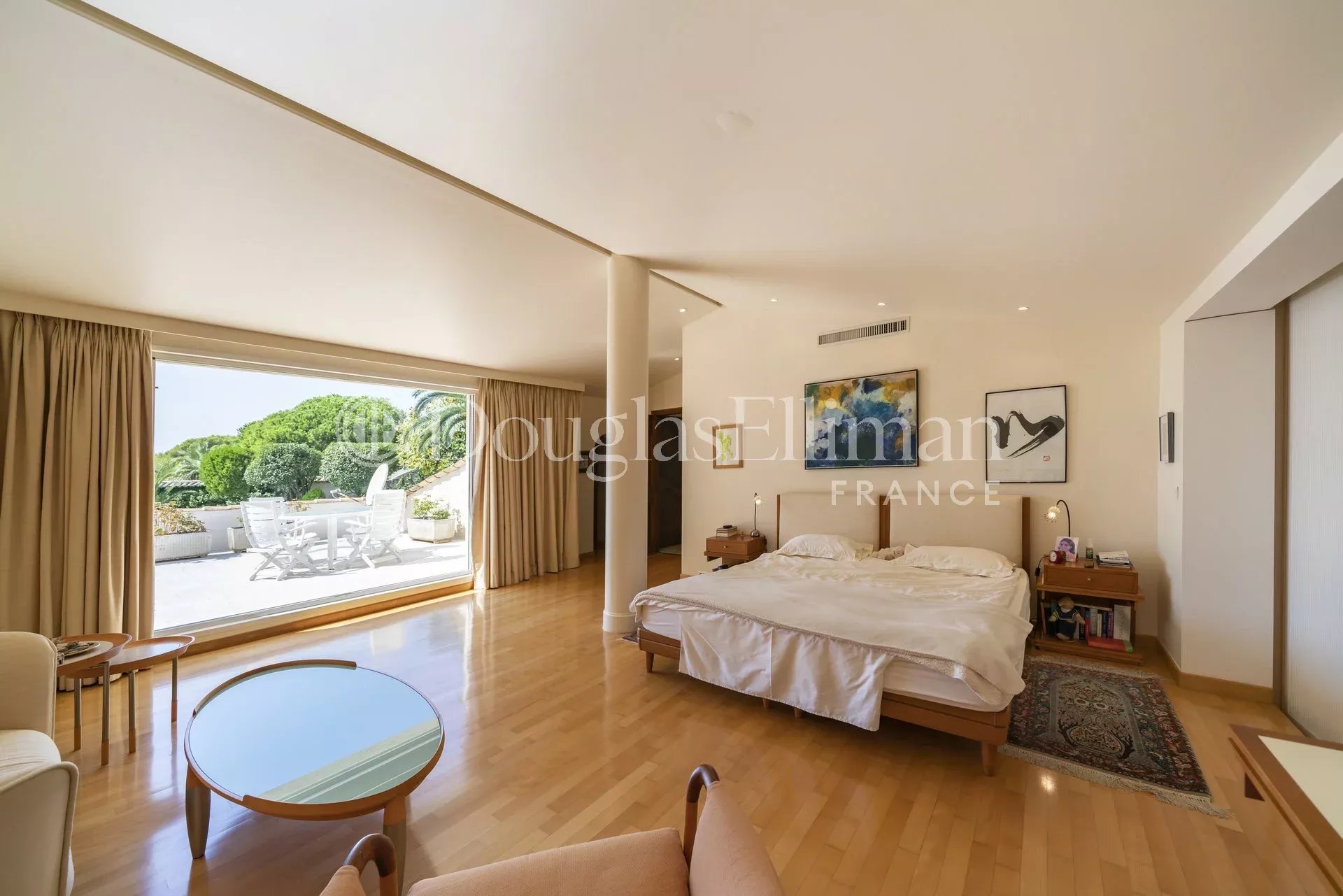 Upstairs, a sumptuous master suite of 58 m2 with private bathroom, dressing room and access to a large private terrace, offer panoramic views of the Mediterranean Sea.