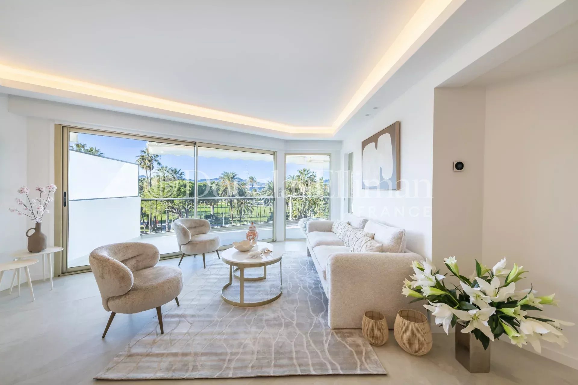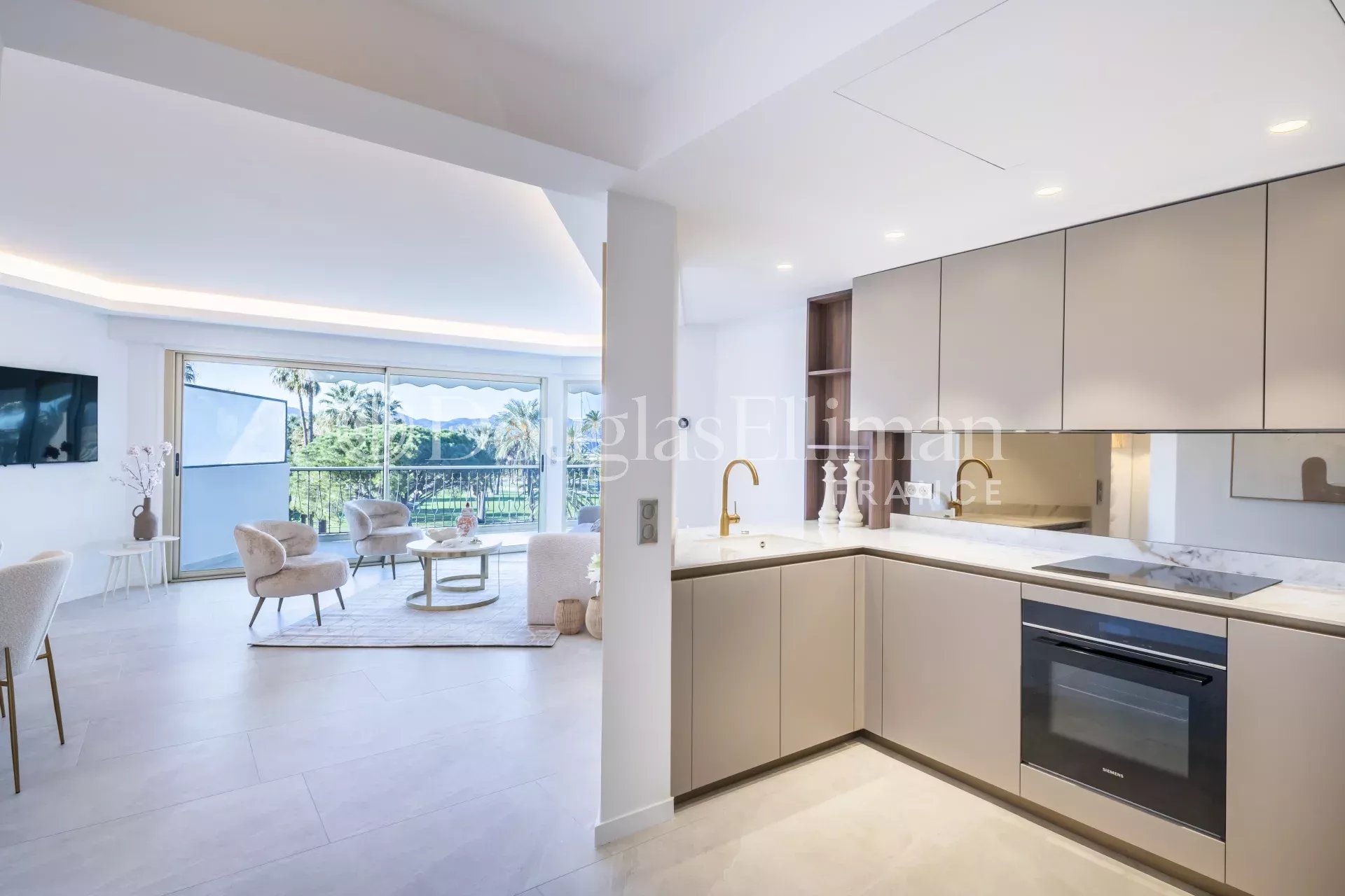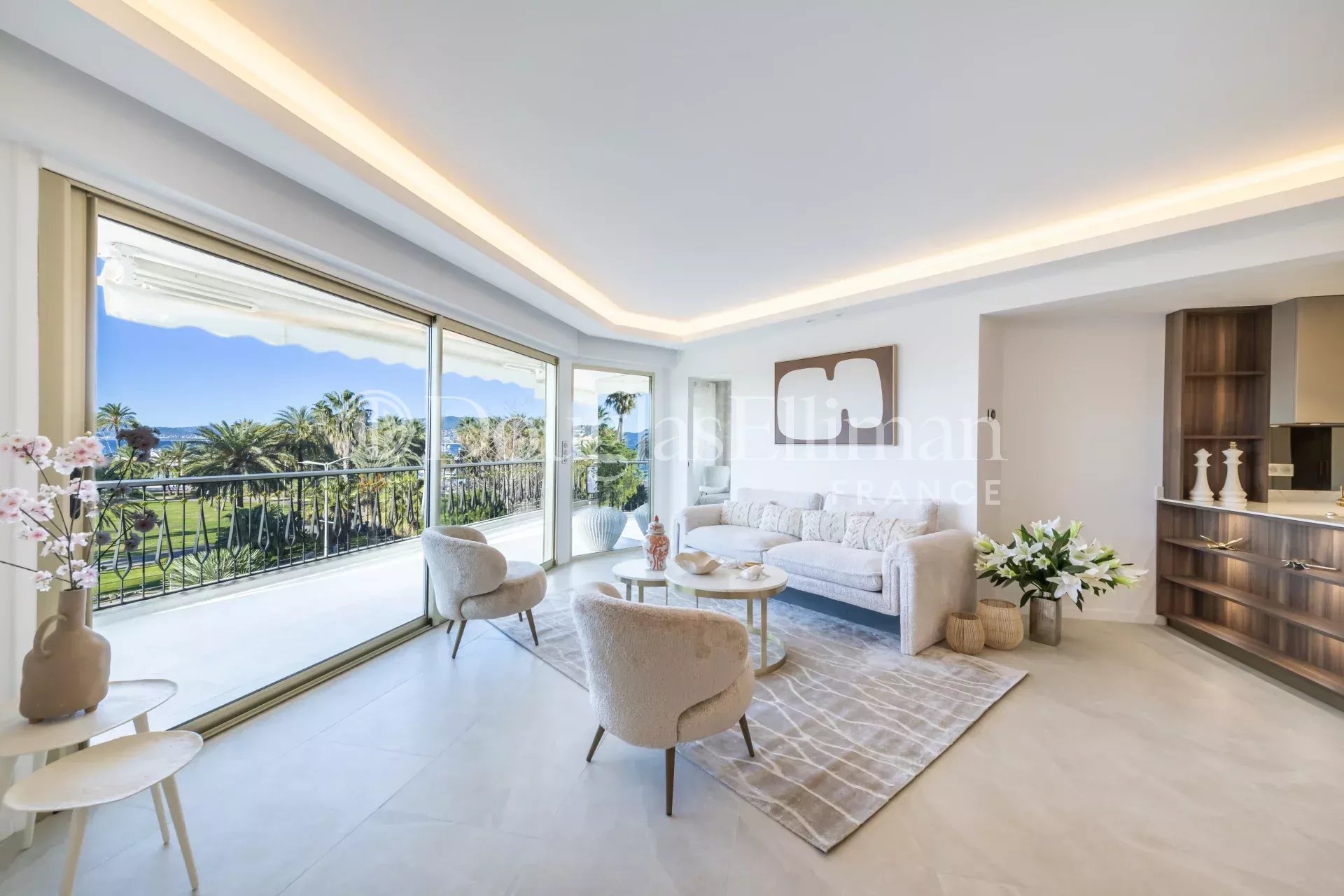 Located on the famous boulevard de la Croisette and close to Port Canto, in a quiet, luxury residence with security guard, magnificent 3-room 75 m2 apartment with unobstructed view of the sea and Esterel hills.