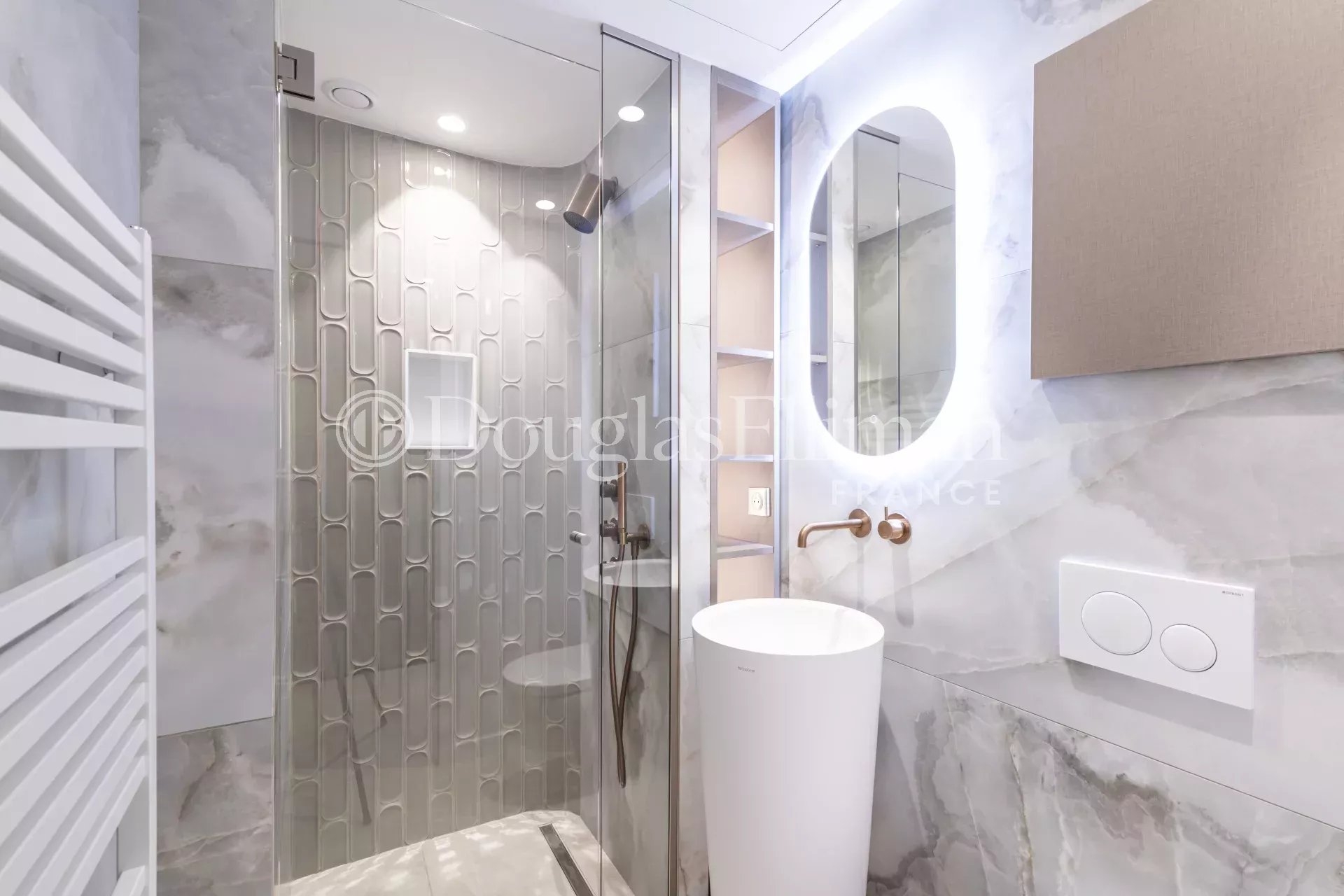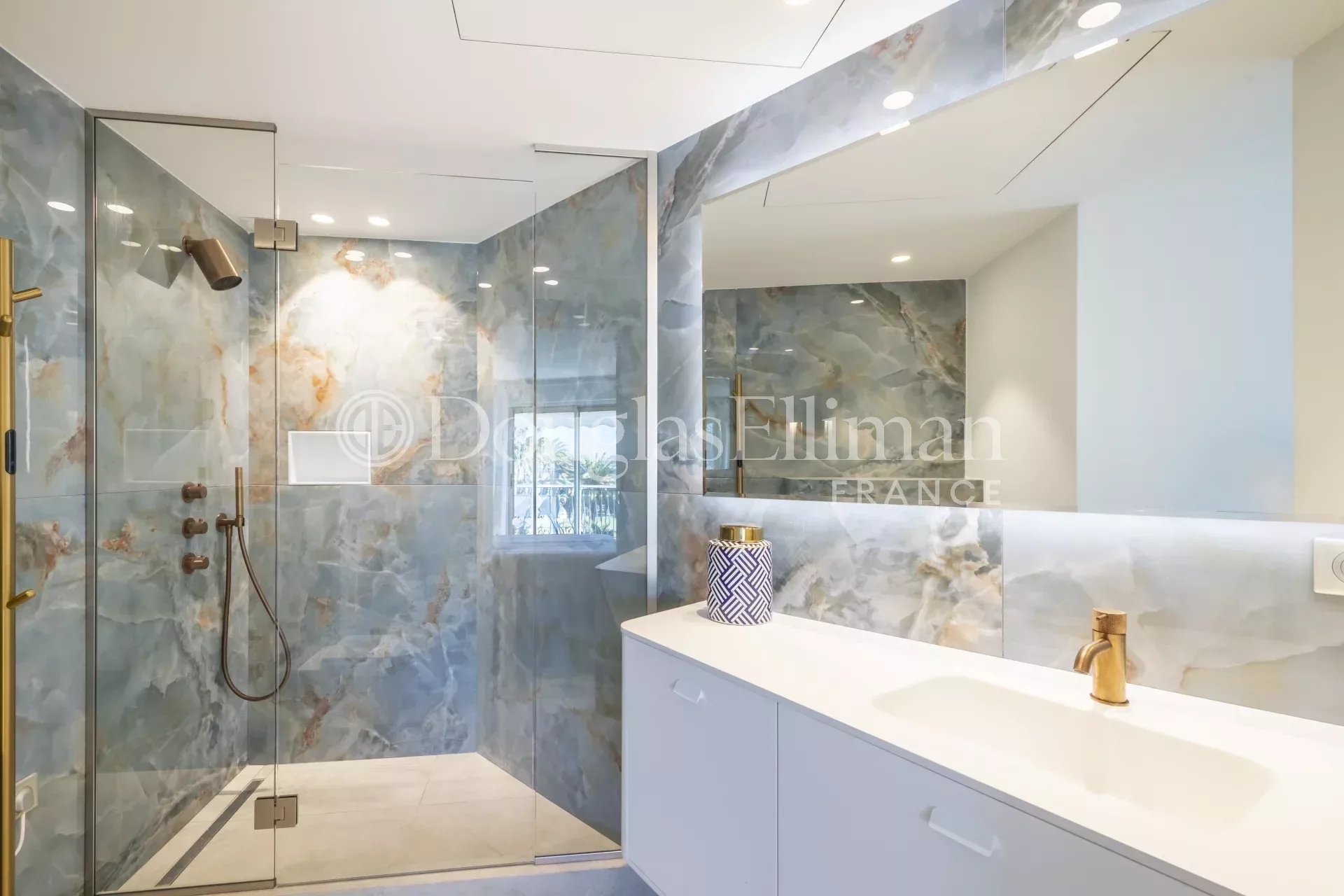 It comprises an entrance hall, a large, bright living room opening onto an 18 m2 terrace facing the sea, a fitted kitchen, two en suite bedrooms with their own shower rooms and dressing rooms, one of which overlooks the sea.