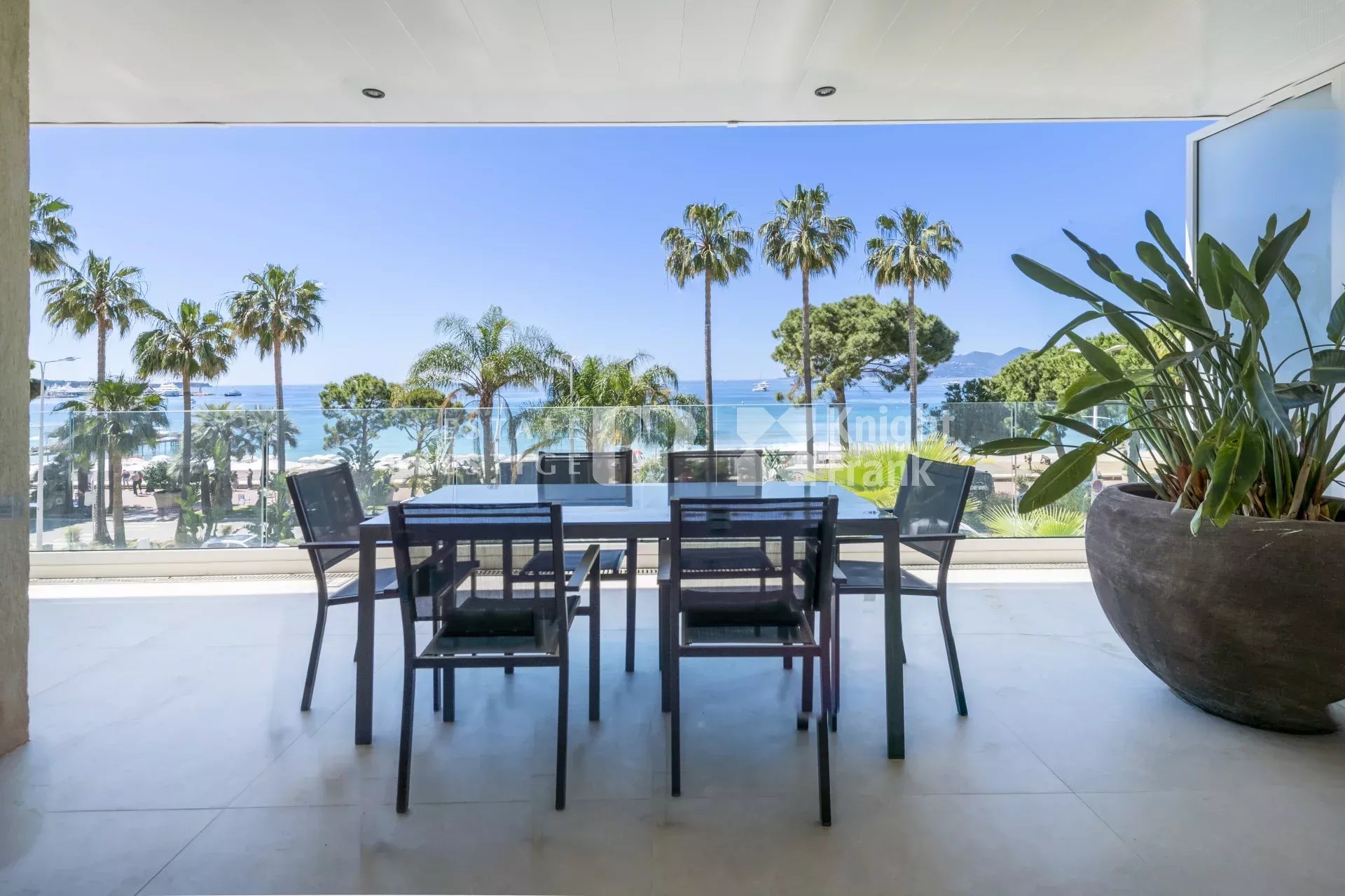 Ideally located on the Croisette, in a residence whose façade has been completely renovated and modernised, this vast 4-bedroom flat of 200 m2 is accompanied by a large terrace, offering a magnificent view of the sea and the beaches.
