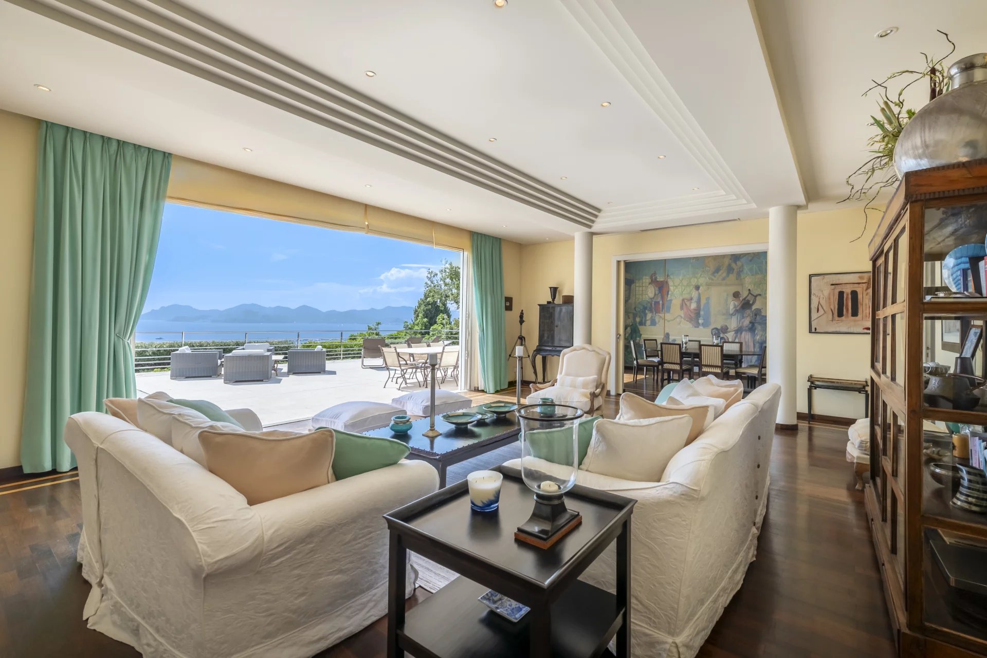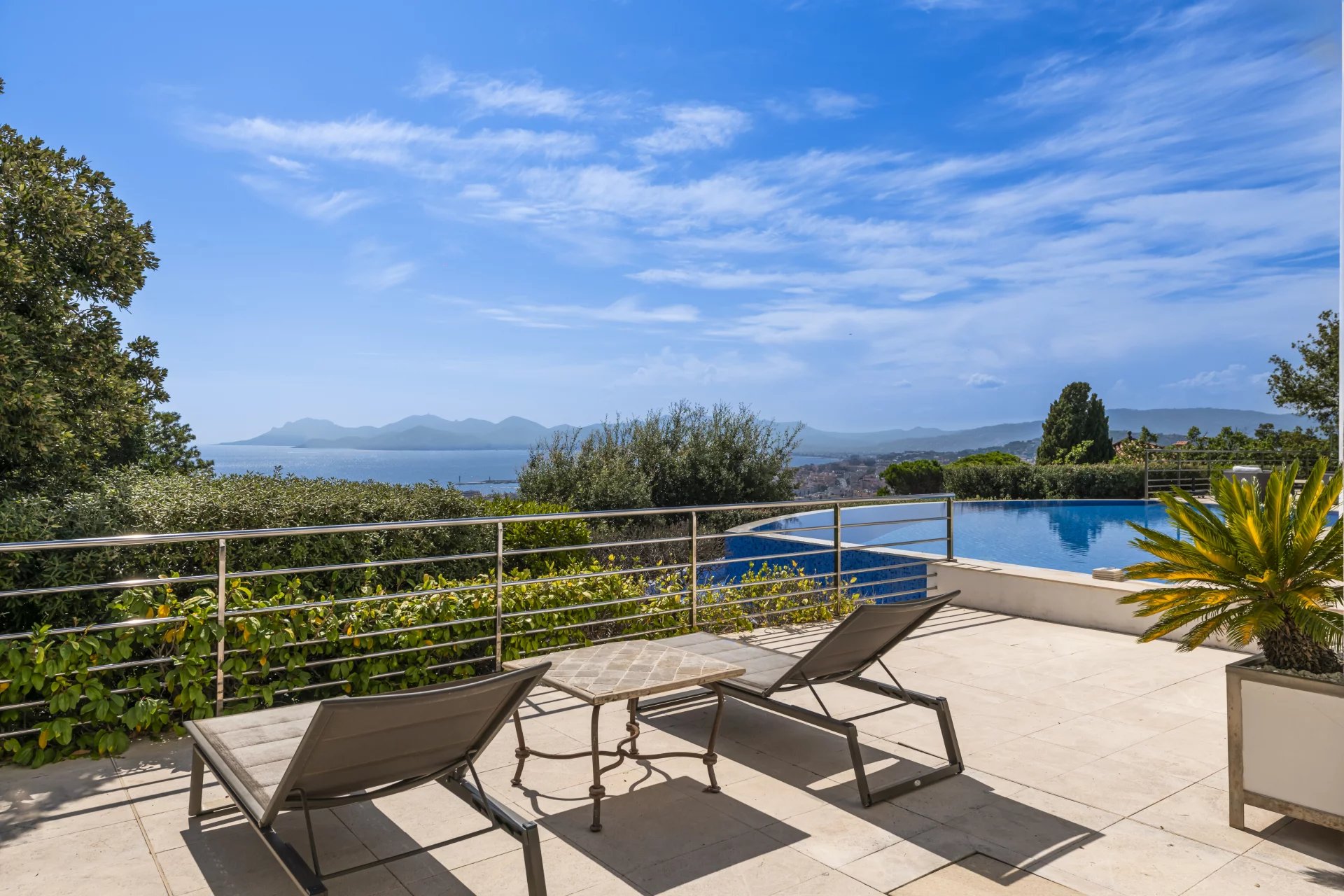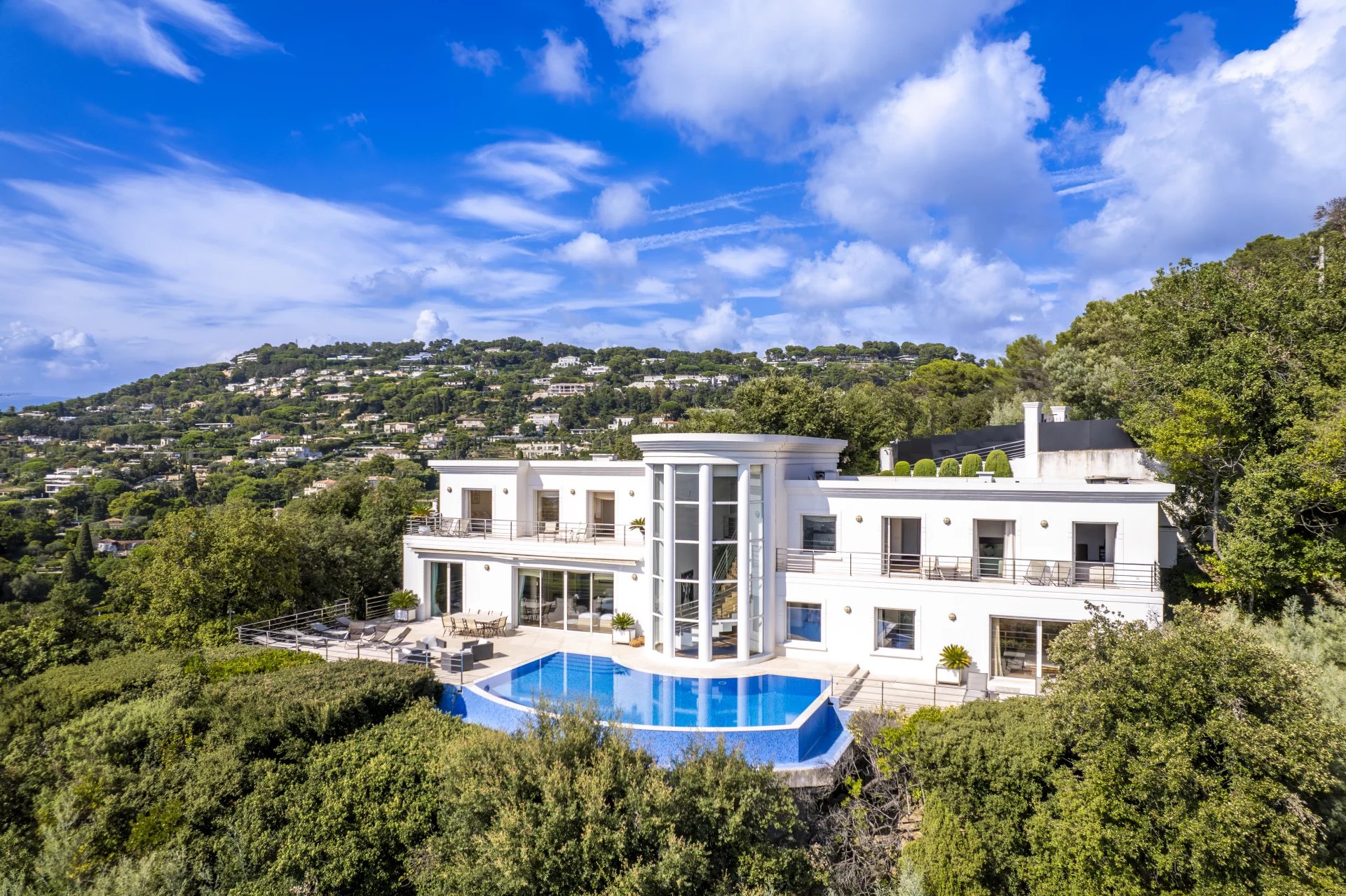 Nestled in a peaceful, leafy setting of more than 2,800 sqm with an infinity pool, this superb property of around 480 sqm boasts vast, elegant reception areas bathed in light that open onto wide terraces inviting you to relax.