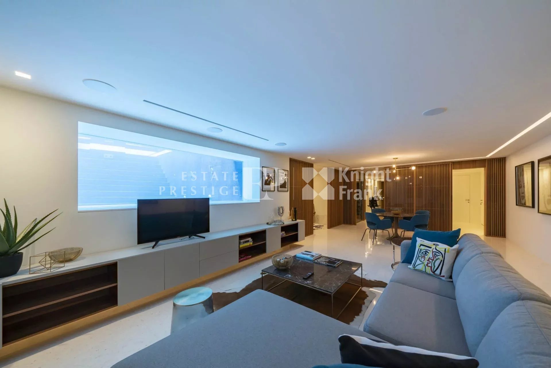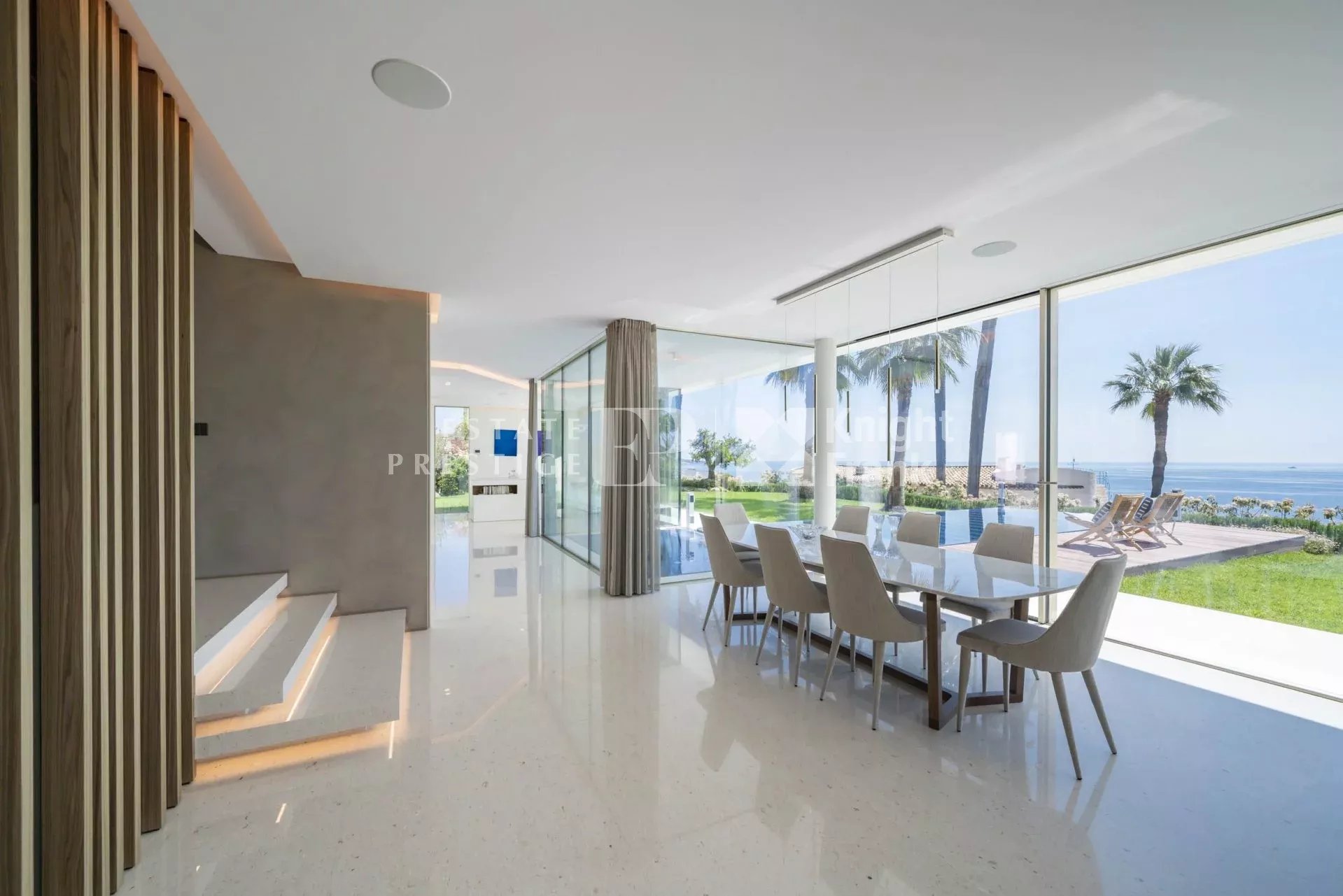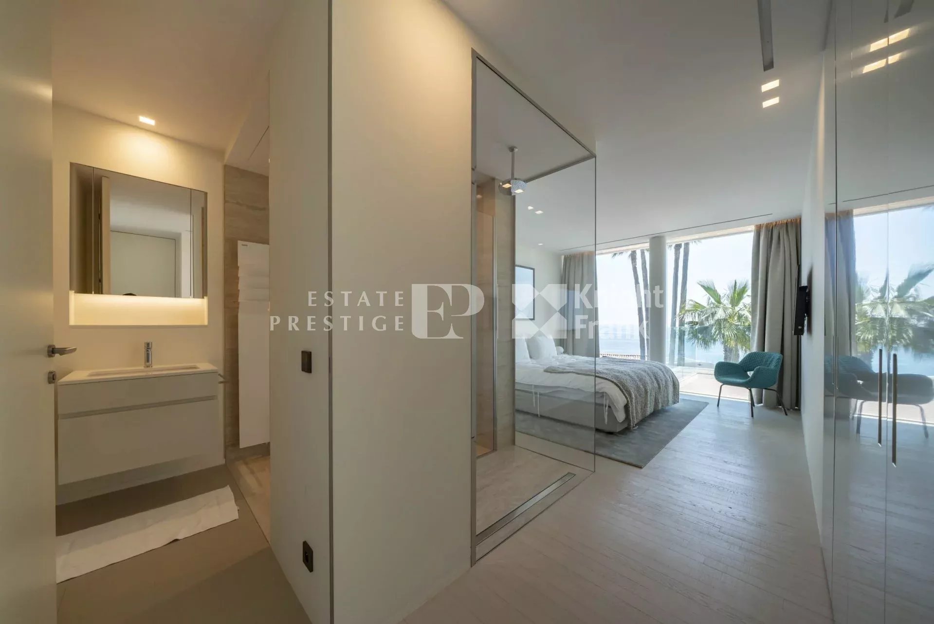 With a total surface area of almost 550sqm, it features a hall with an impressive SkyDome window offering a superb panoramic view of the pool, the garden and the sea beyond. A spacious living room, dining room and open-plan kitchen with adjoining traditional kitchen open onto the vast terraces surrounding the villa. There are also 5 ensuite bedrooms with views, including an elegant master bedroom with access to a large terrace on the upper level.