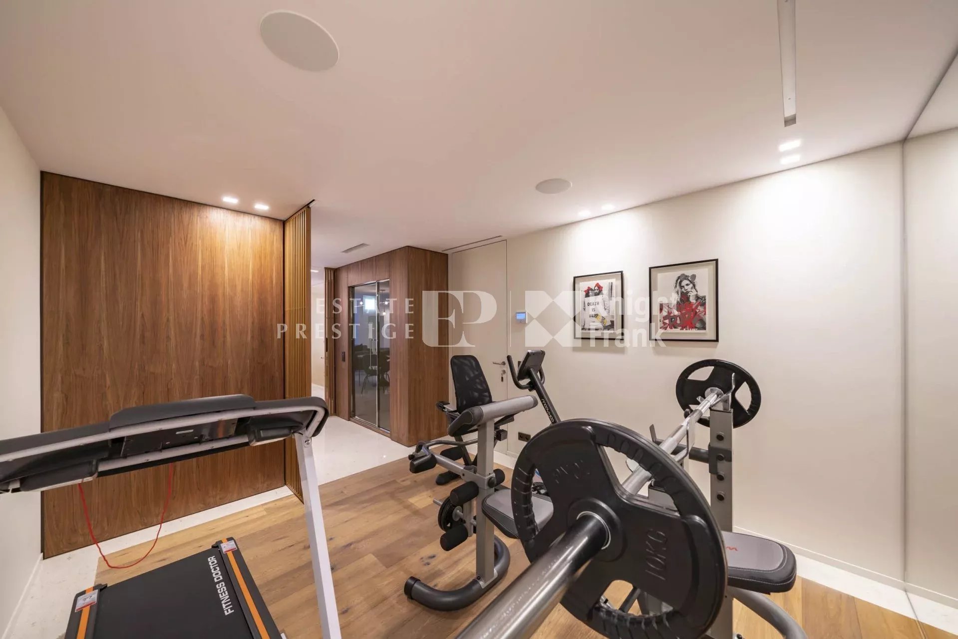 Benefiting from all the latest technologies, noble materials, a lift and a state-of-the-art security system, it also offers a vast media room with windows opening onto the pool, a gym with hammam, a massage room, a staff bedroom, a laundry room and a garage for 3 vehicles.
