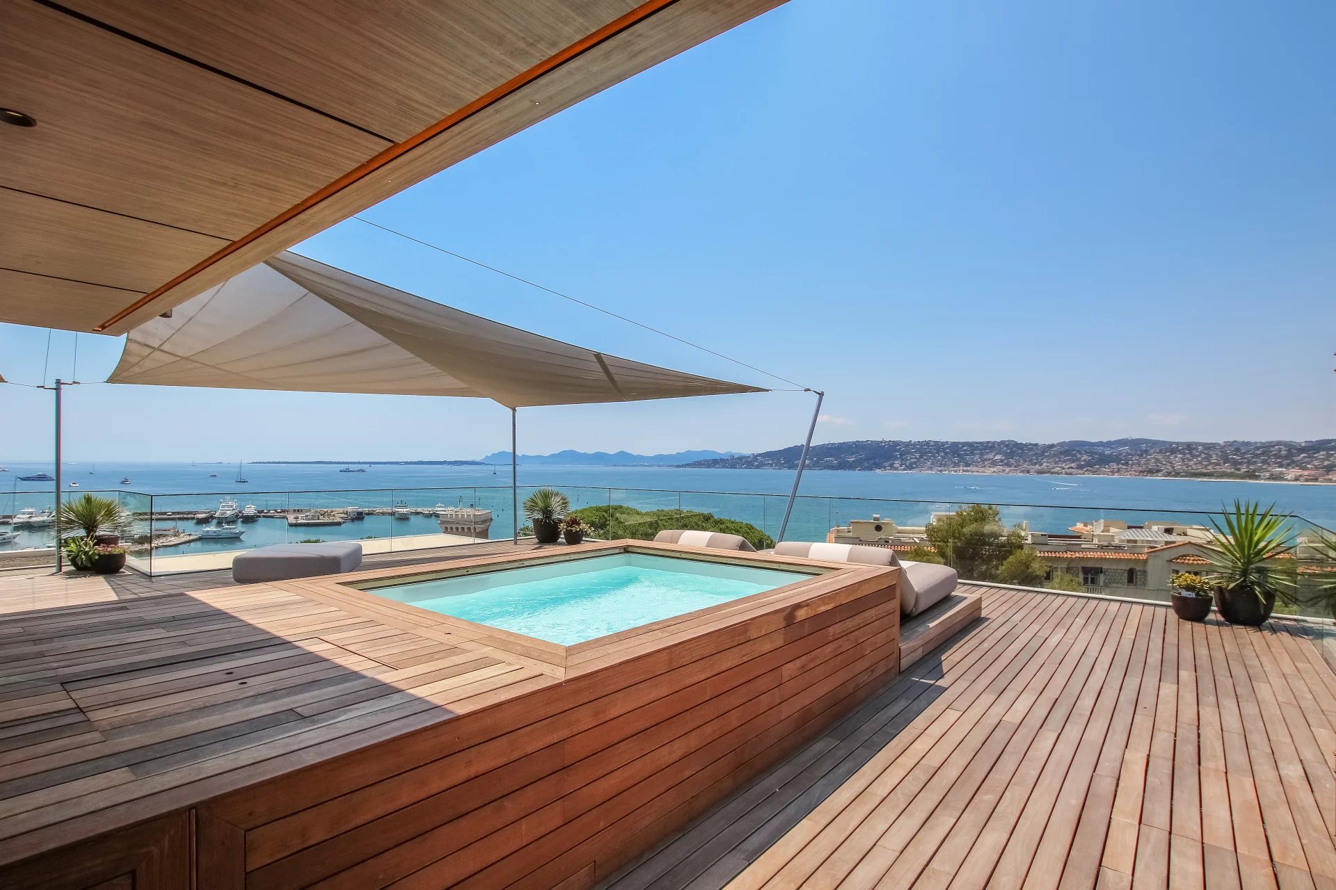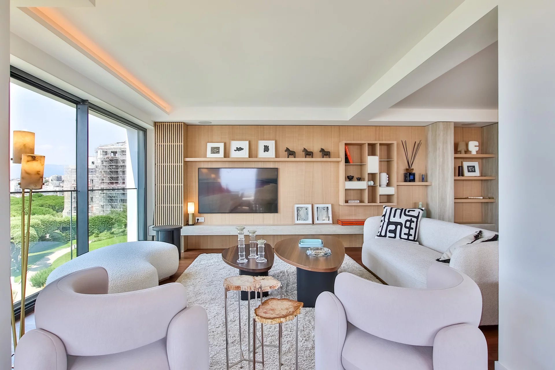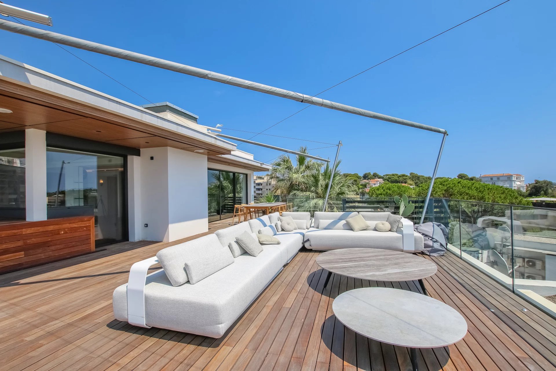 Inspired by a resolutely contemporary style, this exceptional residence harmoniously blends glass, metal and concrete to offer volumes bathed in light thanks to large bay windows. The penthouse offers 145 m² of living space, complemented by 170 m² of terraces, with unobstructed views of the sea and Cap d'Antibes.