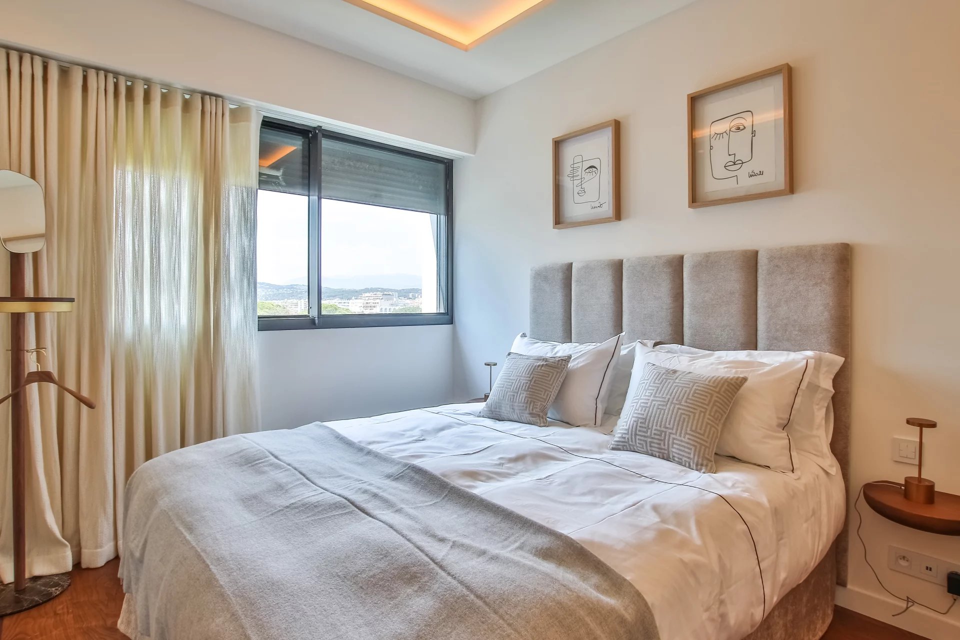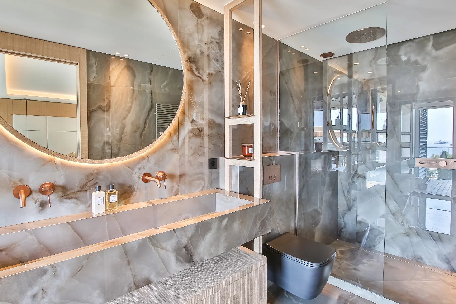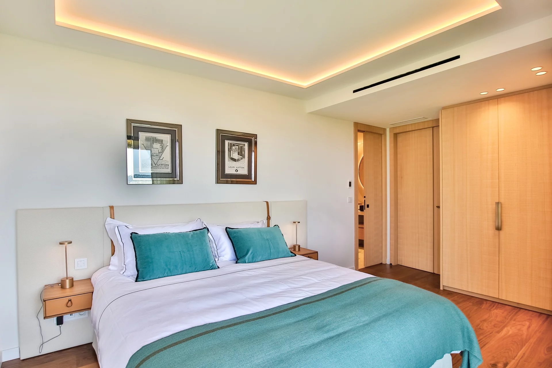 Inspired by a resolutely contemporary style, this exceptional residence harmoniously blends glass, metal and concrete to offer volumes bathed in light thanks to large bay windows. The penthouse offers 145 m² of living space, complemented by 170 m² of terraces, with unobstructed views of the sea and Cap d'Antibes.