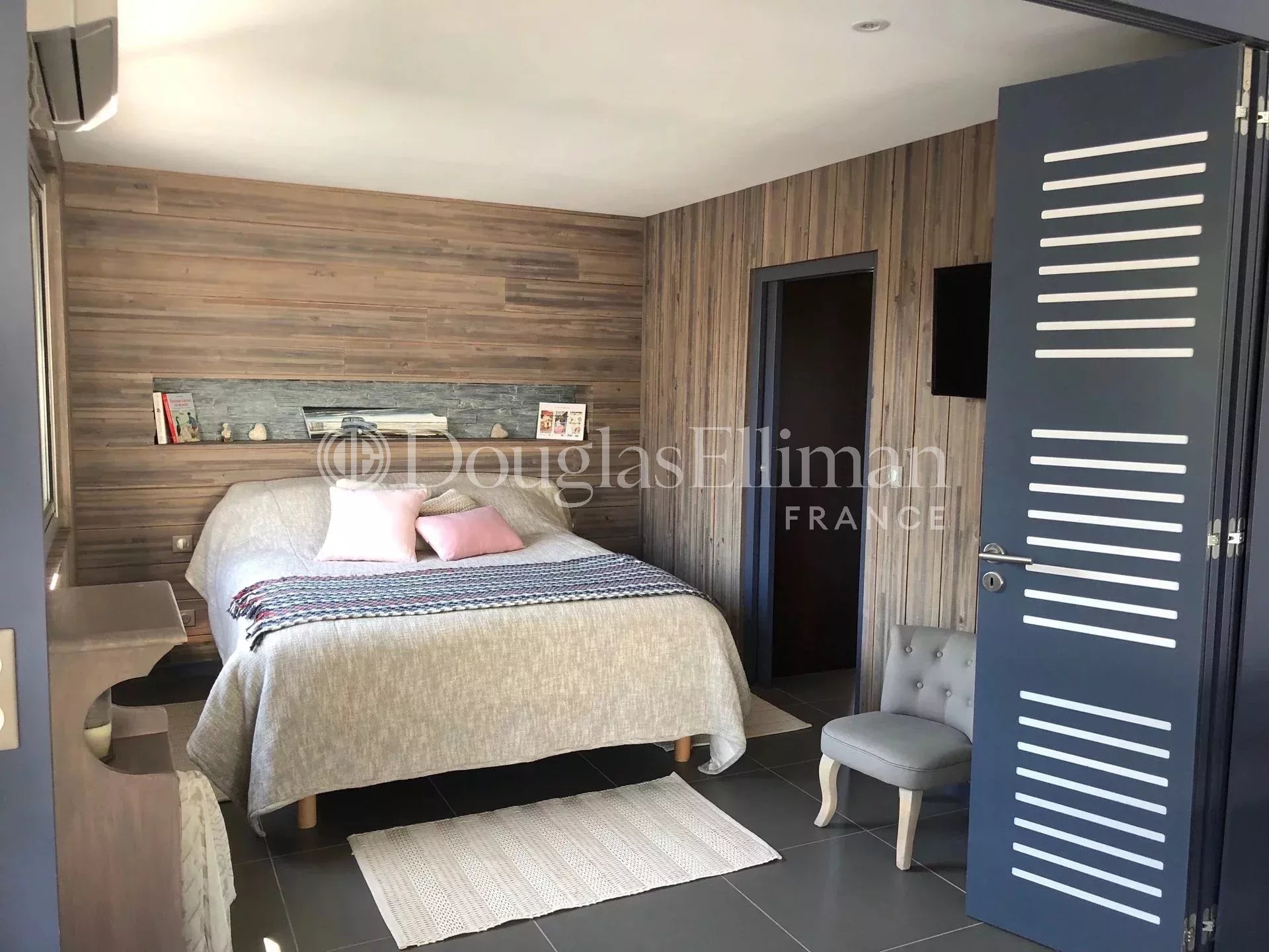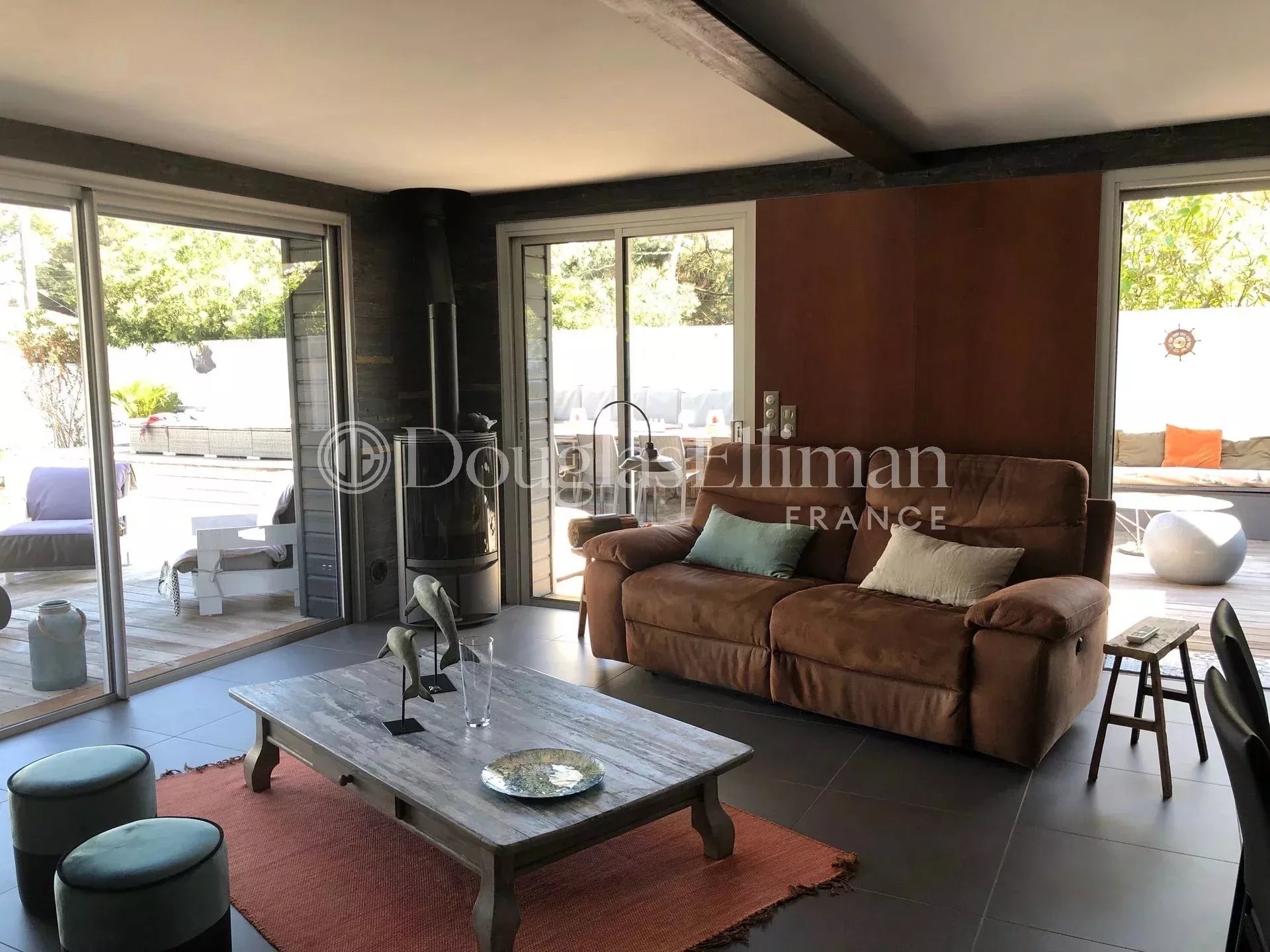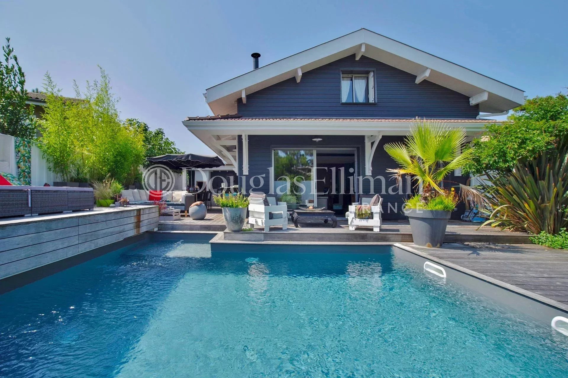 Nestled in the serene surroundings of Lège-Cap-Ferret, this exquisite 180 m² home offers a perfect blend of modern amenities and natural beauty. Boasting 6 spacious bedrooms and 8 well-designed rooms, the house is equipped with air-conditioning and double glazing, ensuring year-round comfort. The aluminum sliding windows add a sleek touch, brightening up every corner with natural light.