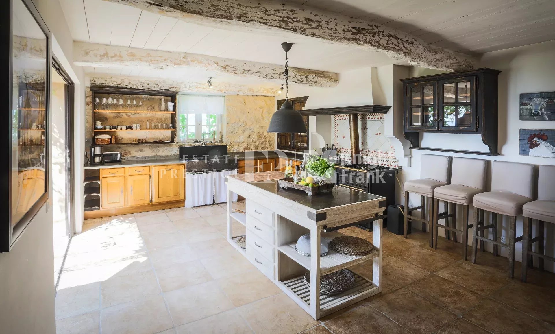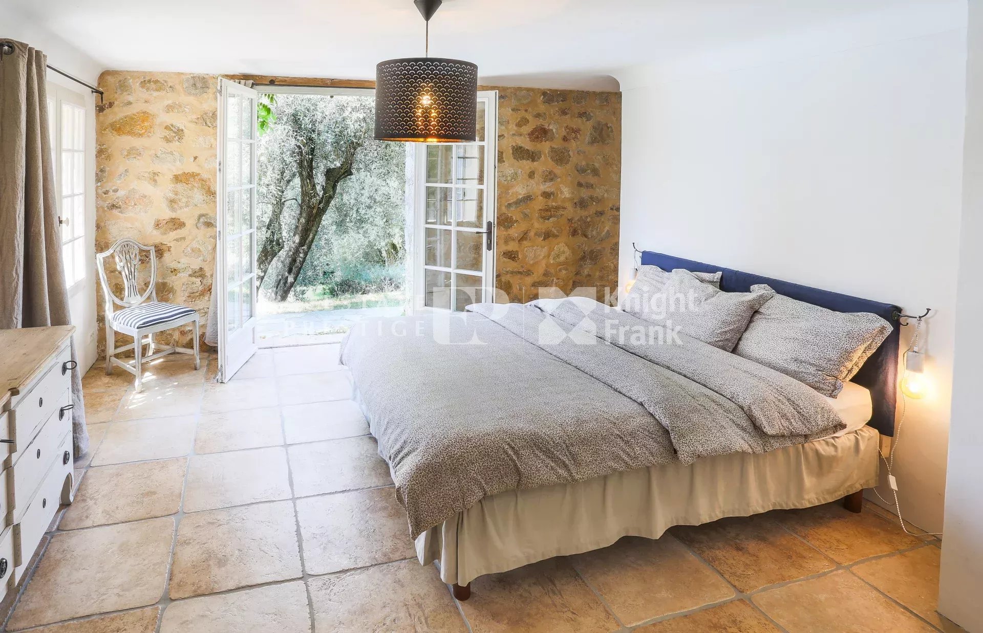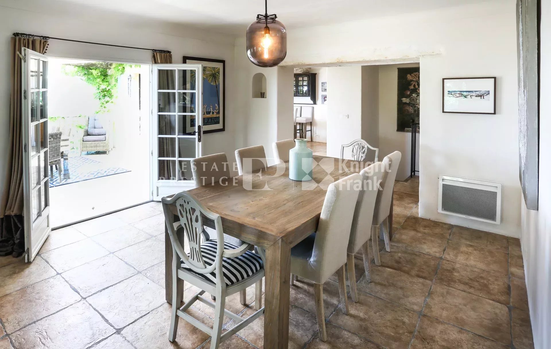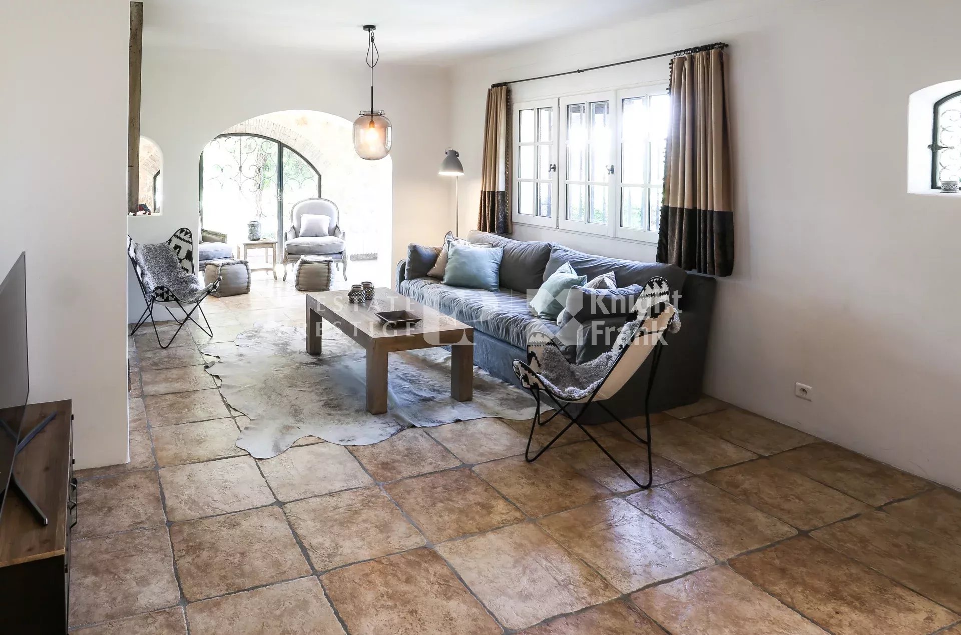 The villa has been thoroughly and carefully renovated throughout and is located in a very quiet area. The spacious and well-equipped kitchen and living-room leads out to a large covered terrace - which is more like a second living-room - and benefits from a beautiful view. The entrance, a private office and a second bedroom are also on this main-floor. The large master bedroom suite with open bathroom is very private and is on the top floor.