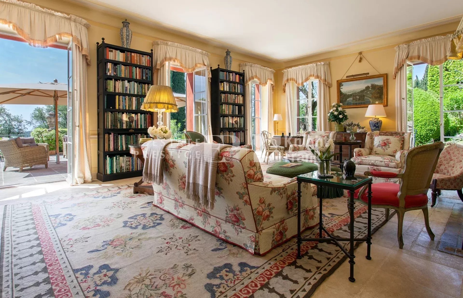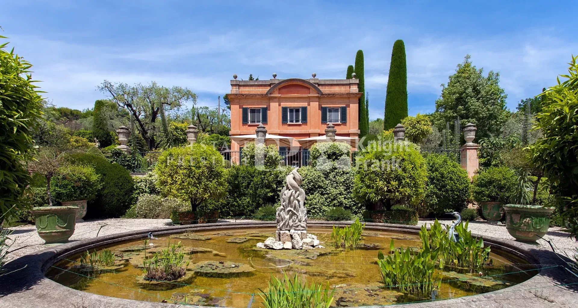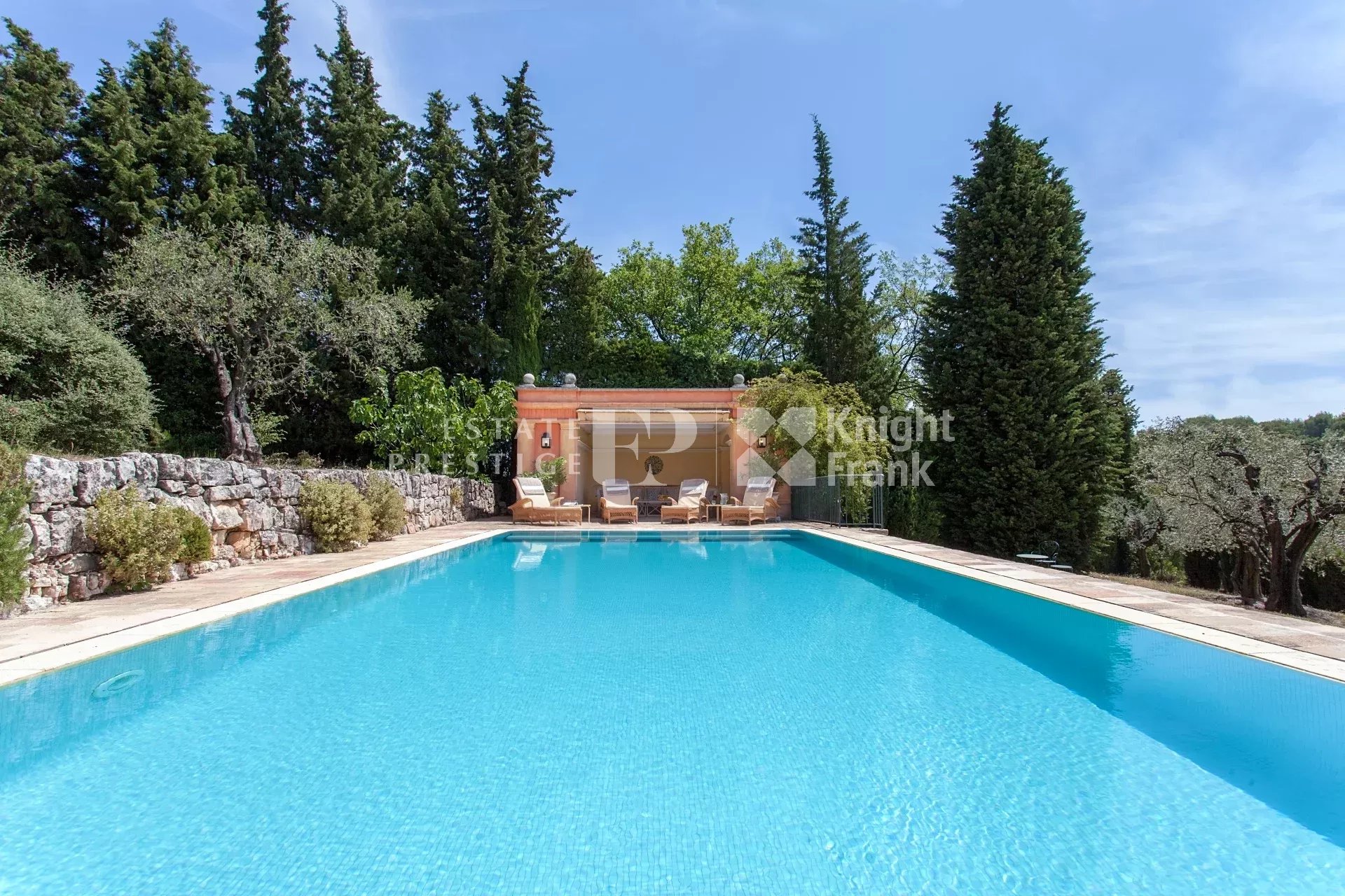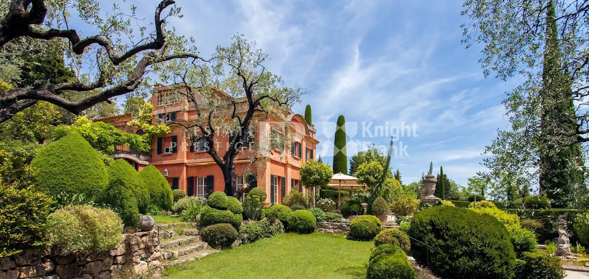 It is truly a secluded World unto itself. This outstanding property with gardens known throughout the World is located on the heights of a South-facing slope in Opio (South of France), respectively 5 kms. and 11 kms. from the bustling and charming villages of Valbonne (Restaurants, Friday market) and Mougins (Restaurants, Art galleries), and respectively 18 kms. and 35 kms. from Cannes and the Nice International airport.