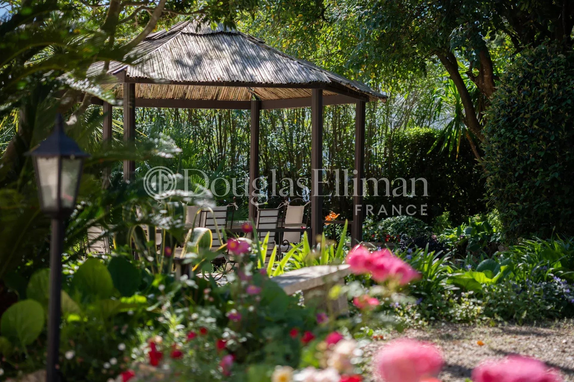 Nestled on a beautifully landscaped plot of 1,900 m² with mature Mediterranean plantings, the property is surrounded by lush greenery — the perfect setting for relaxed Côte d’Azur living.