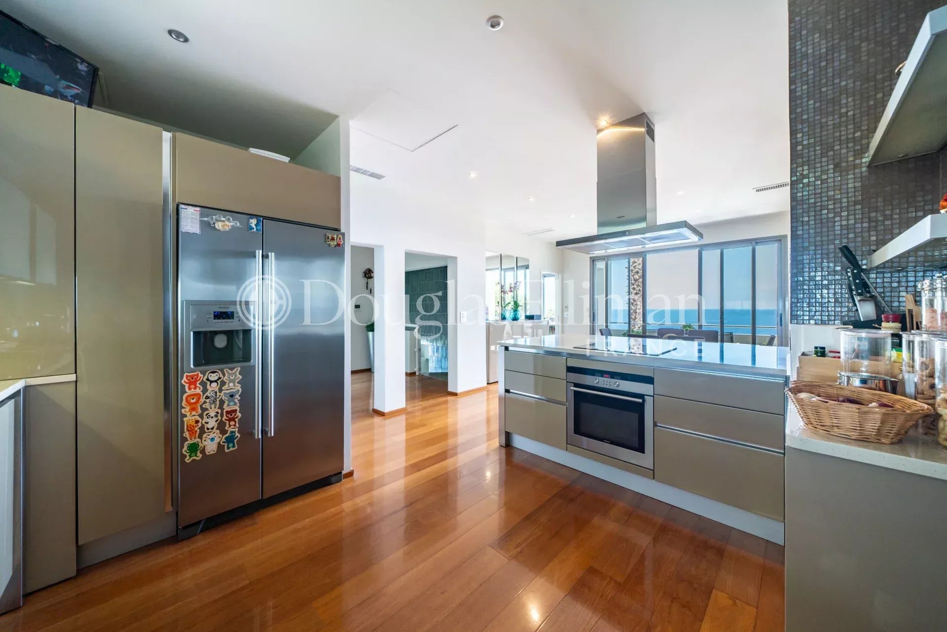 The property on 3 levels with consists on the main level of a large entrance hall leading onto a beautiful reception area with lounge and dining area opening onto an outdoor terrace with sea view, the kitchen and the family dining room, an office or bedroom with bathroom and covered terrace.