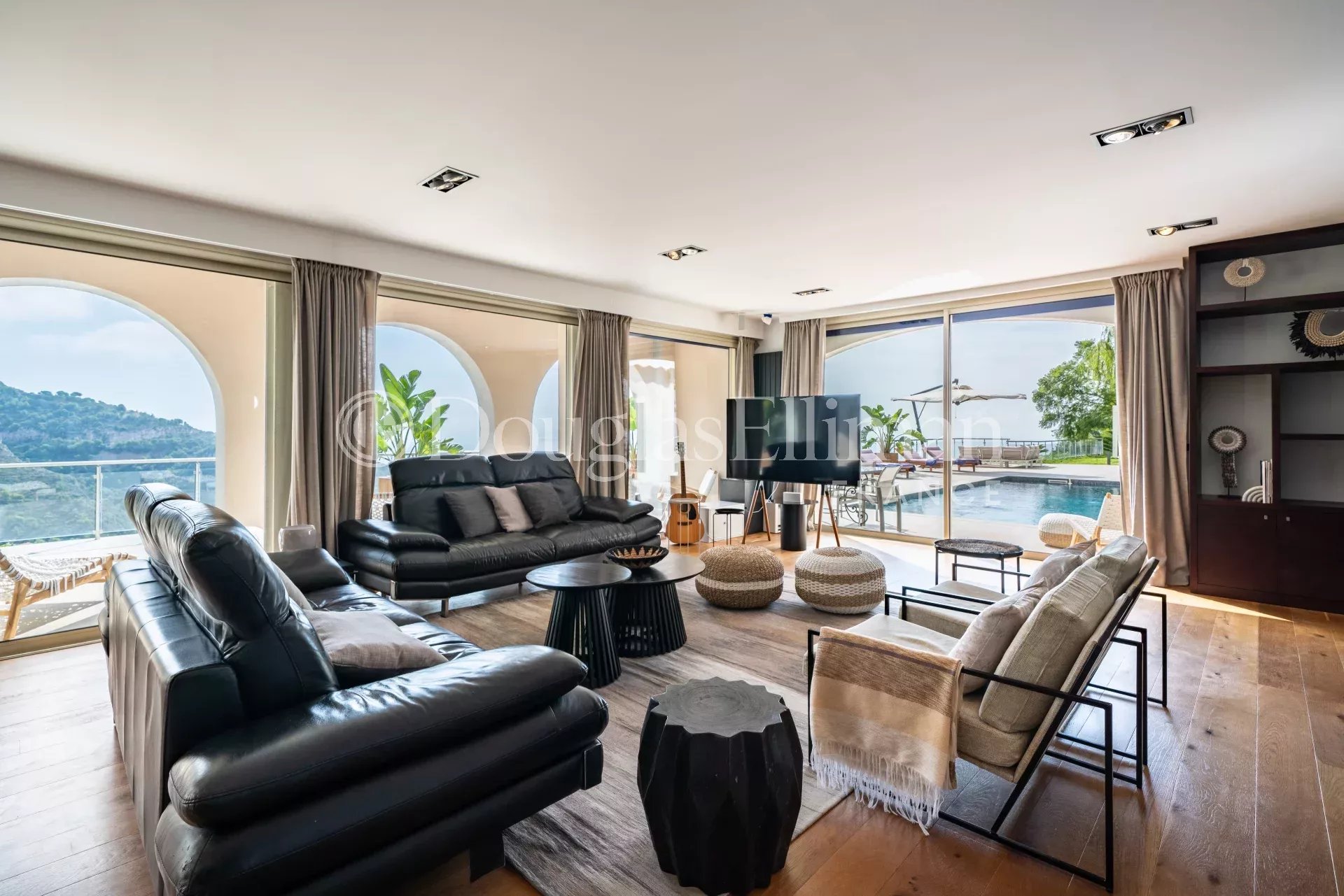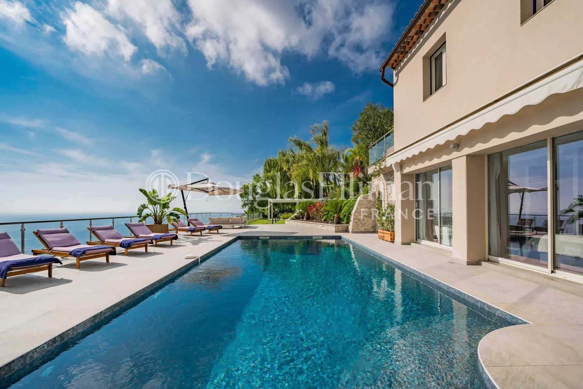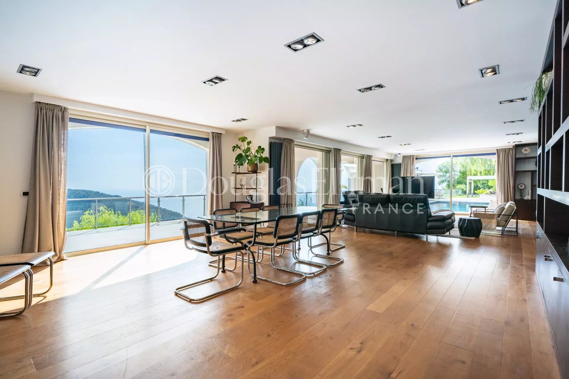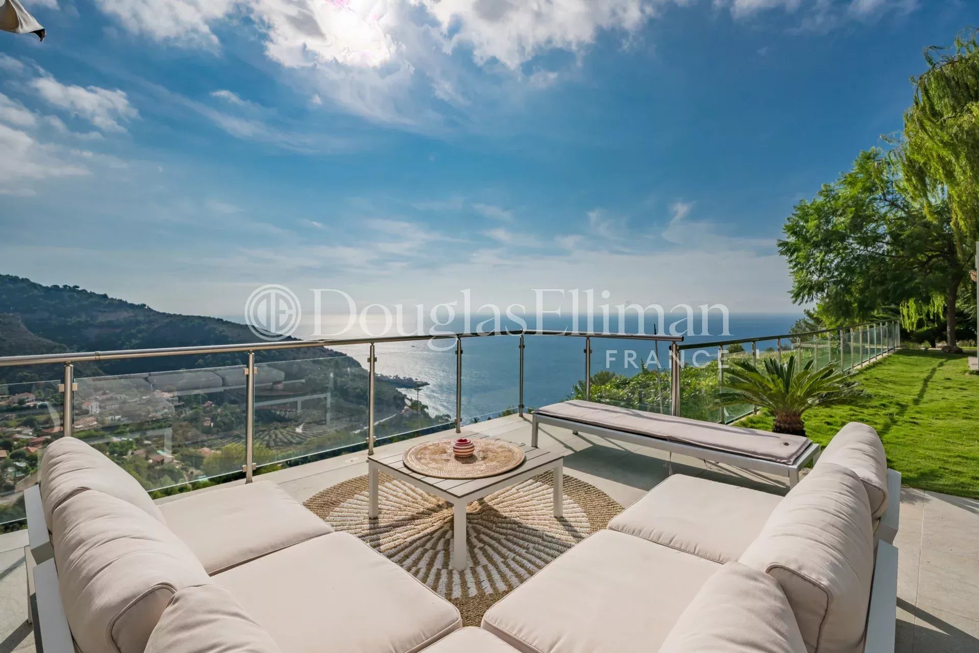 This stunning villa recently renovated in a contemporary style offers panoramic views of the sea. It is located in a private and secure domain near Monaco, on the heights of Saint-Laurent-d'Èze, overlooking the sea and the hills on a large plot of land of more than 4500 m2.