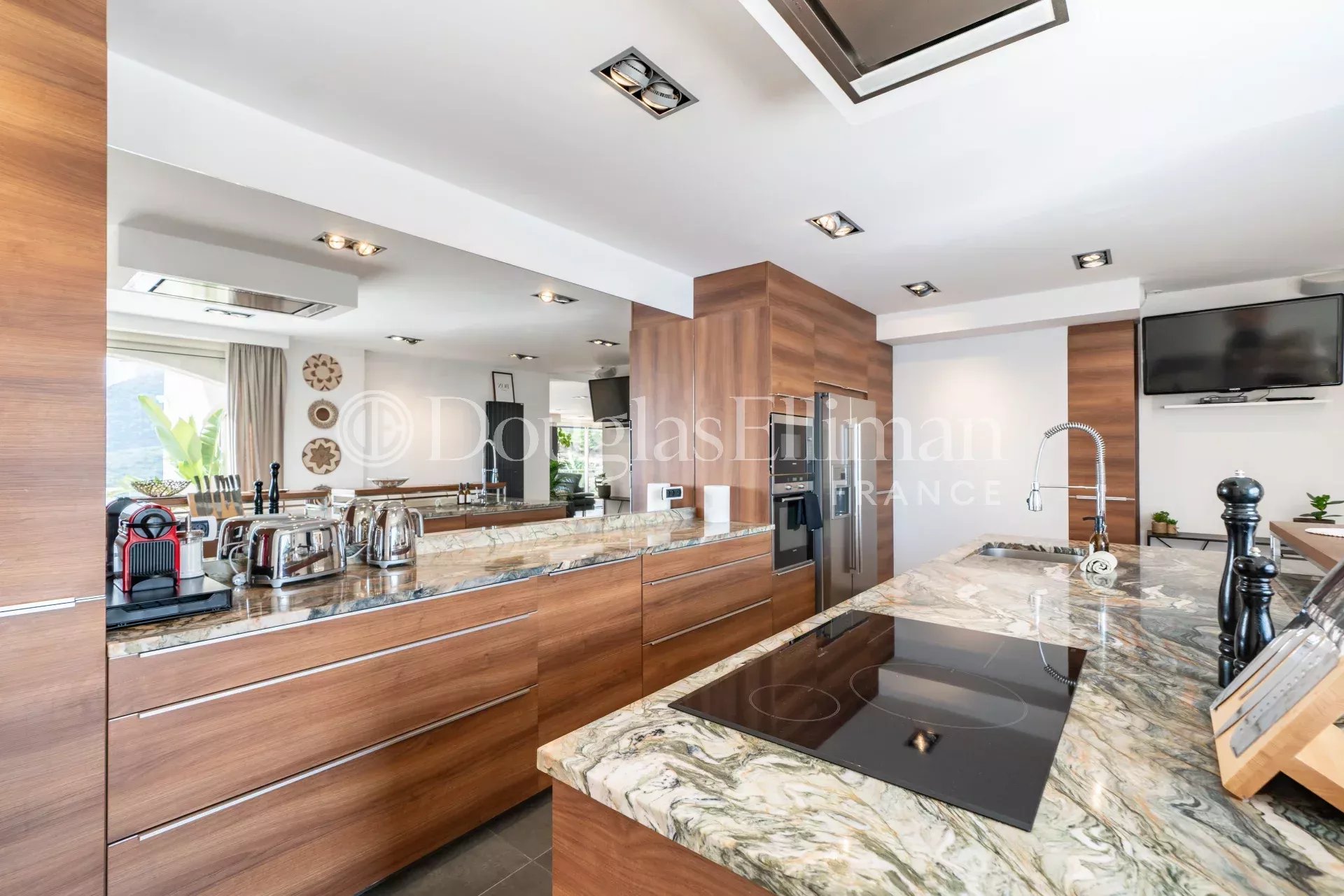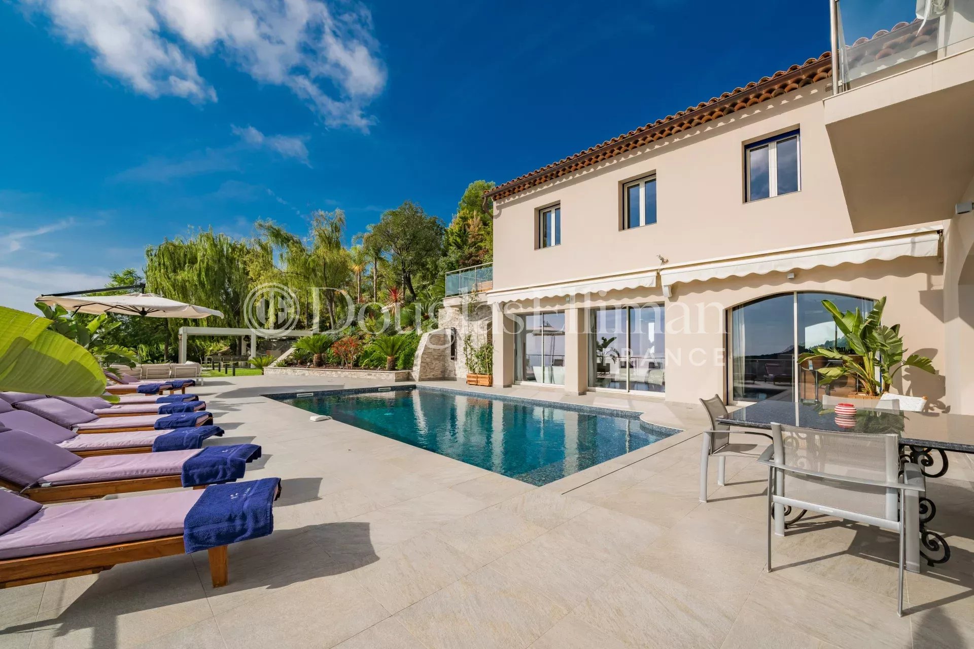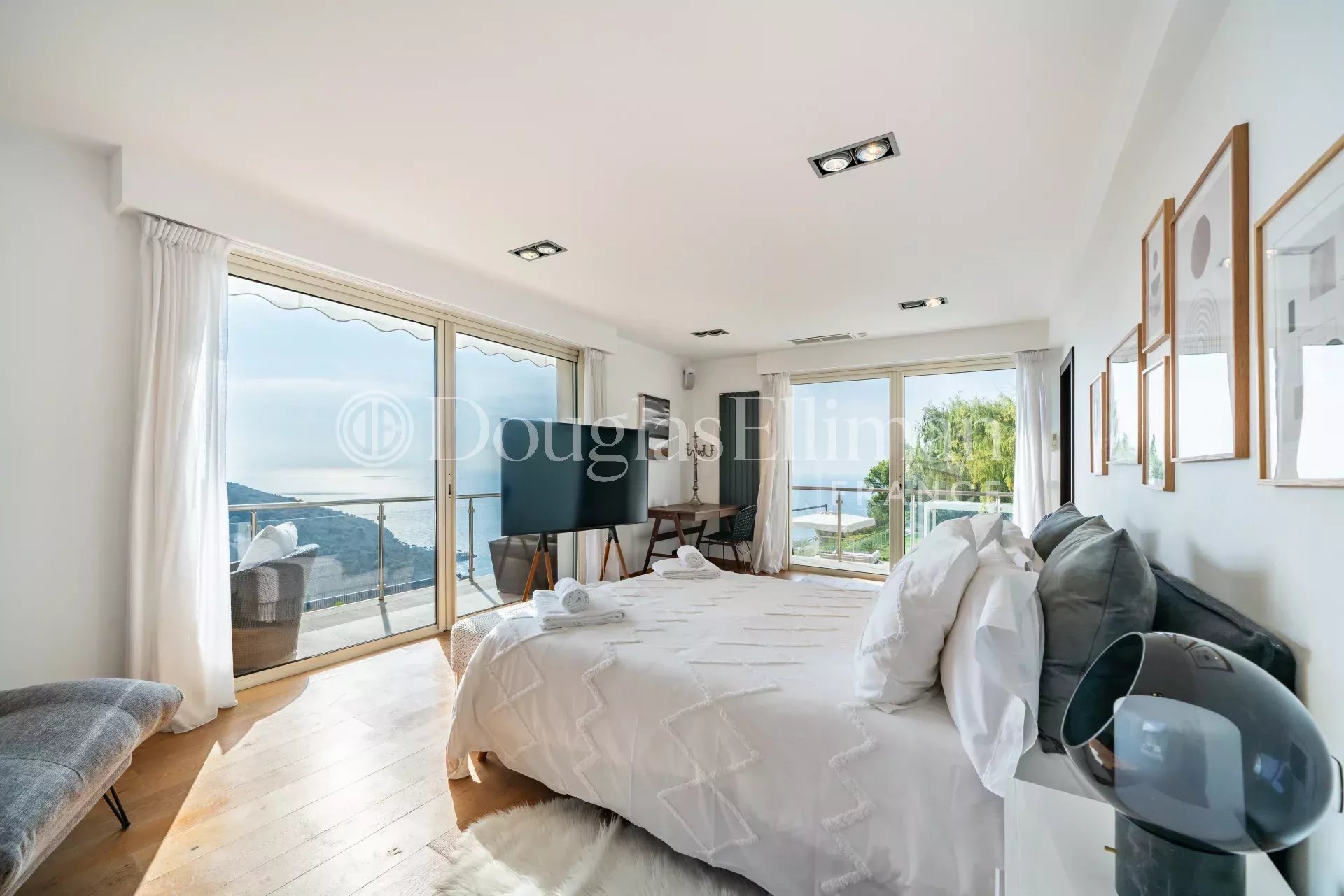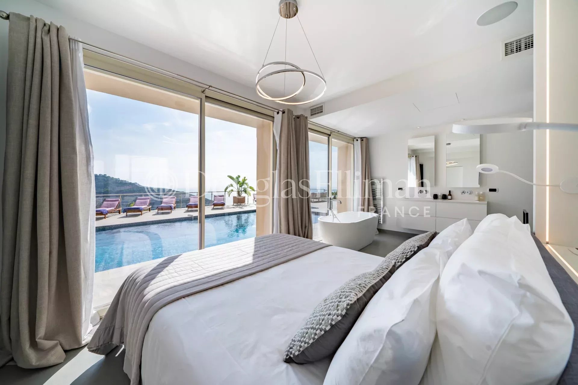 This stunning villa recently renovated in a contemporary style offers panoramic views of the sea. It is located in a private and secure domain near Monaco, on the heights of Saint-Laurent-d'Èze, overlooking the sea and the hills on a large plot of land of more than 4500 m2.