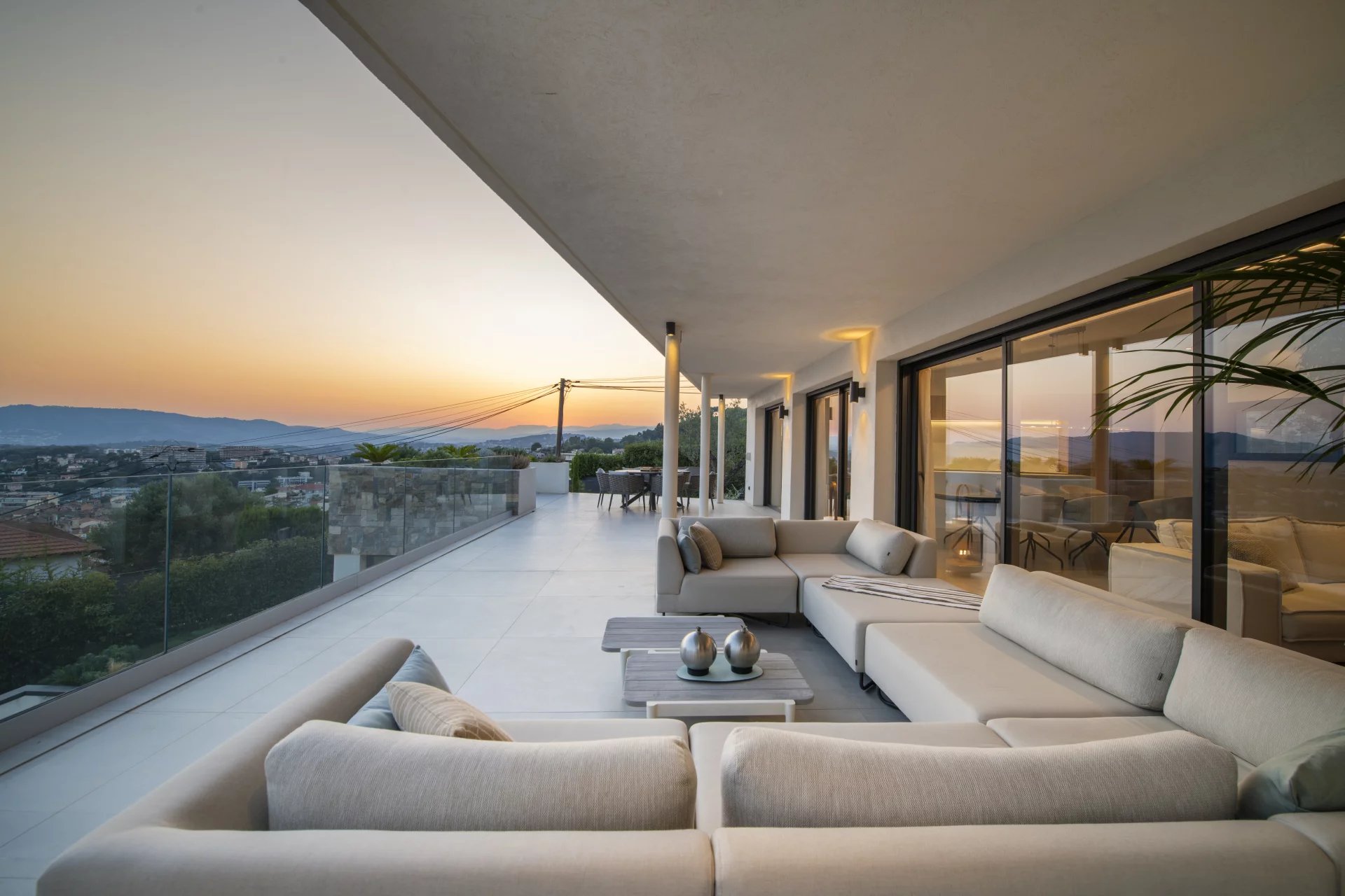 Ideally located in a dominant position in one of Le Cannet's most sought-after areas, this superb new contemporary property boasts top-of-the-range features and noble materials.
