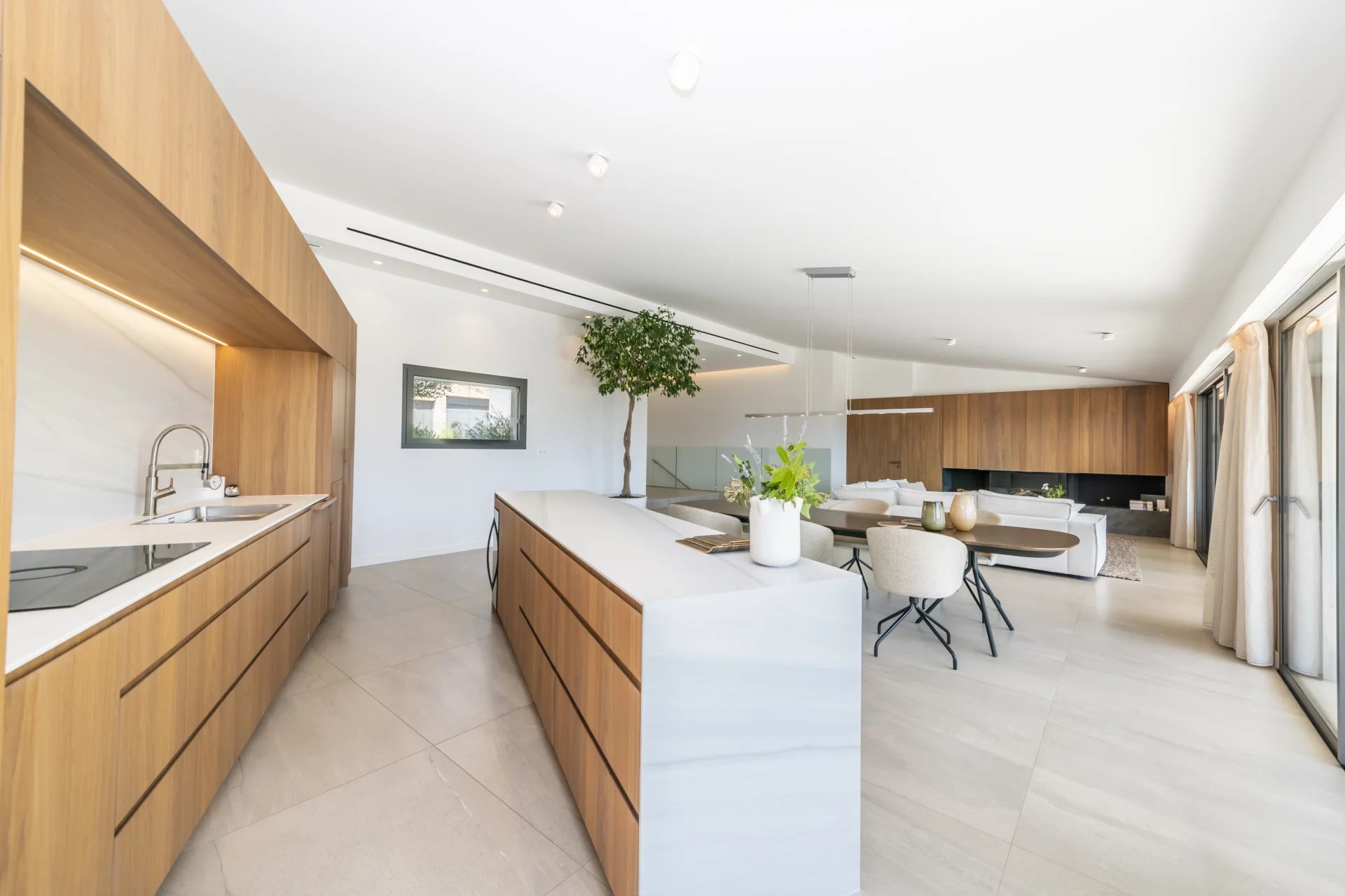 Bathed in light thanks to large bay windows opening onto the garden and the terrace of almost 100sqm, it features a vast, generously proportioned reception room with fireplace, a fully equipped open-plan kitchen, a TV room, an ensuite master bedroom with dressing room and 4 other en suite bedrooms.
