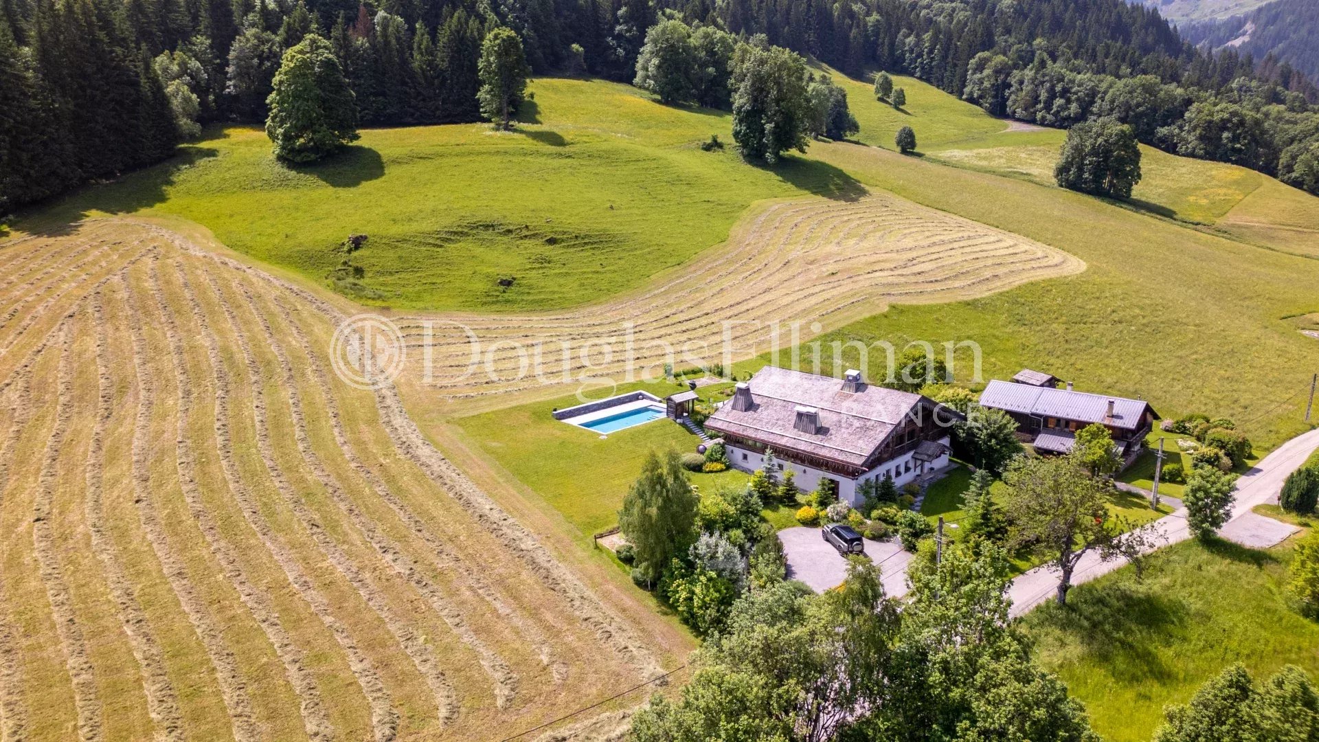 Just a few minutes from the center of Megève, this remarkable farmhouse, offering approximately 500 m² of living space, embodies a rare way of life. It captivates with its panoramic views of the surrounding mountains, its absolute tranquility, and the impeccable quality of its finishes.