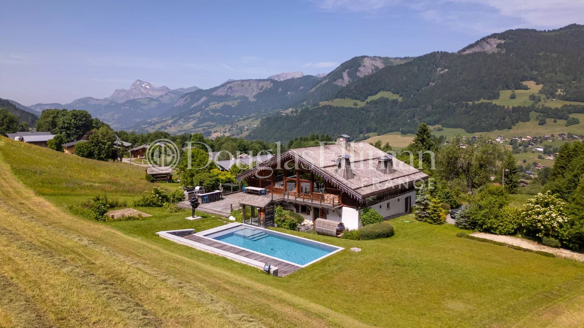 Set on a magnificent landscaped lot of 2,846 m², the property elegantly blends the authentic charm of Savoyard architecture with contemporary comfort. The spacious, light-filled rooms are enhanced by the use of fine materials and exceptional finishes.