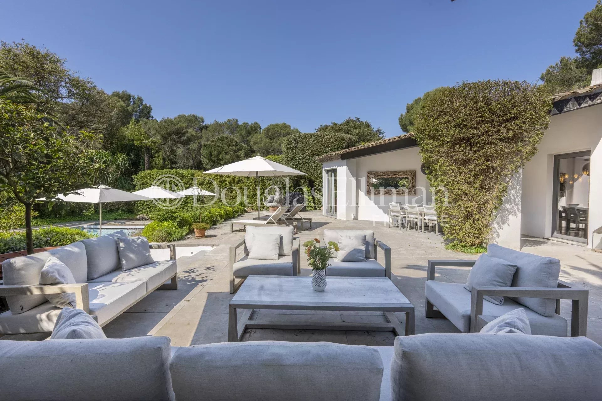An elegant south-facing villa with a modern classic design, set in one of Mougins’ most exclusive and private guarded domaines.