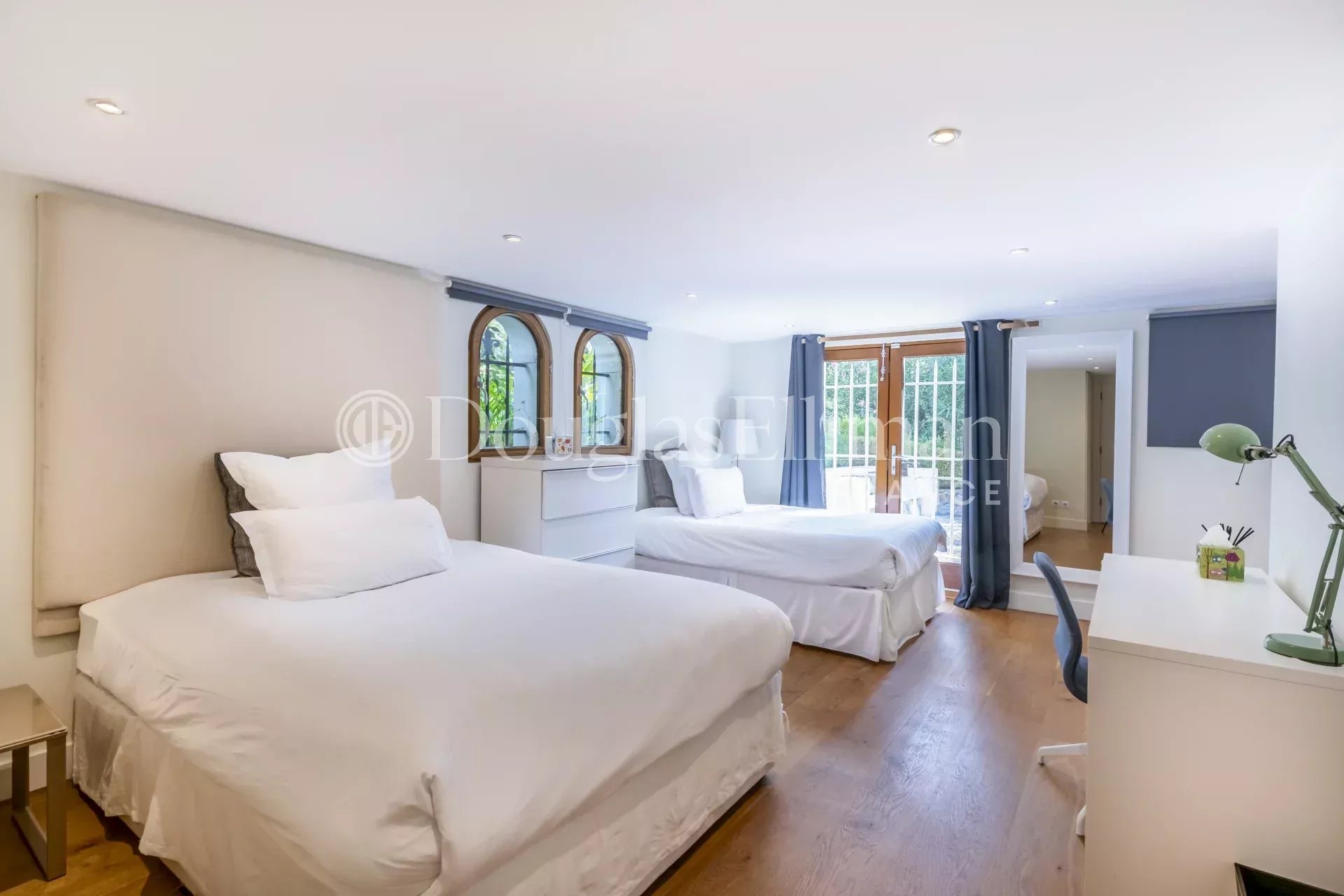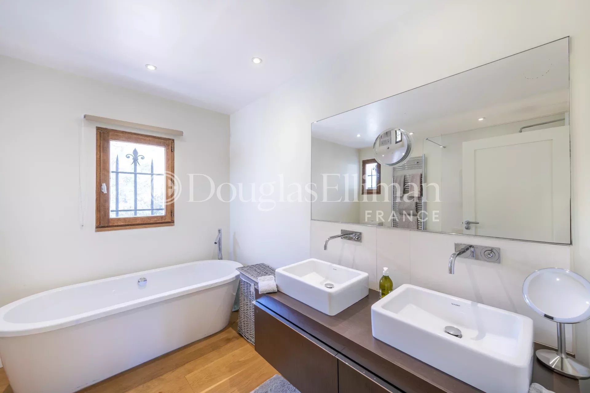 A residential property located in the private and secure domain of 'Les Parcs de Mougins'. The 362sqm villa, which has been recently renovated and decorated luxuriously, features an entrance hall, a living room with a fireplace, dining room and a fully equipped open-plan kitchen which opens onto the covered terrace and swimming pool. Comprised of five ensuite bedrooms, of which a principal bedroom with a lounge, a utility room and a fitness room.