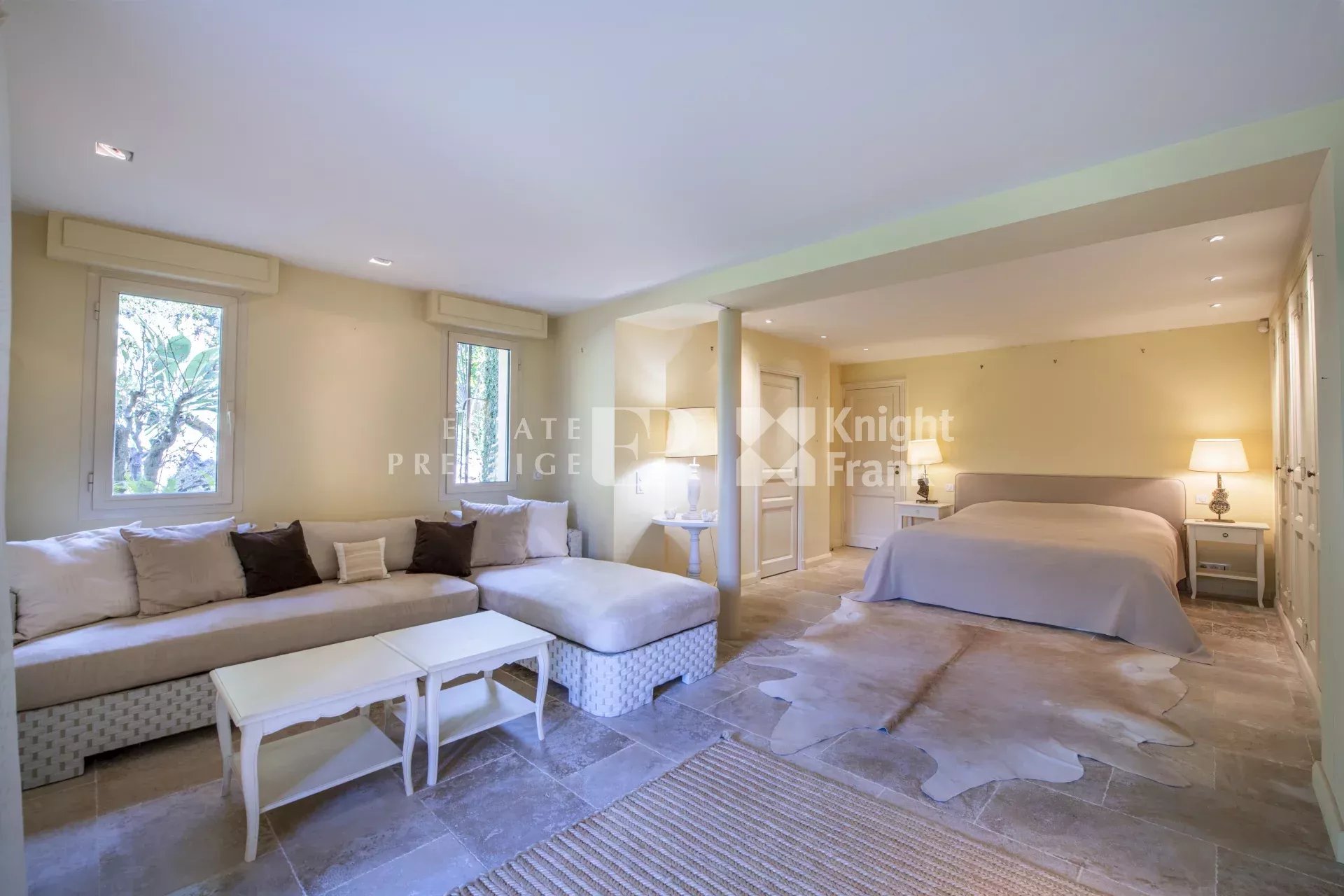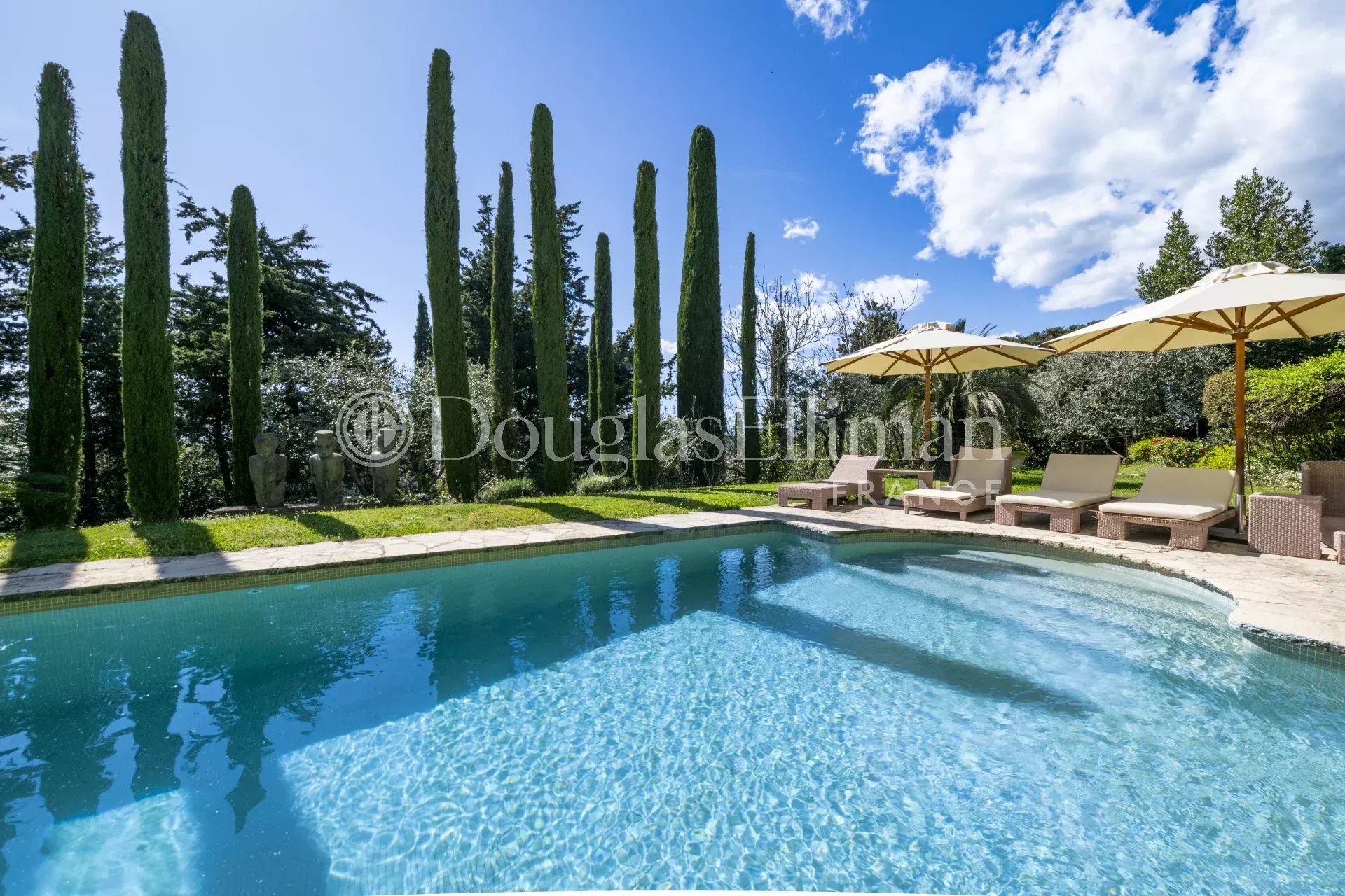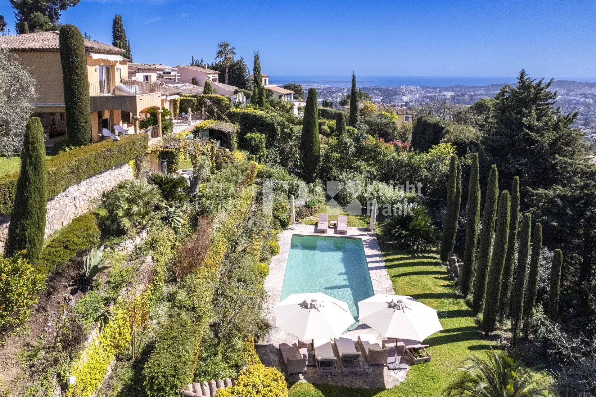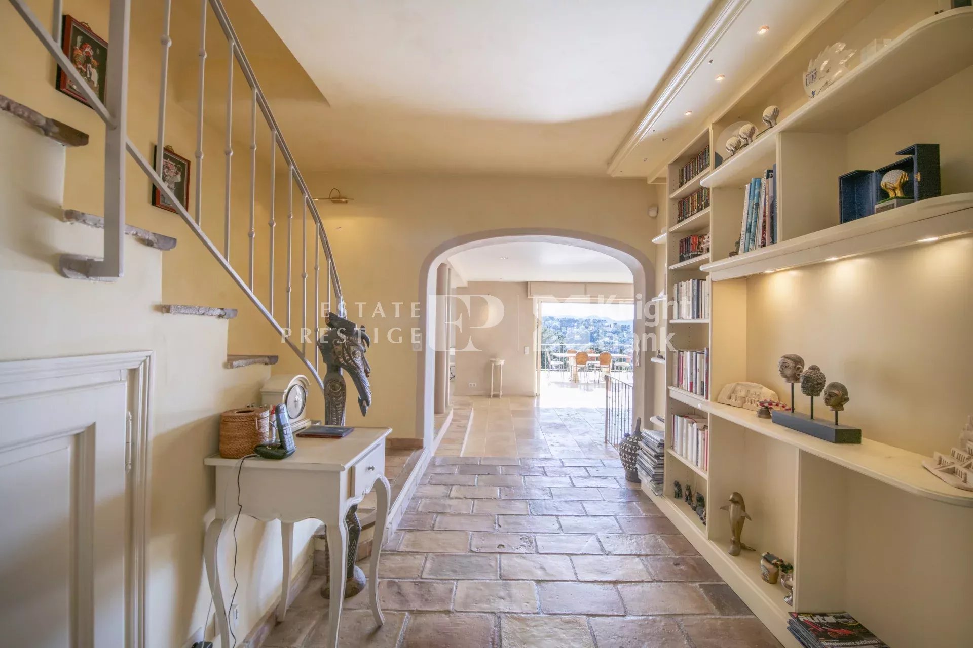 This remarkable home boasts captivating panoramic views of both the sea and mountains. Located within walking distance of the historic village renowned for its restaurants and galleries, and in close proximity to International schools, it is situated in a secluded enclave, offering an unparalleled retreat amidst the breathtaking landscapes of Provence.