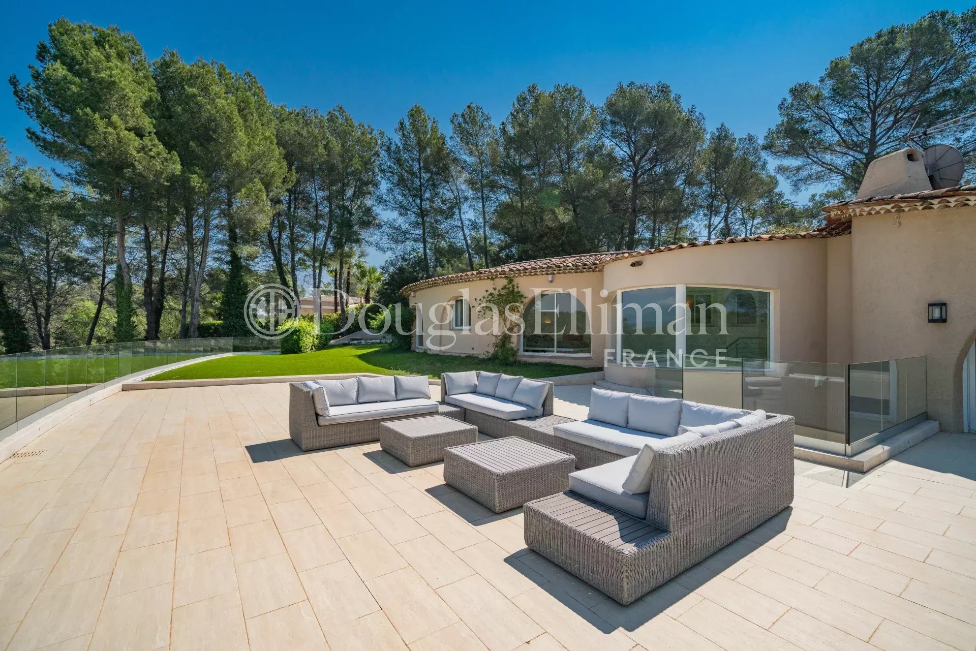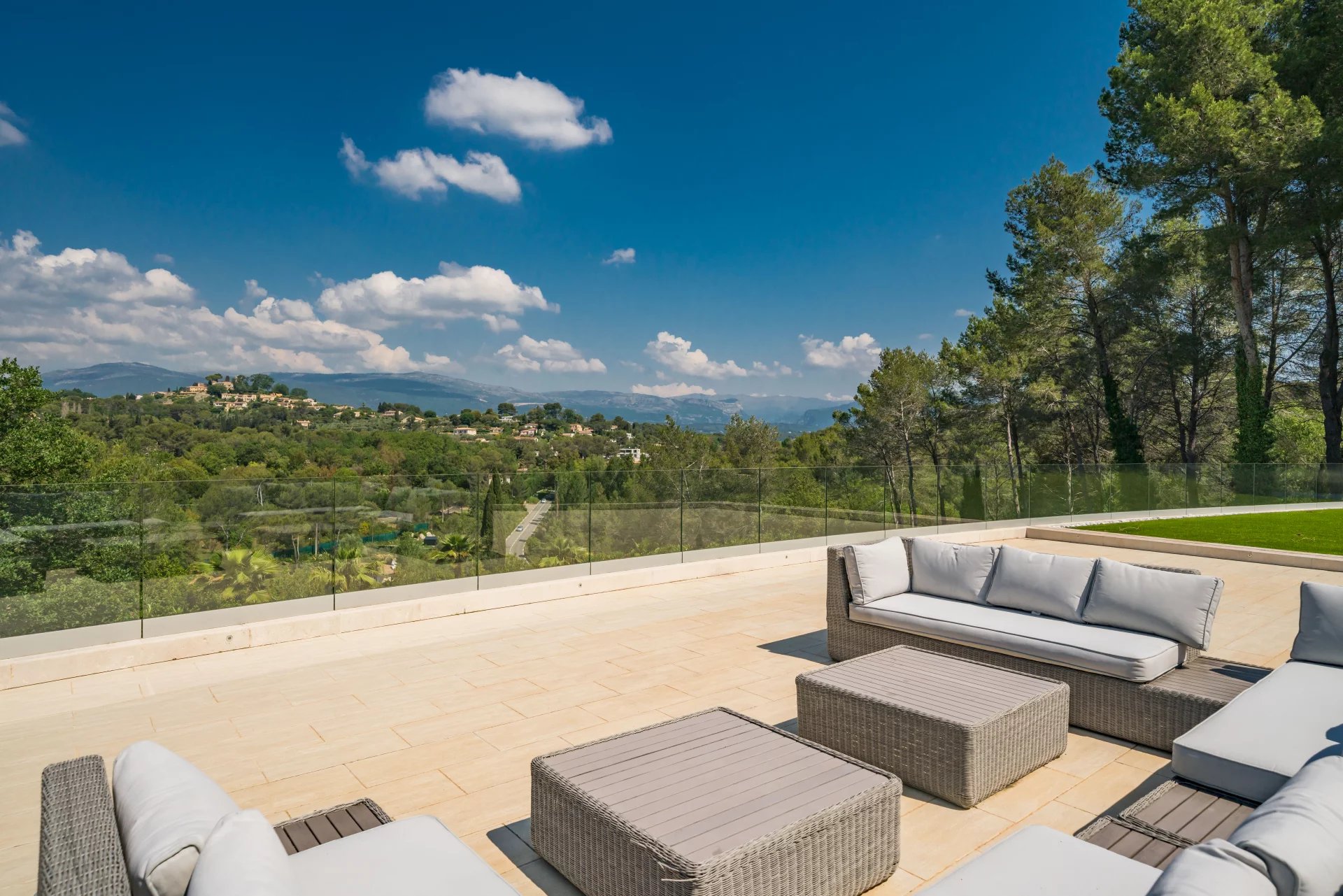 This villa not only offers breath-taking views of the Château de Castellaras but also boasts 4 sumptuous bedrooms, each providing a haven of tranquillity and unique design. Those who appreciate conviviality and privacy will be charmed by the spacious living room, bright dining area, and modern kitchen overlooking the meticulously landscaped garden and idyllic pool.