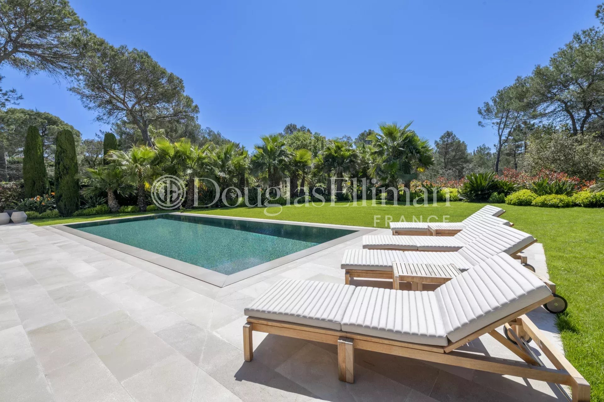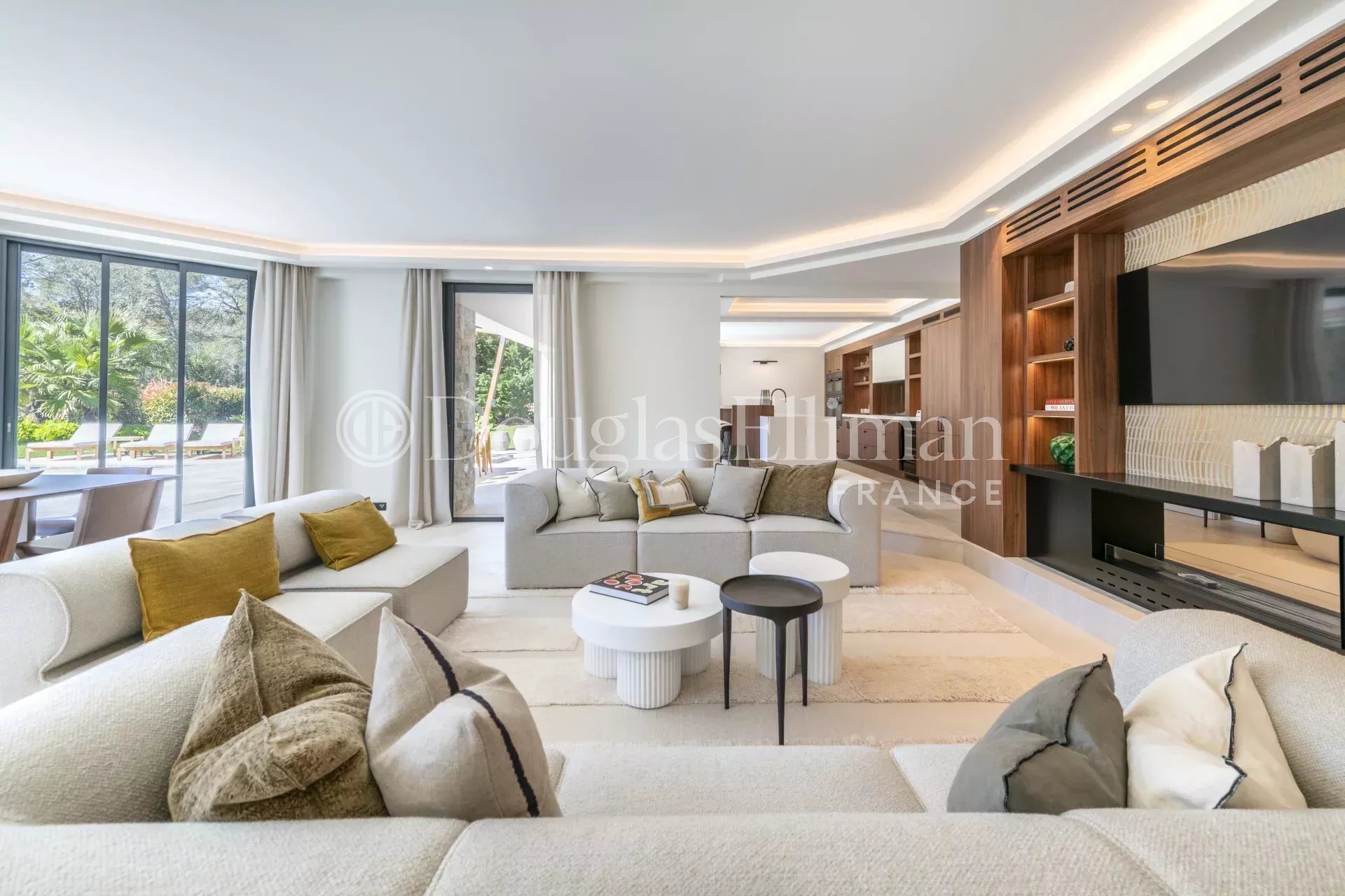 Located in one of Mougins' most prestigious private domain, just a few minutes from the old village and the Cannes-Mougins golf course, and 15 minutes from the Croisette beaches, this superb 300m2 villa has been completely renovated, in absolute calm, and is not overlooked.