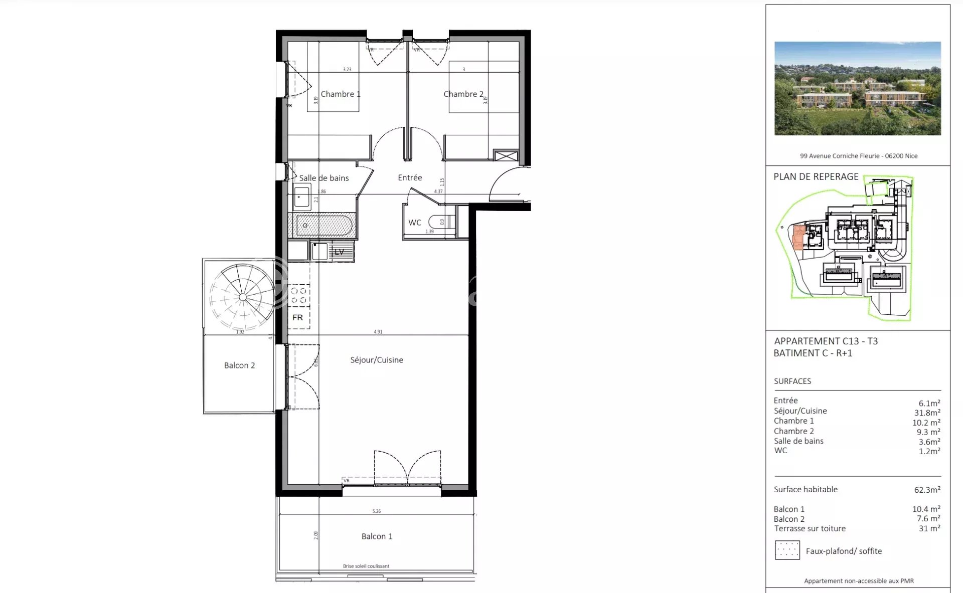 The residence is located on the Corniche fleurie, a quiet, leafy neighborhood in the heights of Nice, just a few minutes from the city center, shops, high schools, schools and sports centers.