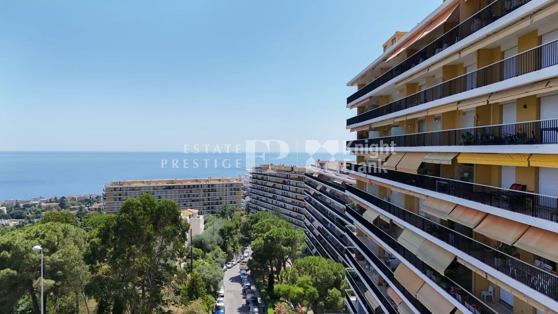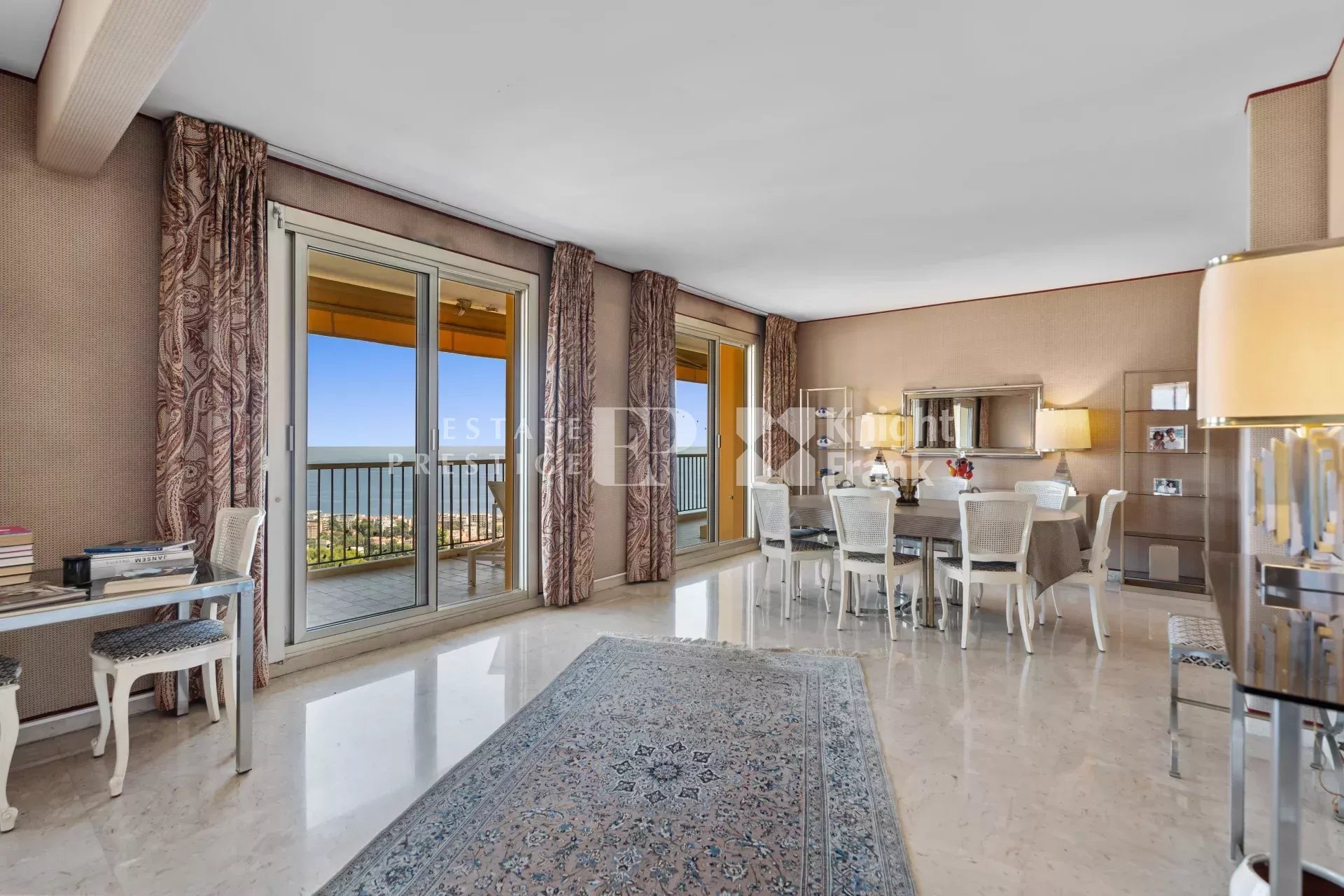 The result of uniting two apartments it offers generous volumes, 2 entrances and breathtaking panoramic views stretching from Cap Ferrat across the Bay of Angels to Cap d’Antibes.