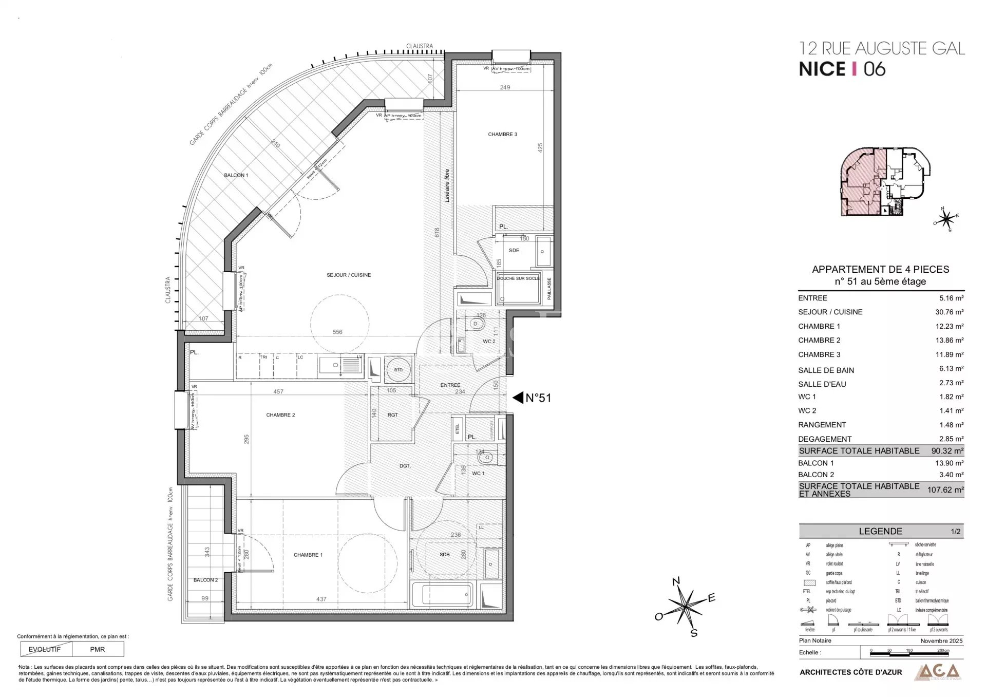 Discover this superb 90 m² contemporary apartment on a high floor in Nice's sought-after Port district. Featuring three spacious bedrooms and an almost 15m2 terrace perfect for enjoying the mild Nice climate, this living space combines comfort and modernity. The large aluminum windows and double glazing ensure optimum sound and heat insulation, while the double exposure provides optimal light.