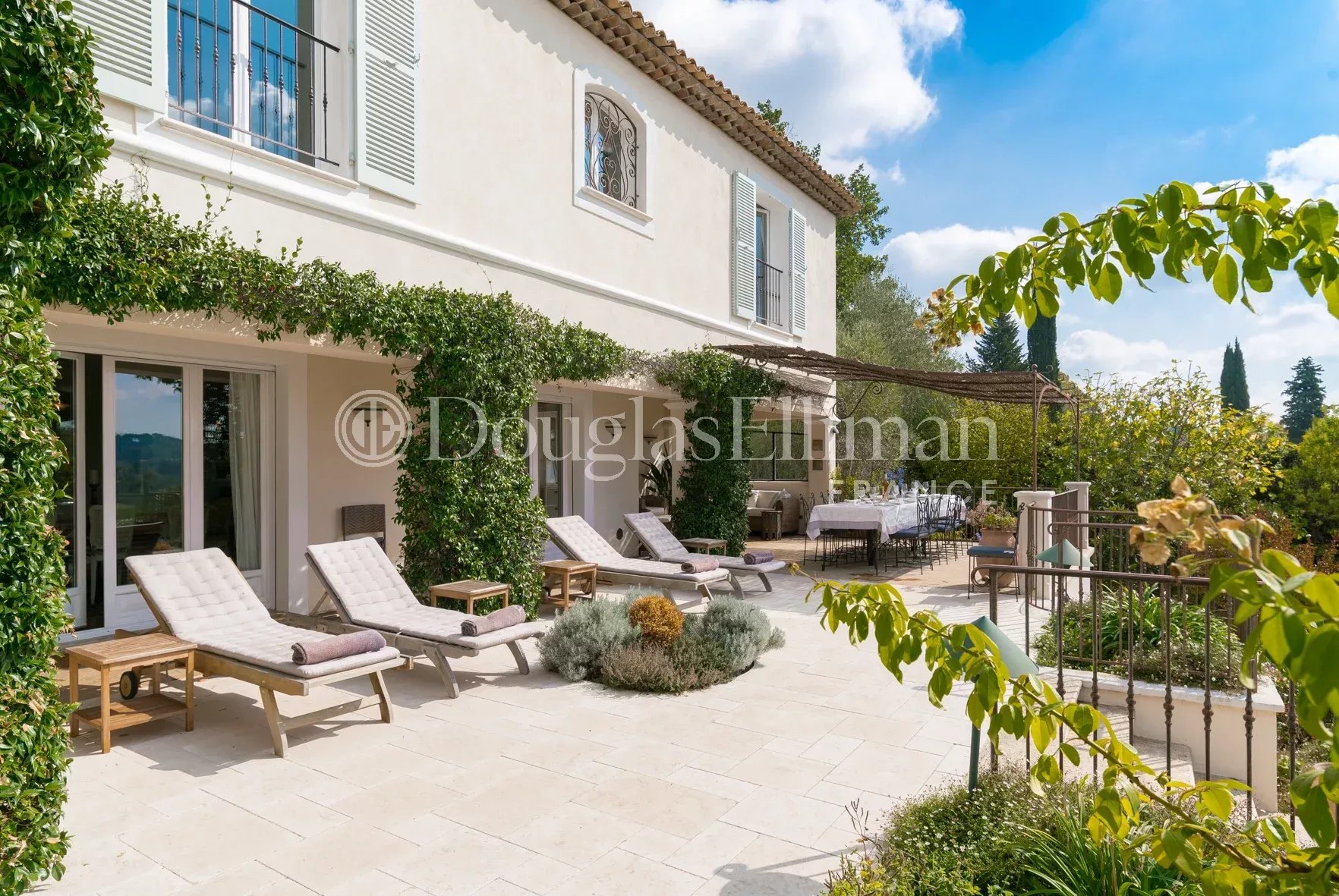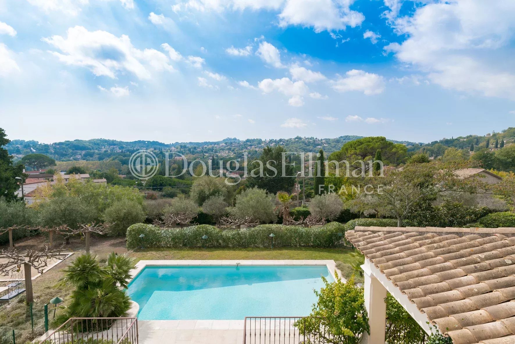 This property is located a very short walk from the village of Valbonne and benefits from a quiet setting with a south-facing open view over Valbonne village and the Castellaras hills.