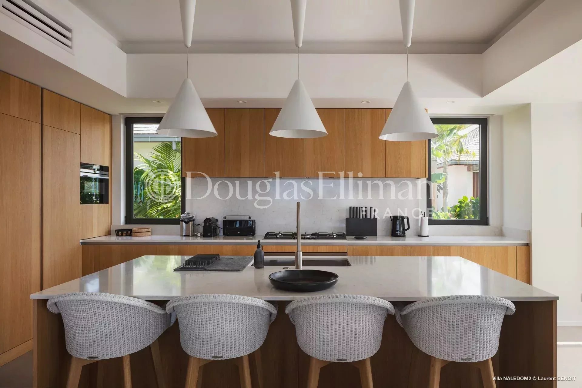 Set on a 2,150m² plot, this 240m² property opens onto a light-filled double living room and open kitchen of over 100m², with sea views.