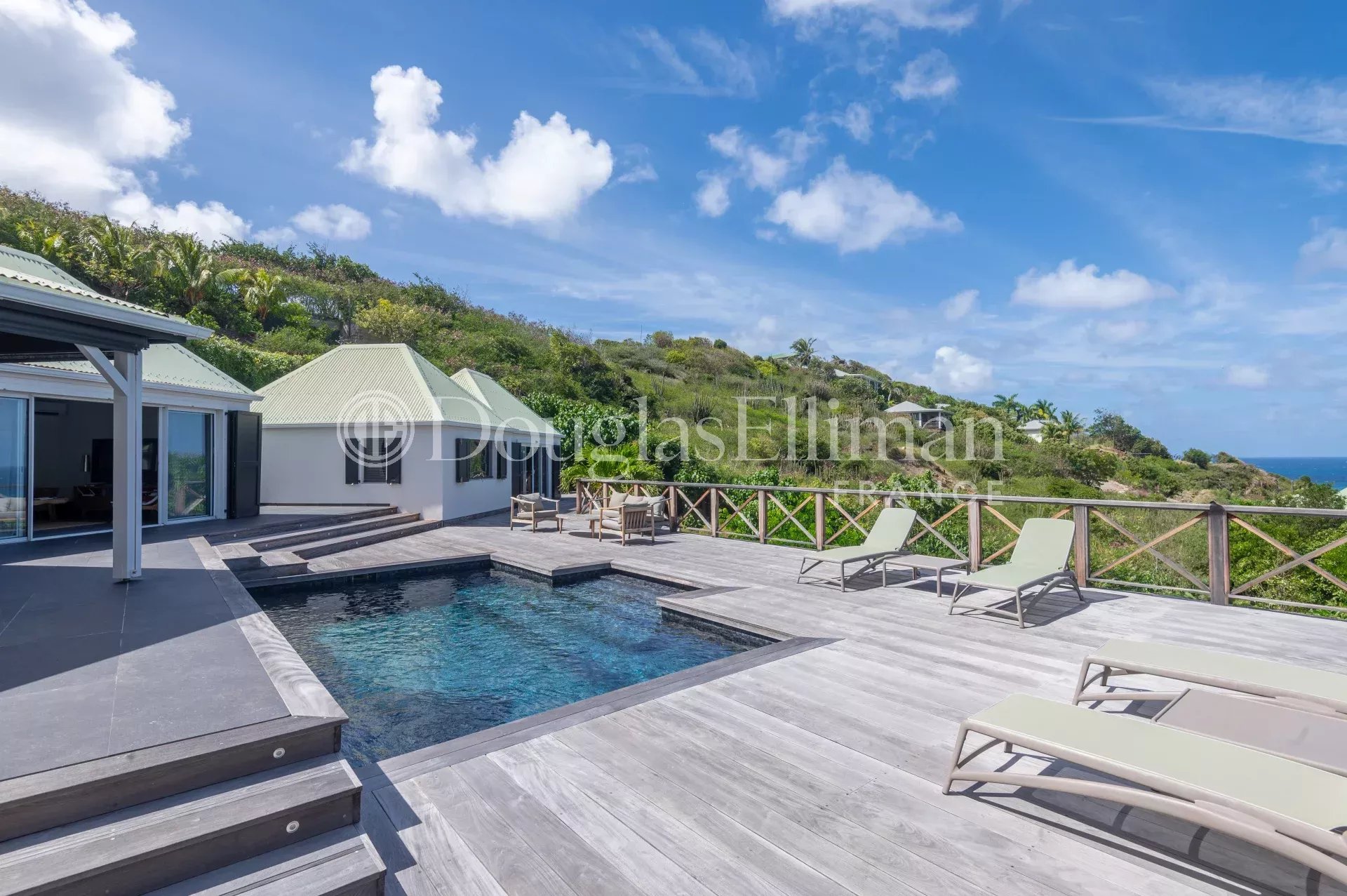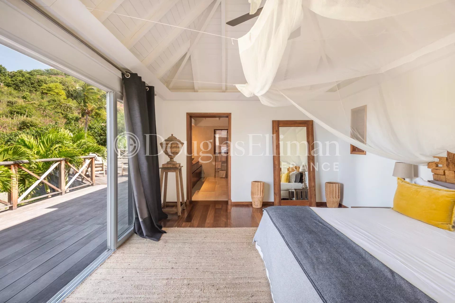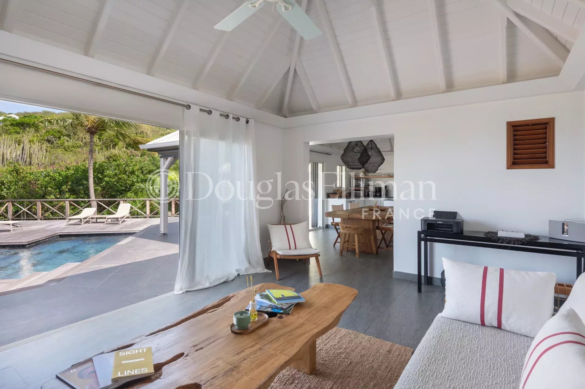 Located in Petit Cul-de-Sac, in a quiet, leafy setting right next to the lagoon and hotels such as the Toiny or the Barthélemy, the MLE villa offers a peaceful, sought-after living environment in Saint-Barthélemy.