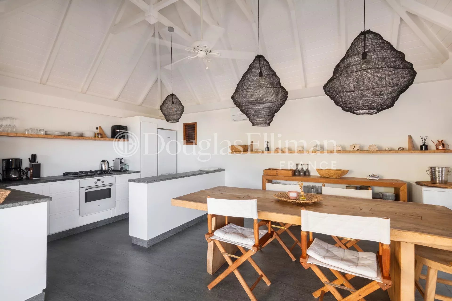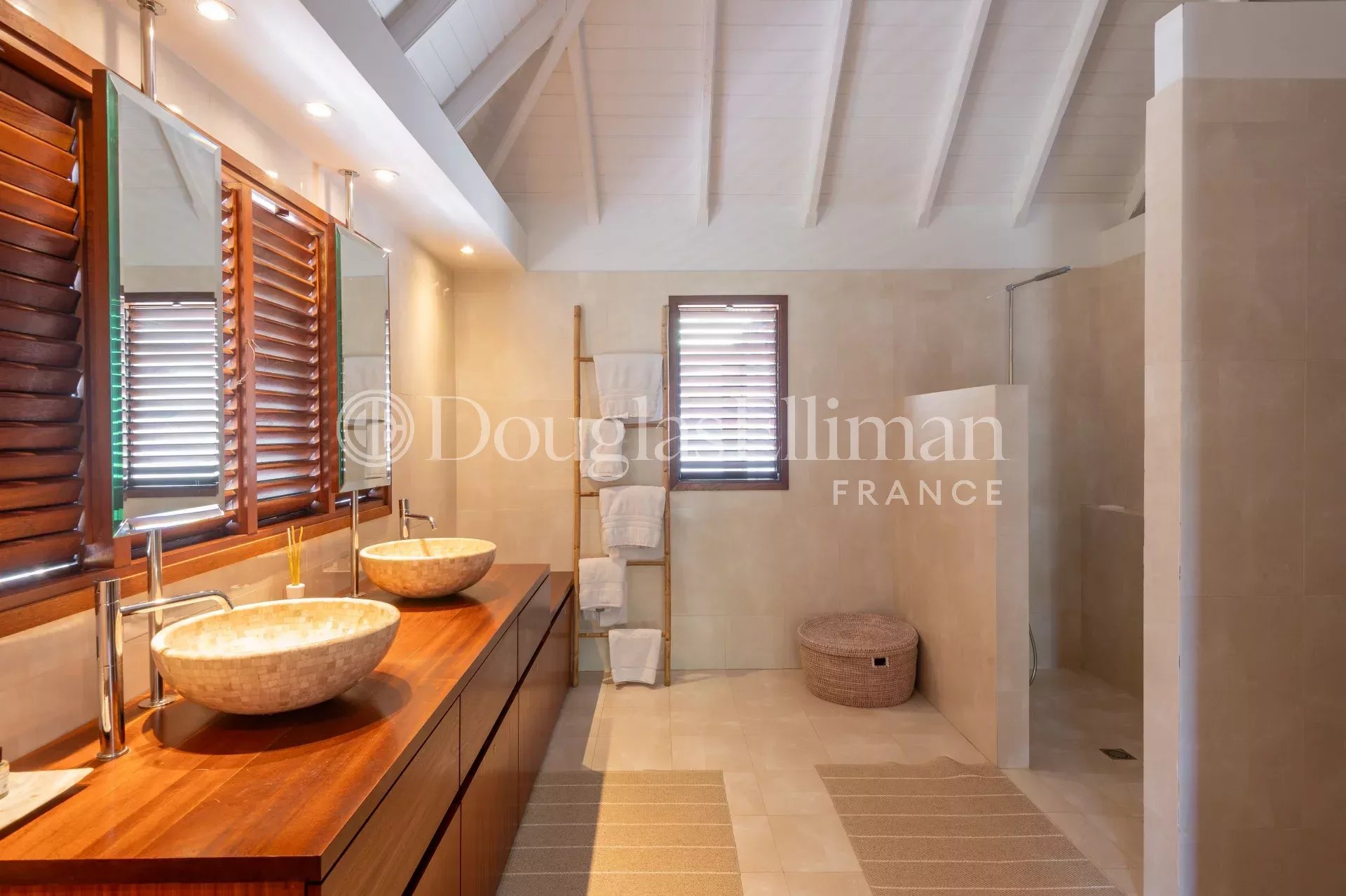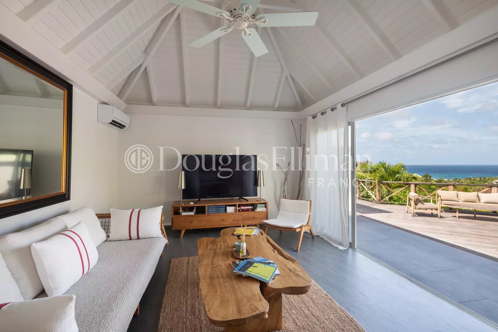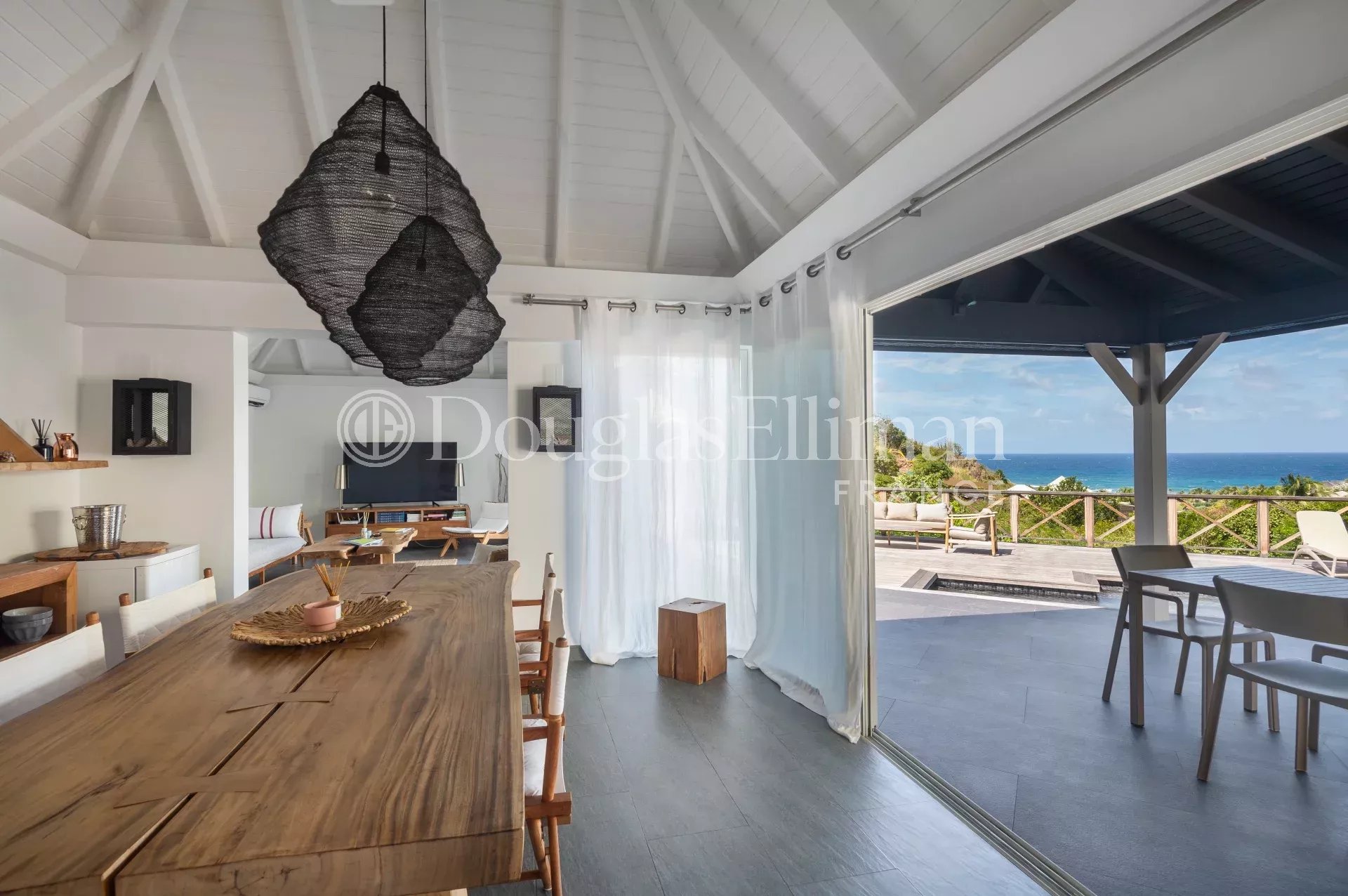 Located in Petit Cul-de-Sac, in a quiet, leafy setting right next to the lagoon and hotels such as the Toiny or the Barthélemy, the MLE villa offers a peaceful, sought-after living environment in Saint-Barthélemy.