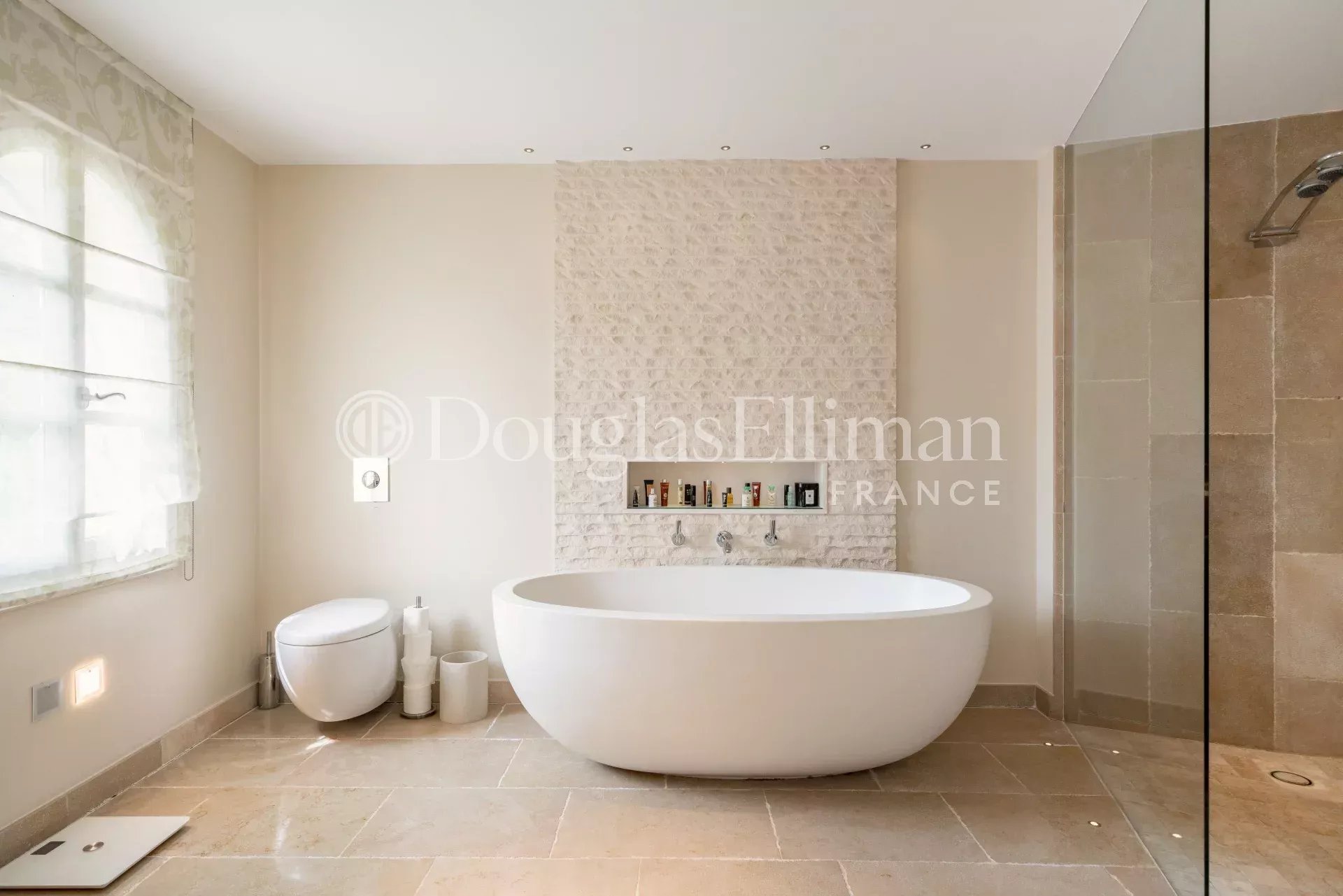 Offering 6 bedrooms all with en suite bathrooms and including an independent apartment, the property also offers a very chic reception room with fireplace and double height ceiling, dining room, designer kitchen, library, but also a cinema room, a gym room, and wine cellar.