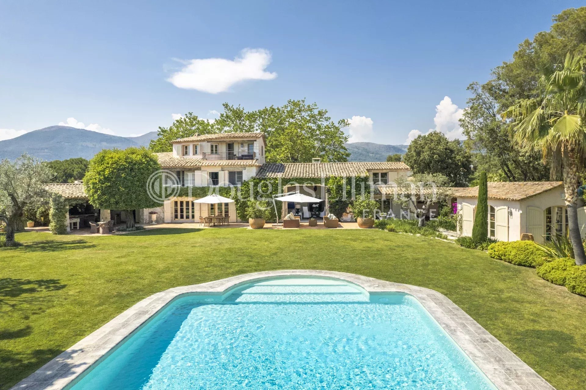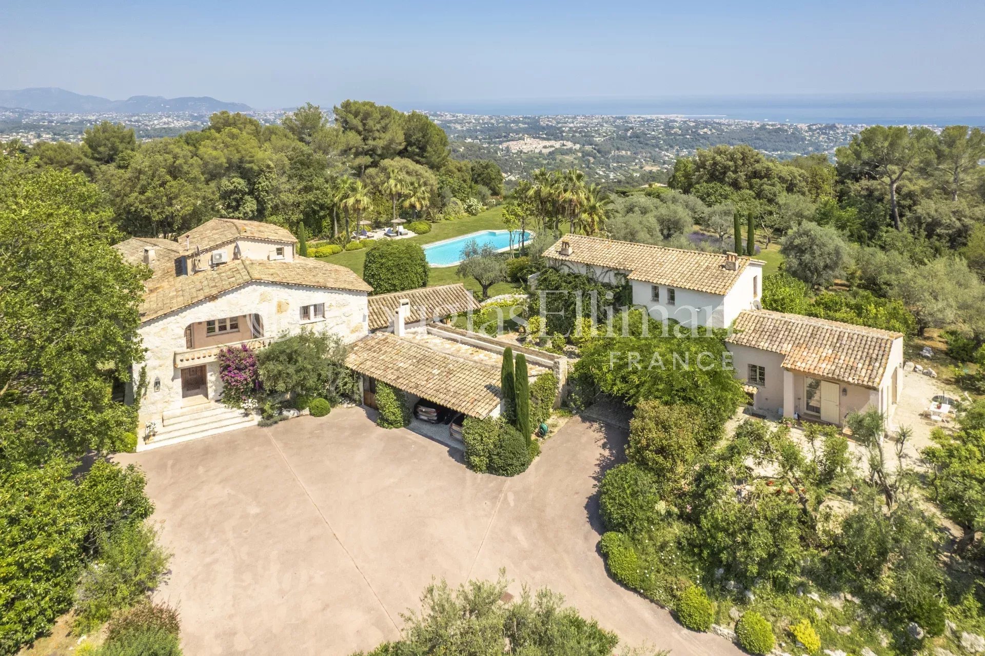 In the most sought after secured domain in the area this beautiful stone property rests on the top of the hill within a 1,2 hectare of private park land with stunning sea, village and coastal views.
