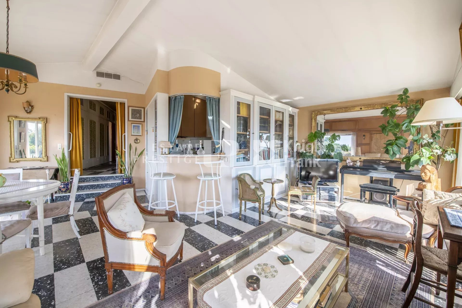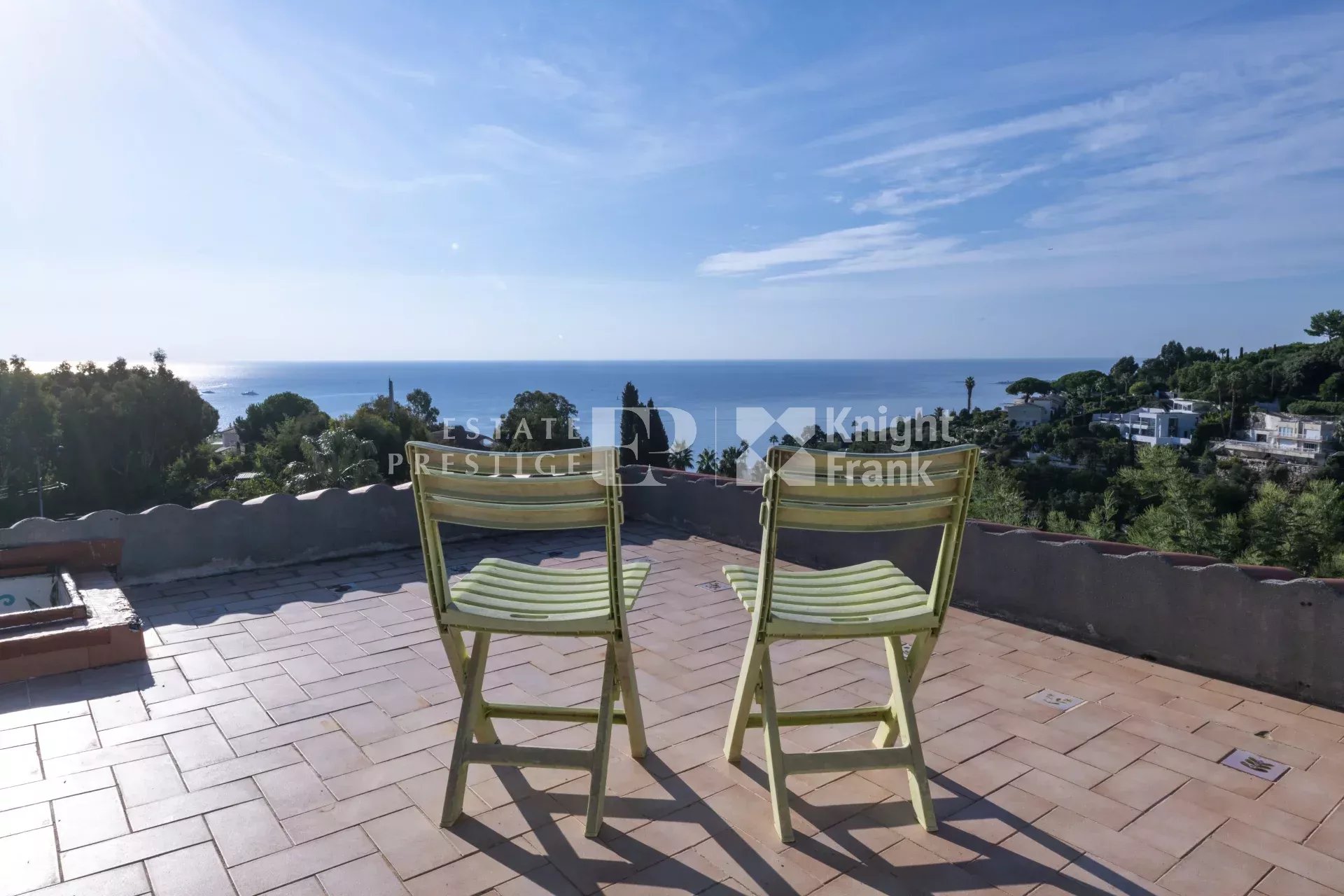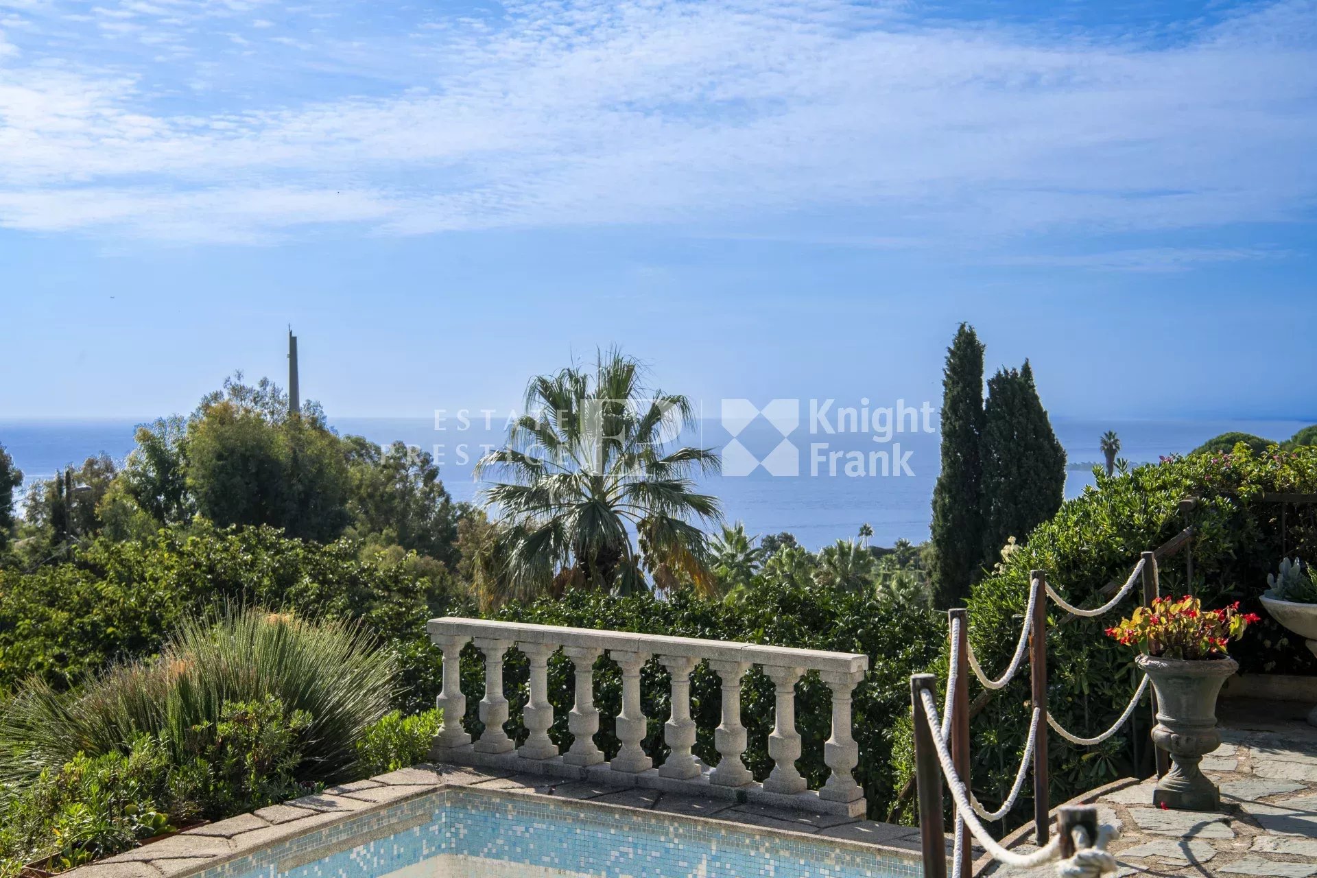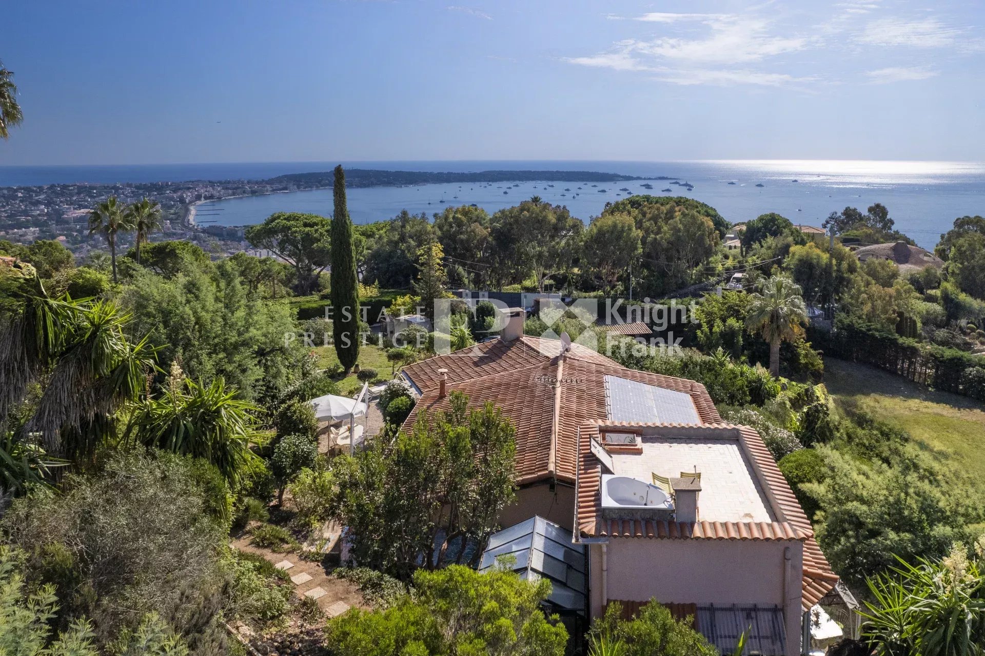 In a privileged and absolutely peaceful location, this villa boasts panoramic sea views over the bay of Golfe Juan and Cap d'Antibes.