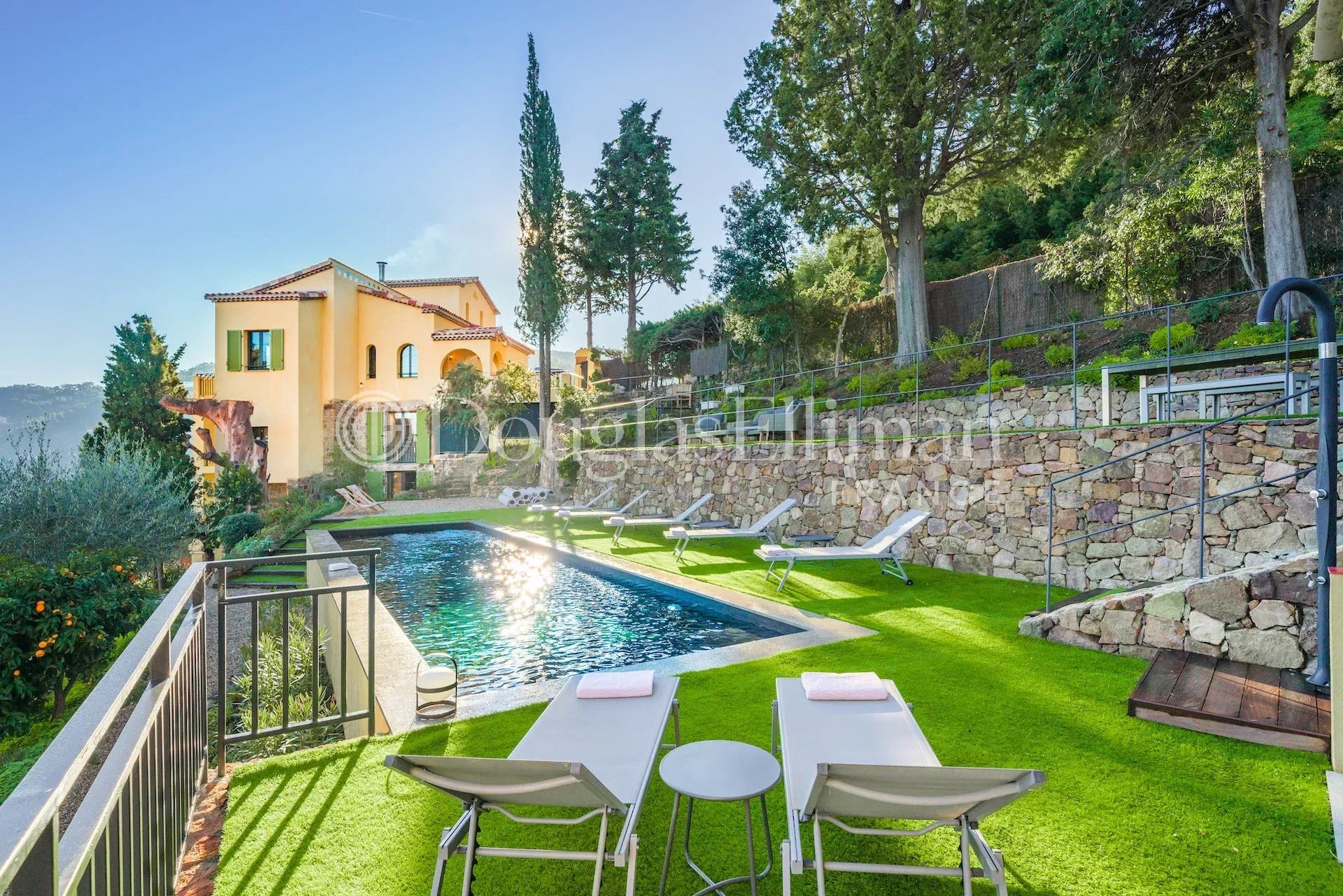 The exteriors offer numerous terraces with lounge and dining areas, a 2.5x8m salt water swimming pool, parking for 3 cars.