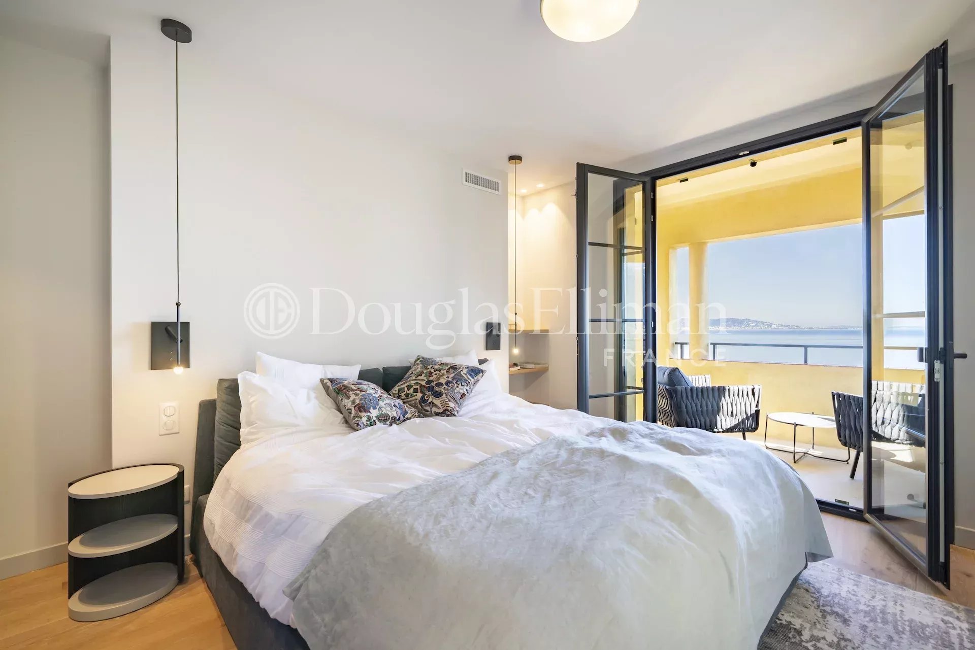 On Level -1 the villa offers, bedroom 3 with double bed (160cm), ensuite bathroom with shower and toilets, balcony with sea view, office, bedroom 4 with double bed (160cm), ensuite bathroom with shower, double sink and toilets, balcony with sea view, laundry room with access to a terrace.