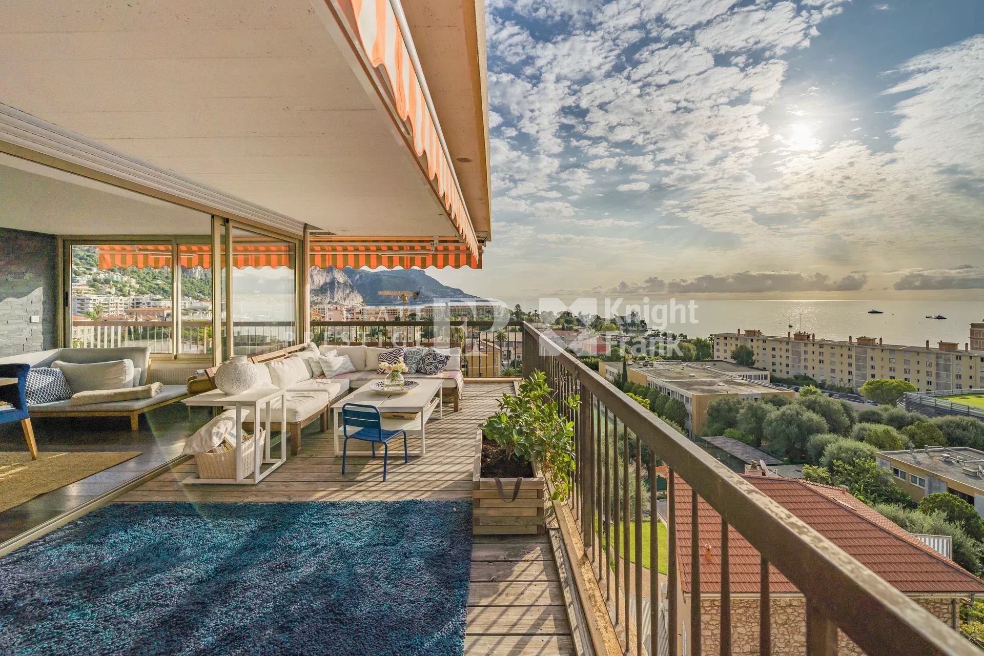 Walking distance to the sea, parks, restaurants and shops of the city. The apartment offers a total of about 140 square meters of living space comprised of: hall way, living room, dining room and open kitchen; master bedroom ensuite with bathroom; guest lavatory; a further 2 bedrooms sharing a shower room. All rooms of the apartment enjoy the panoramic sea views from the Cap Ferrat to Eze. A 36 square meter terrace runs all the way round the apartment and also benefits of a barbecue area.