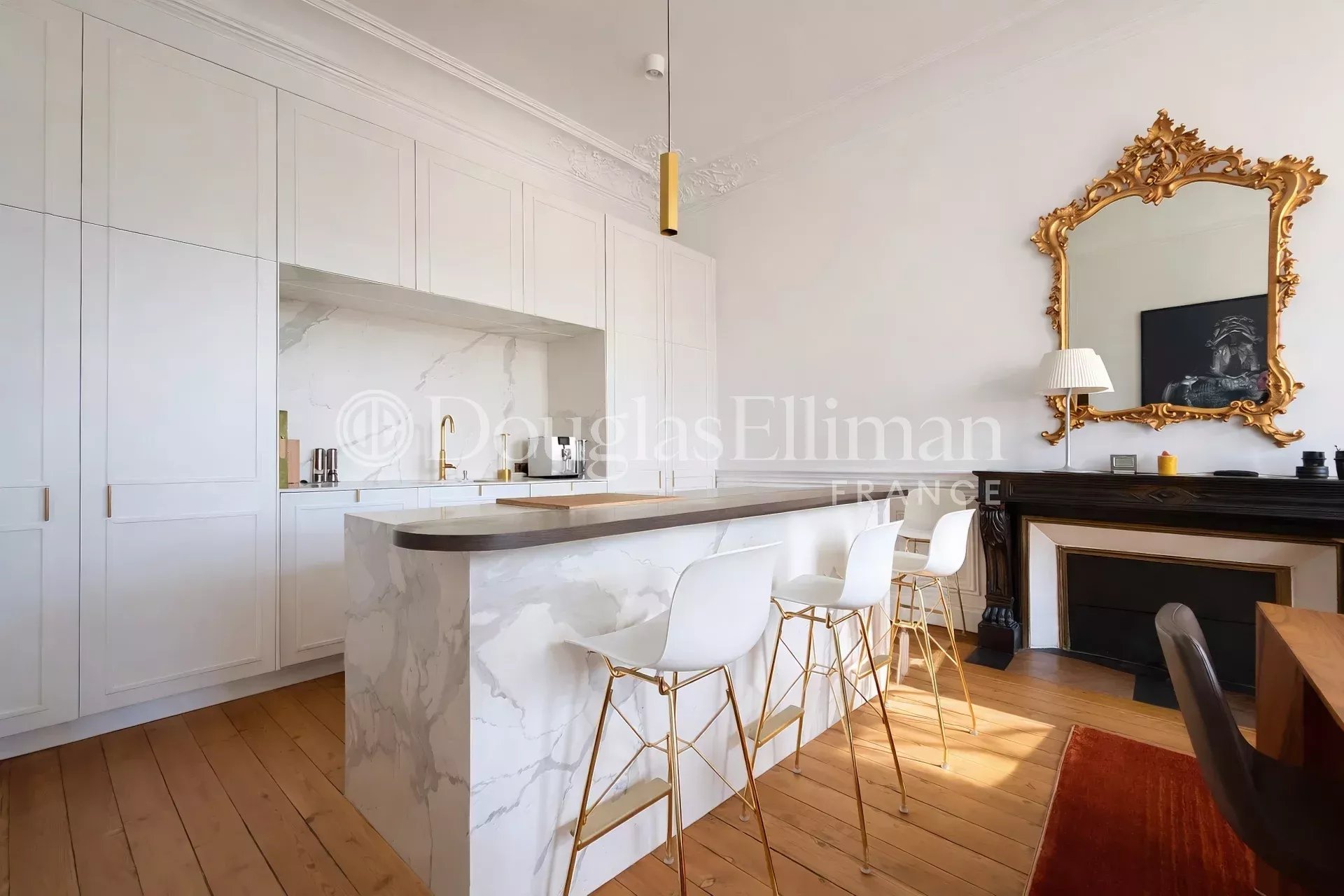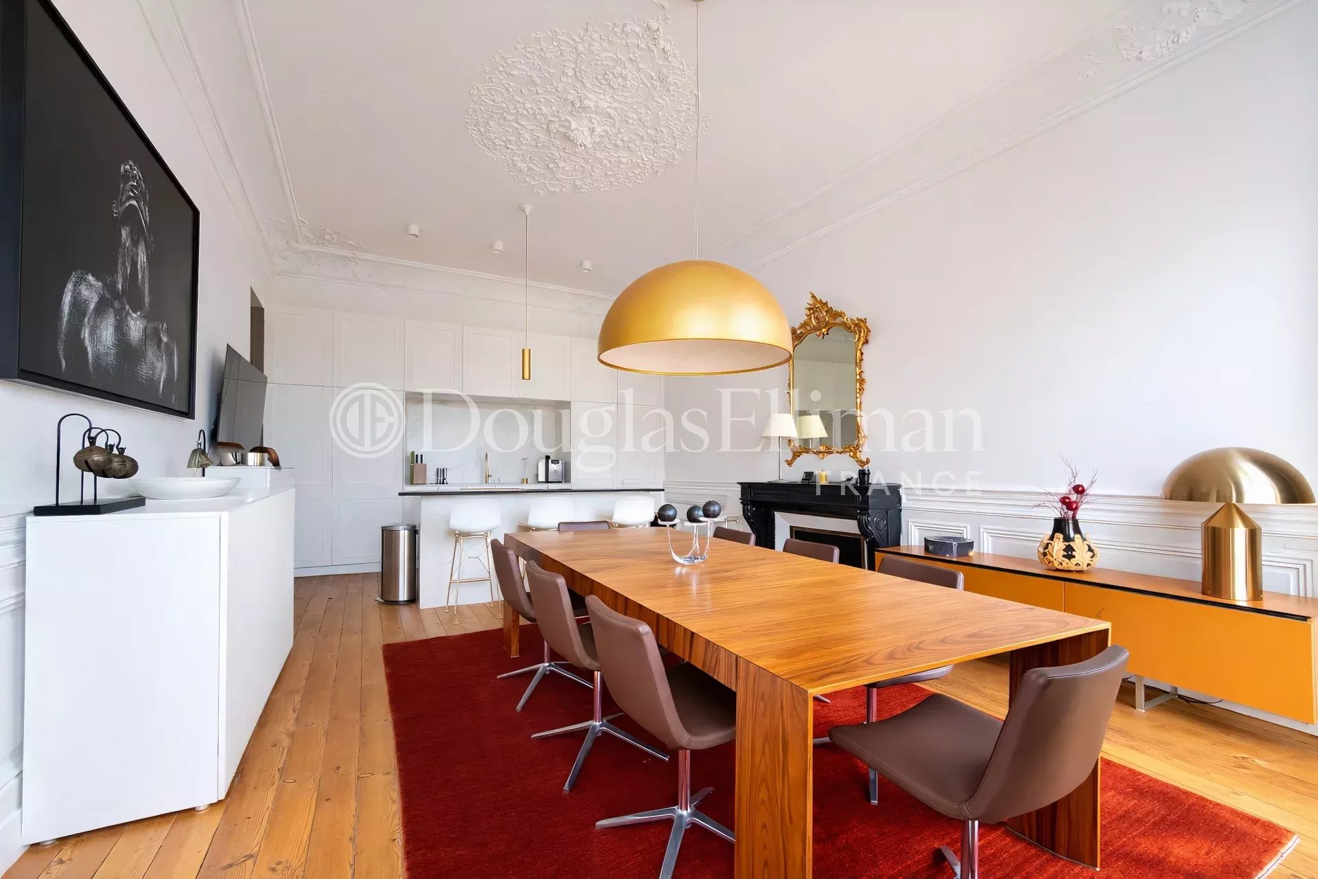The apartment is flanked by a long balcony, with no direct vis-à-vis, in the heart of the city center.