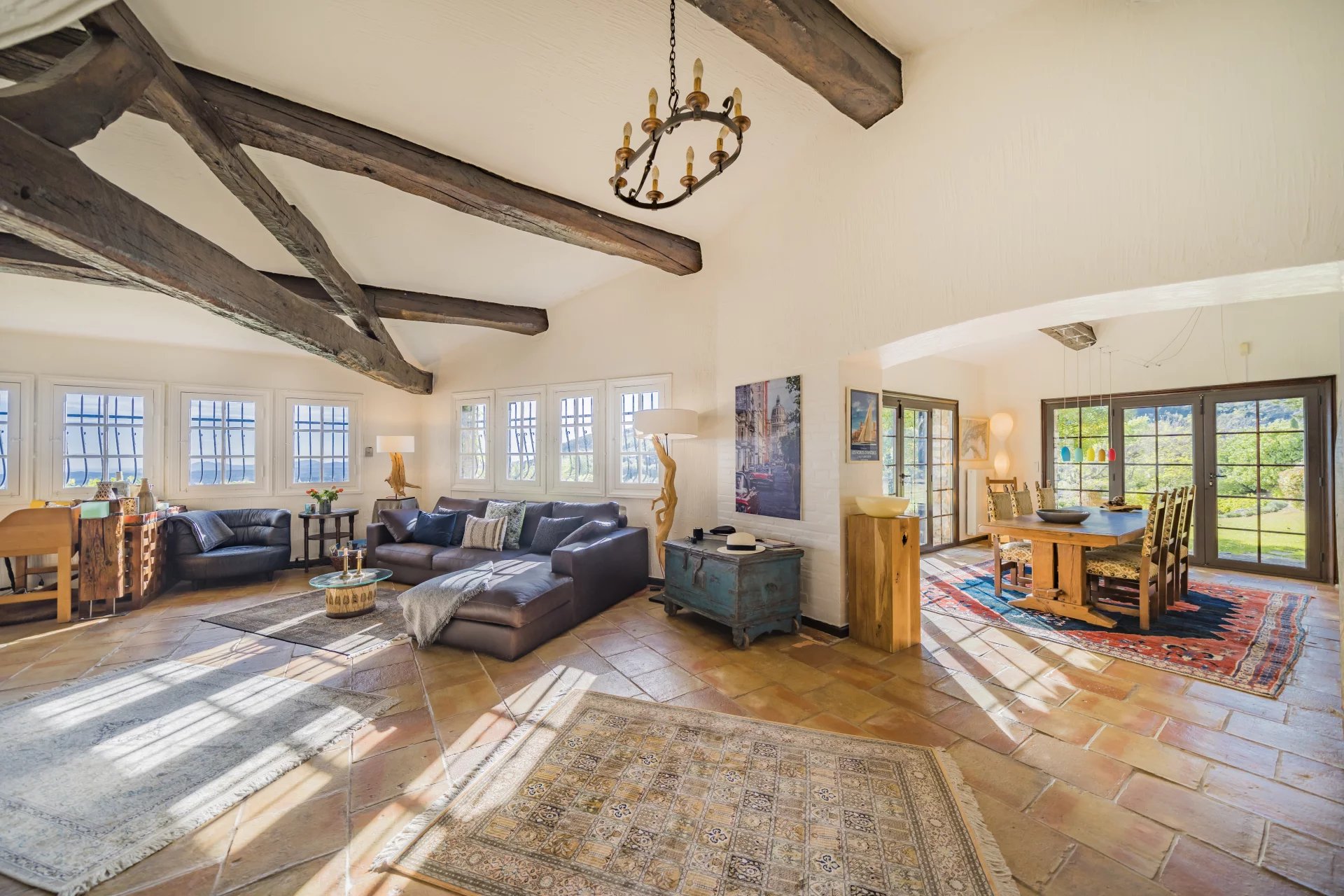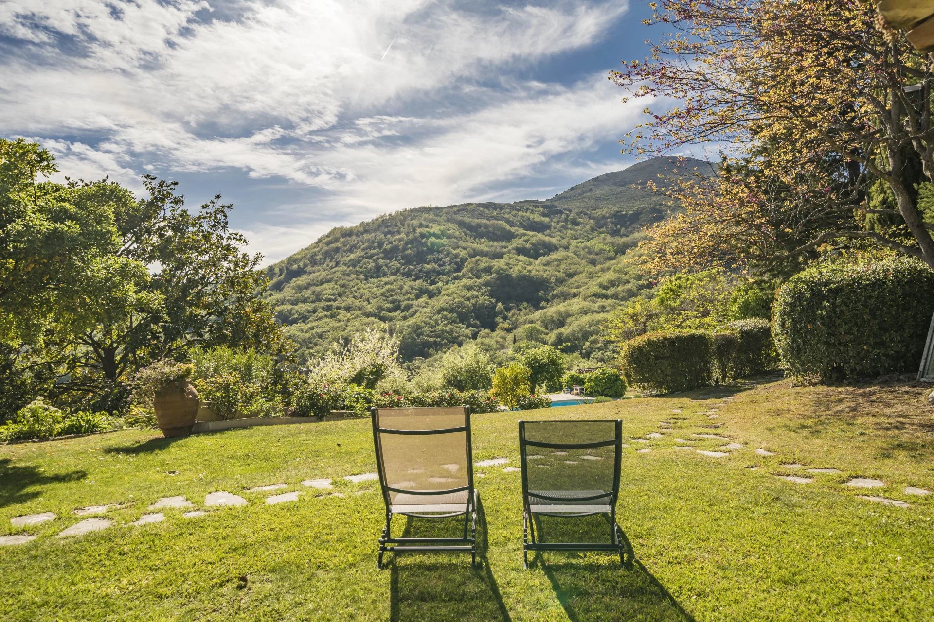 From various terraces, including the private terrace of the principal bedroom, you can admire the lush hills and the glistening sea.