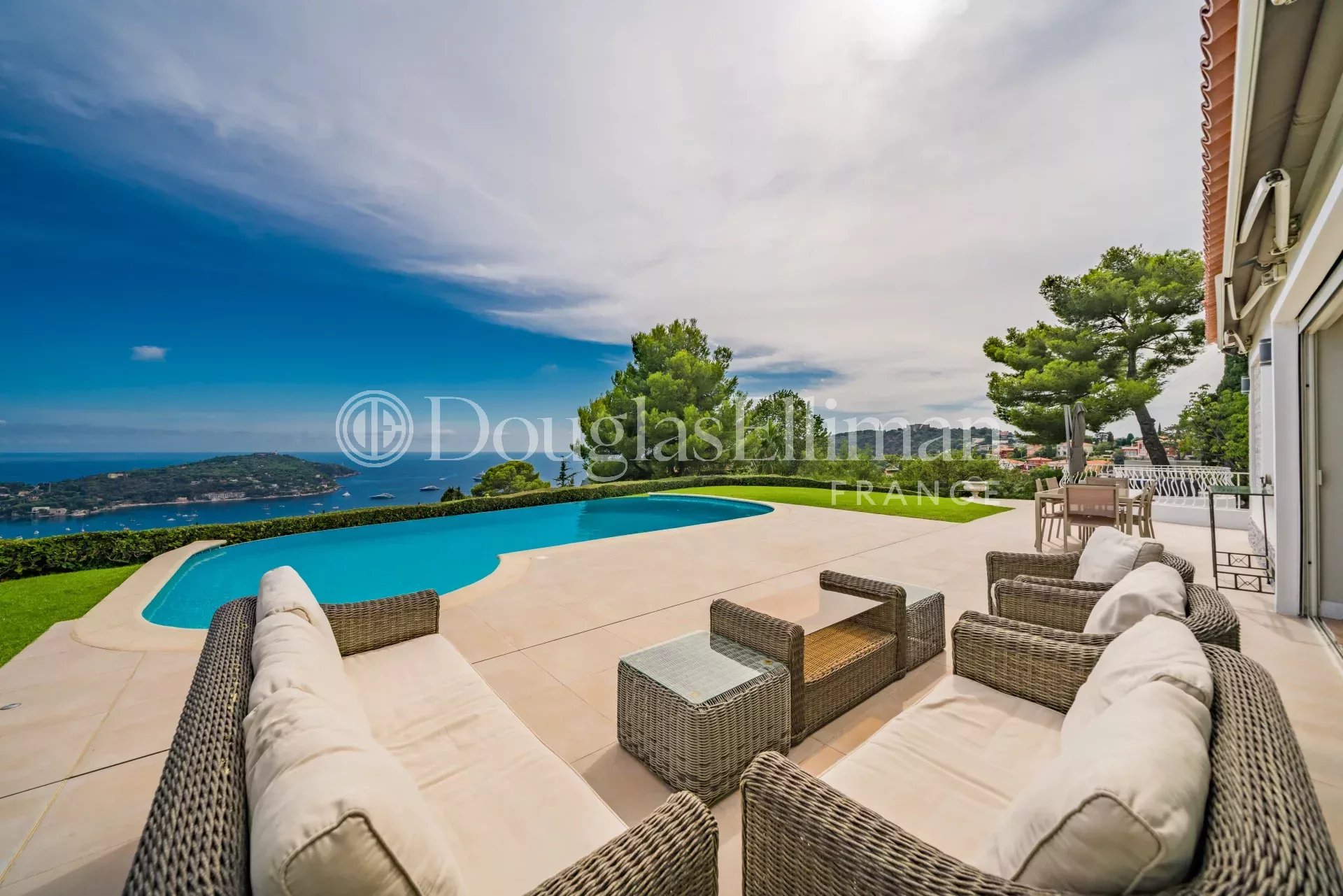 Ideally nestled on a flat plot of 1580 m², this villa offers breathtaking panoramic views of the Bay of Villefranche-sur-Mer and Cap Ferrat.