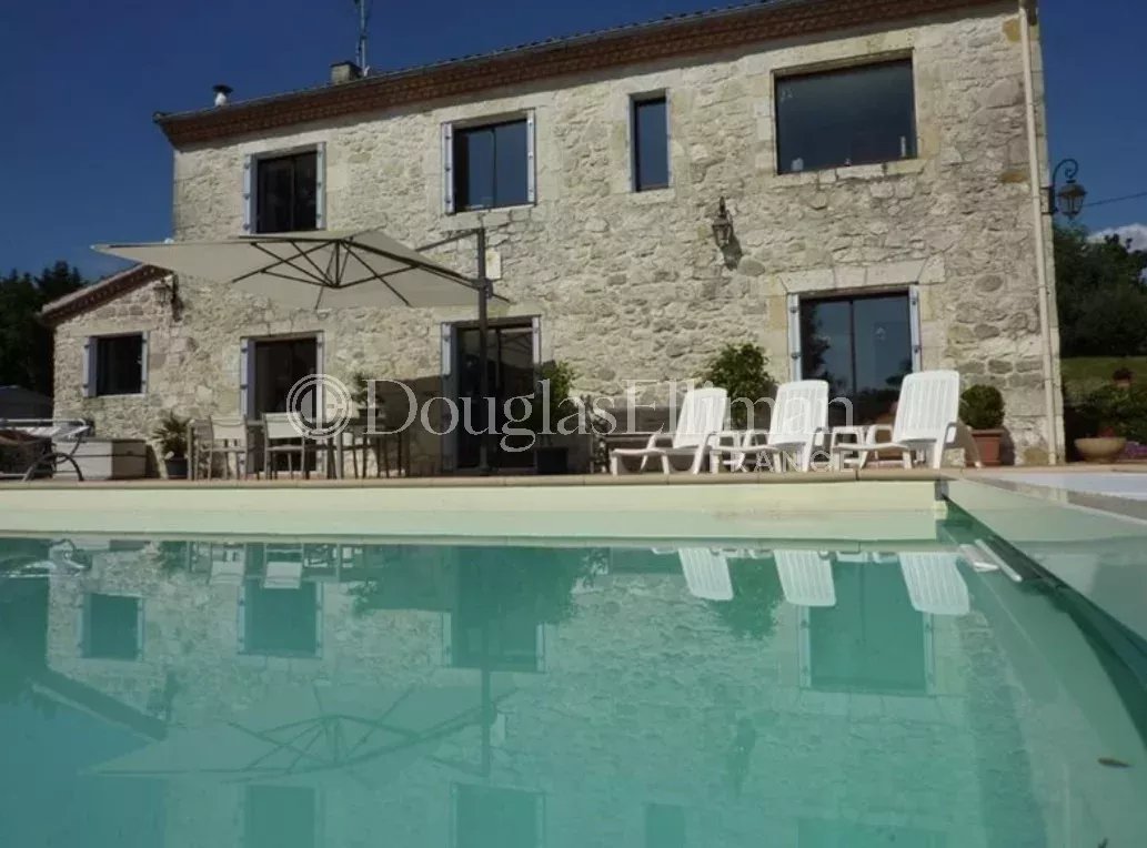Cette maison en pierre du XIXe siècle se dresse au cœur d'un terrain arboré de près d'un hectare, offrant calme absolu et vue dégagée sur la forêt environnante. Située à proximité d'Agen et à seulement 1h20 de Bordeaux, cette demeure de caractère allie harmonieusement patrimoine historique et confort contemporain.