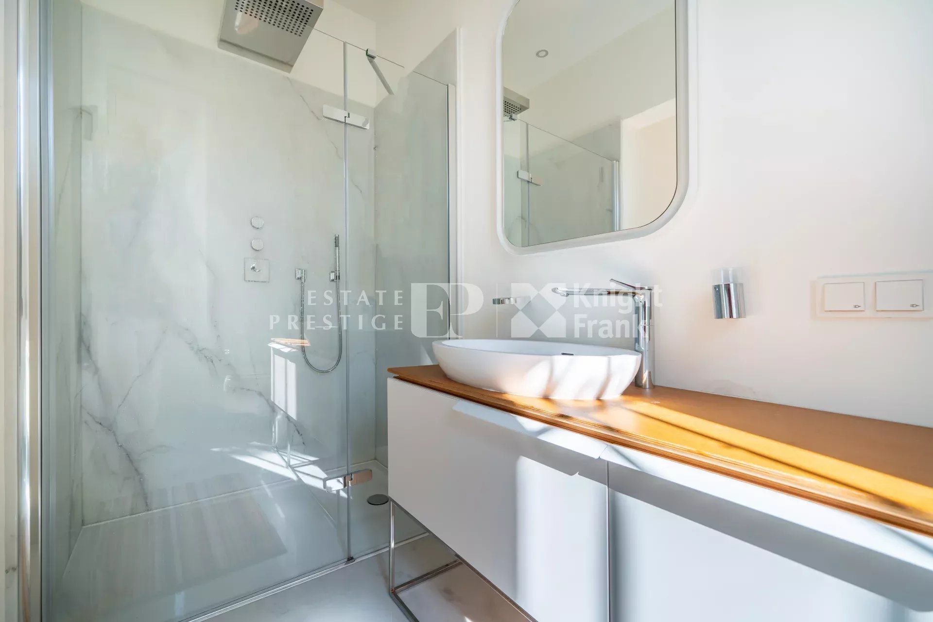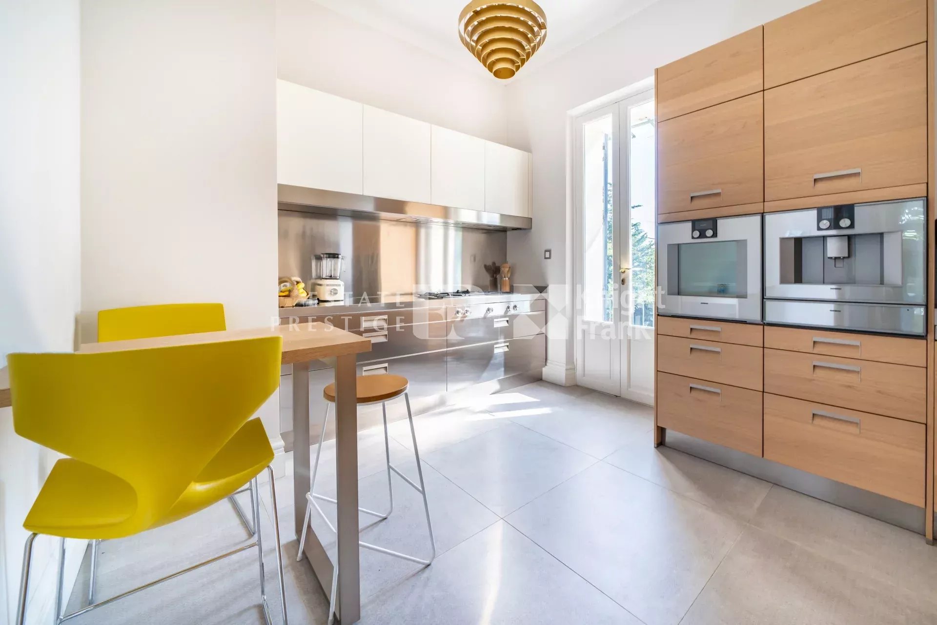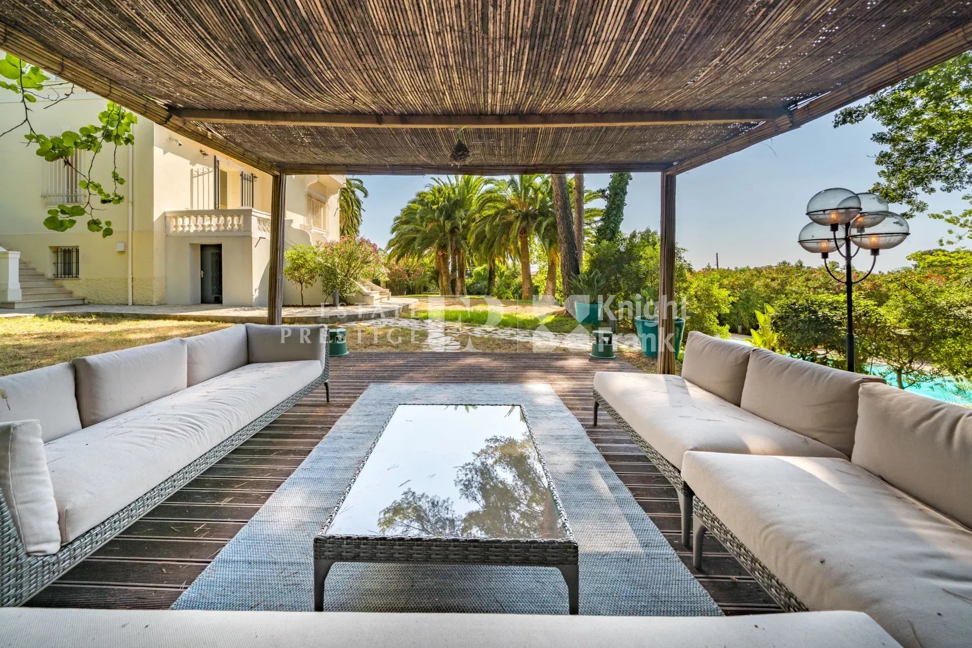Idéalement située dans un quartier calme d'Antibes, proche du centre ville, des plages de sable et de l'école internationale de Mougins, avec un accès facile à l'autoroute, cette charmante propriété Belle Epoque a été entièrement rénovée avec des équipements haut de gamme. Elle se compose de trois entrées principales, d'un lumineux salon orienté sud avec cheminée, hauts plafonds et parquets, d'une salle à manger, d'une cuisine et d'un bureau.